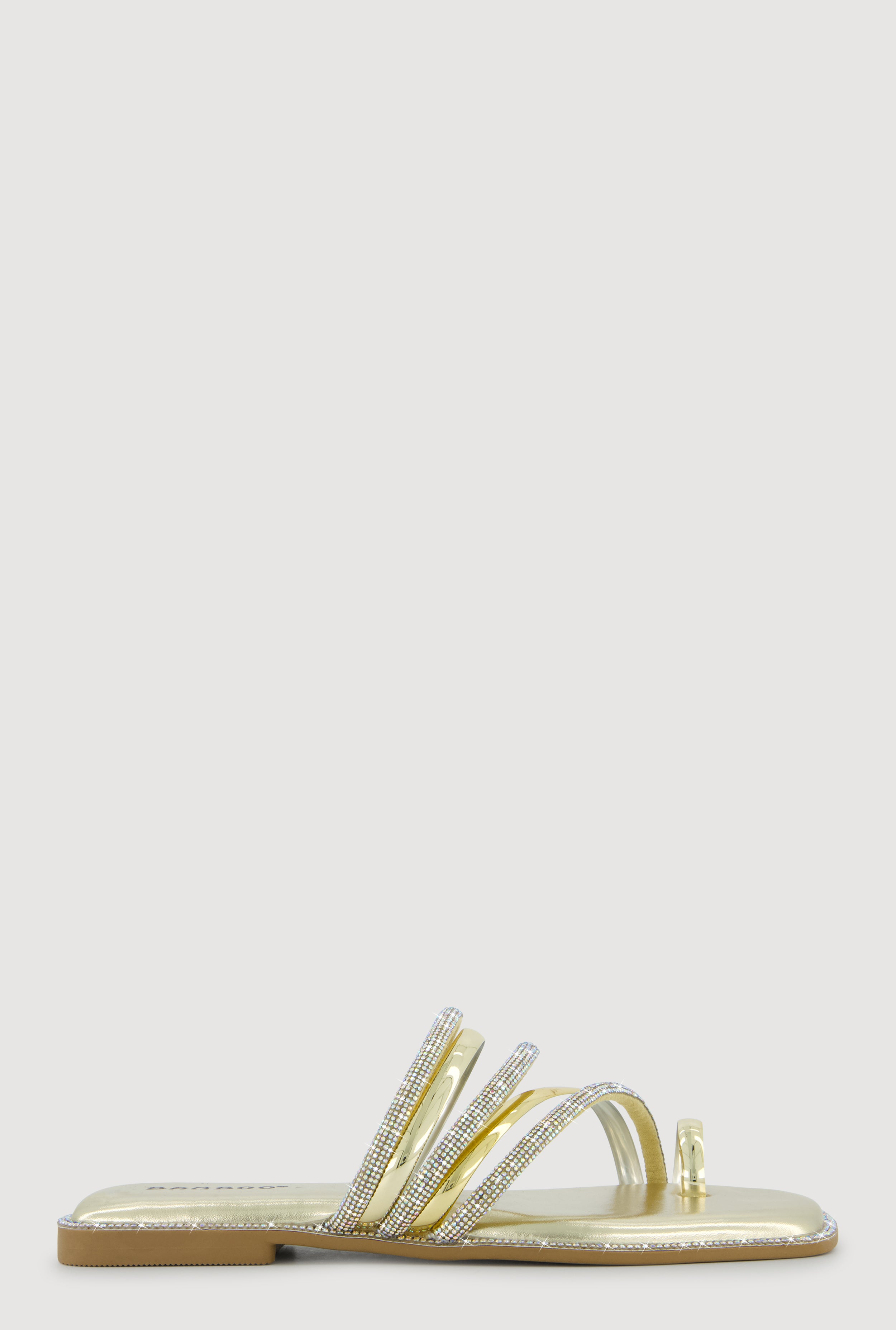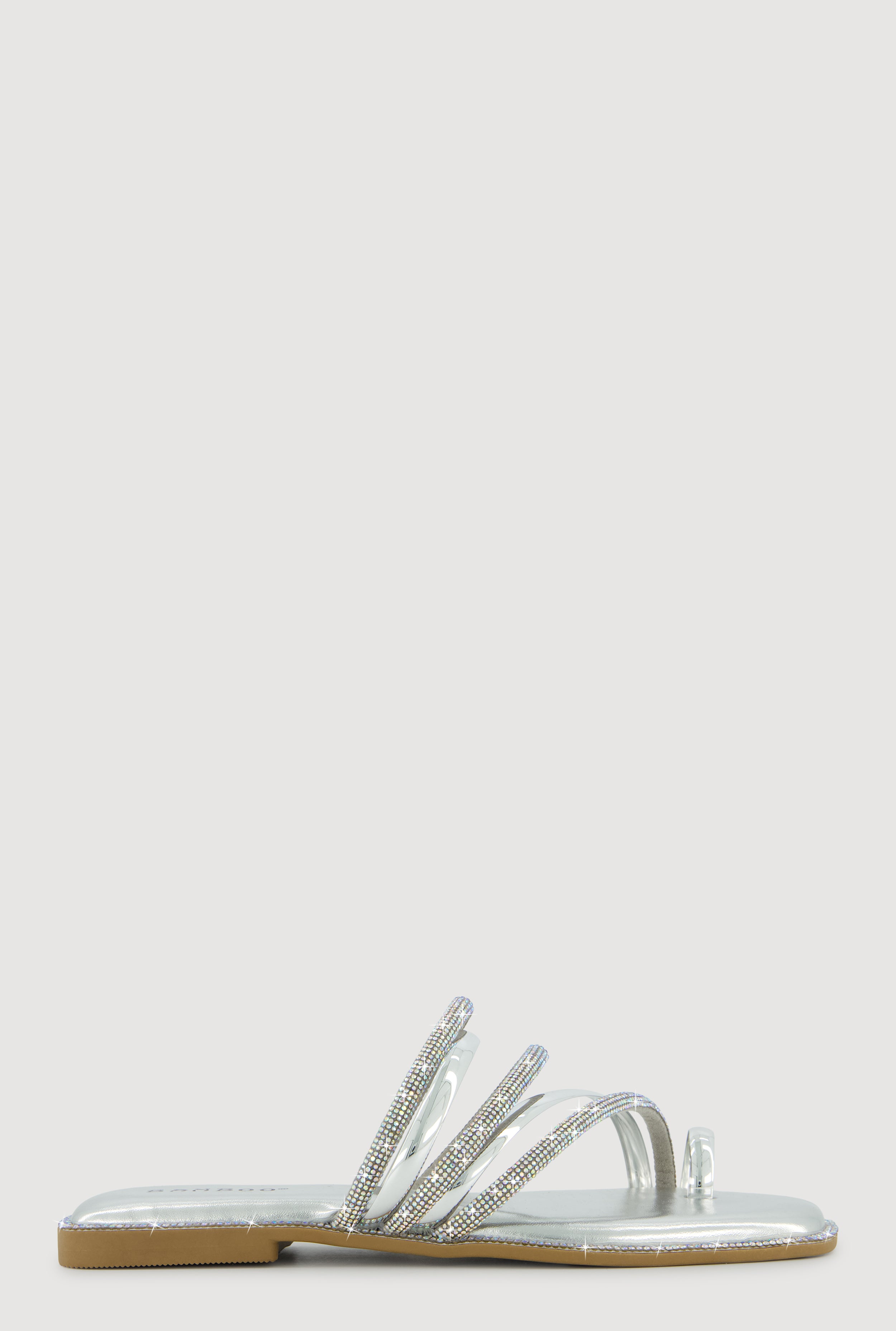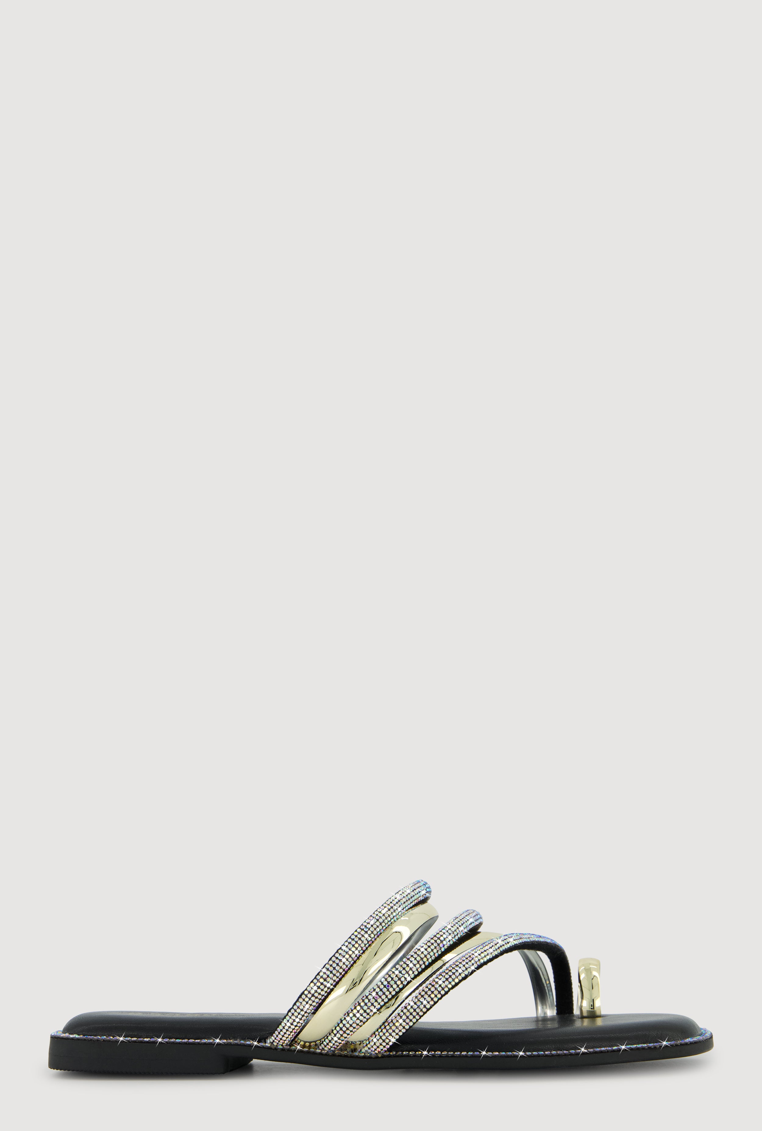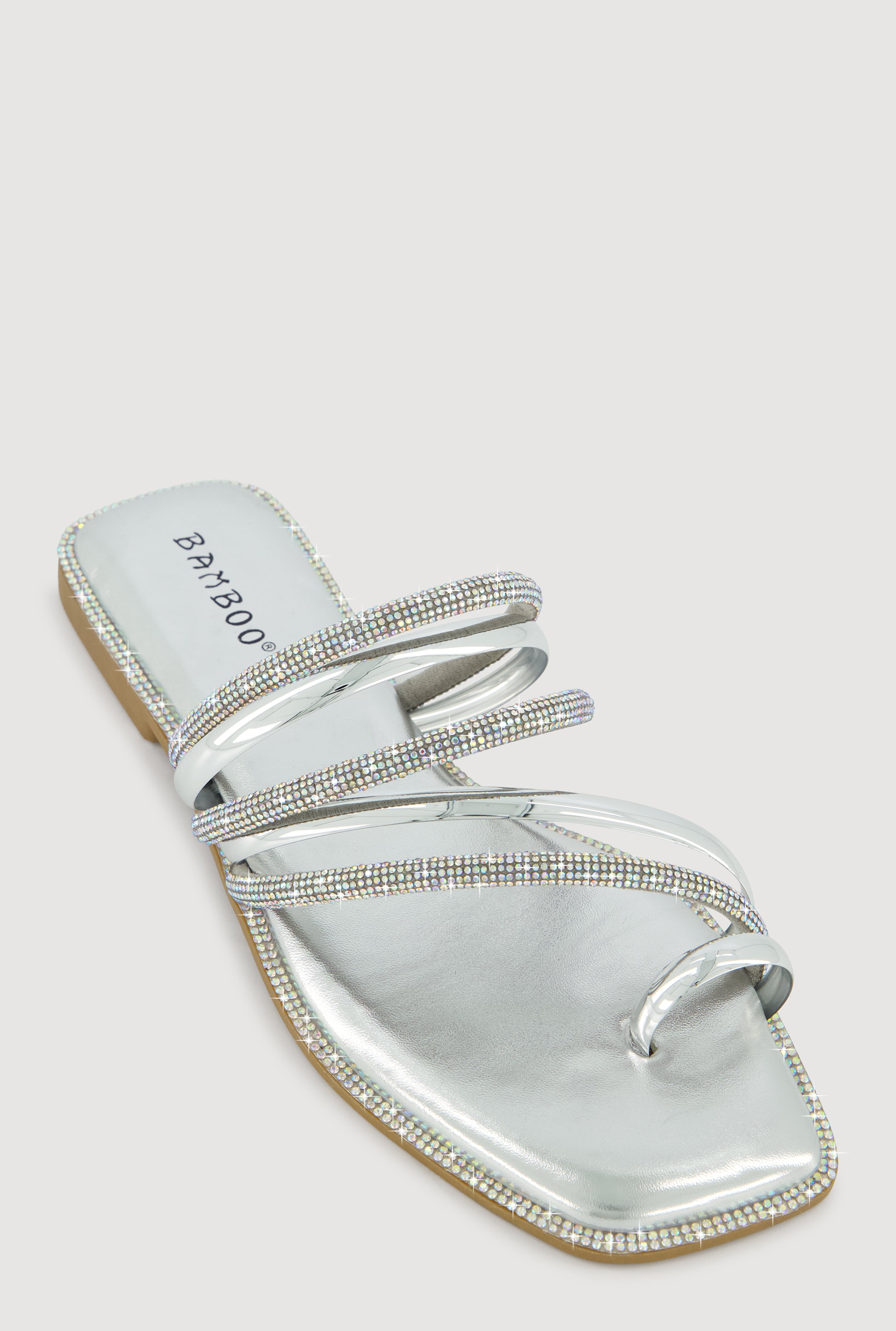 Asymmetrical Metallic Rhinestone Strappy Toe Loop Sandals