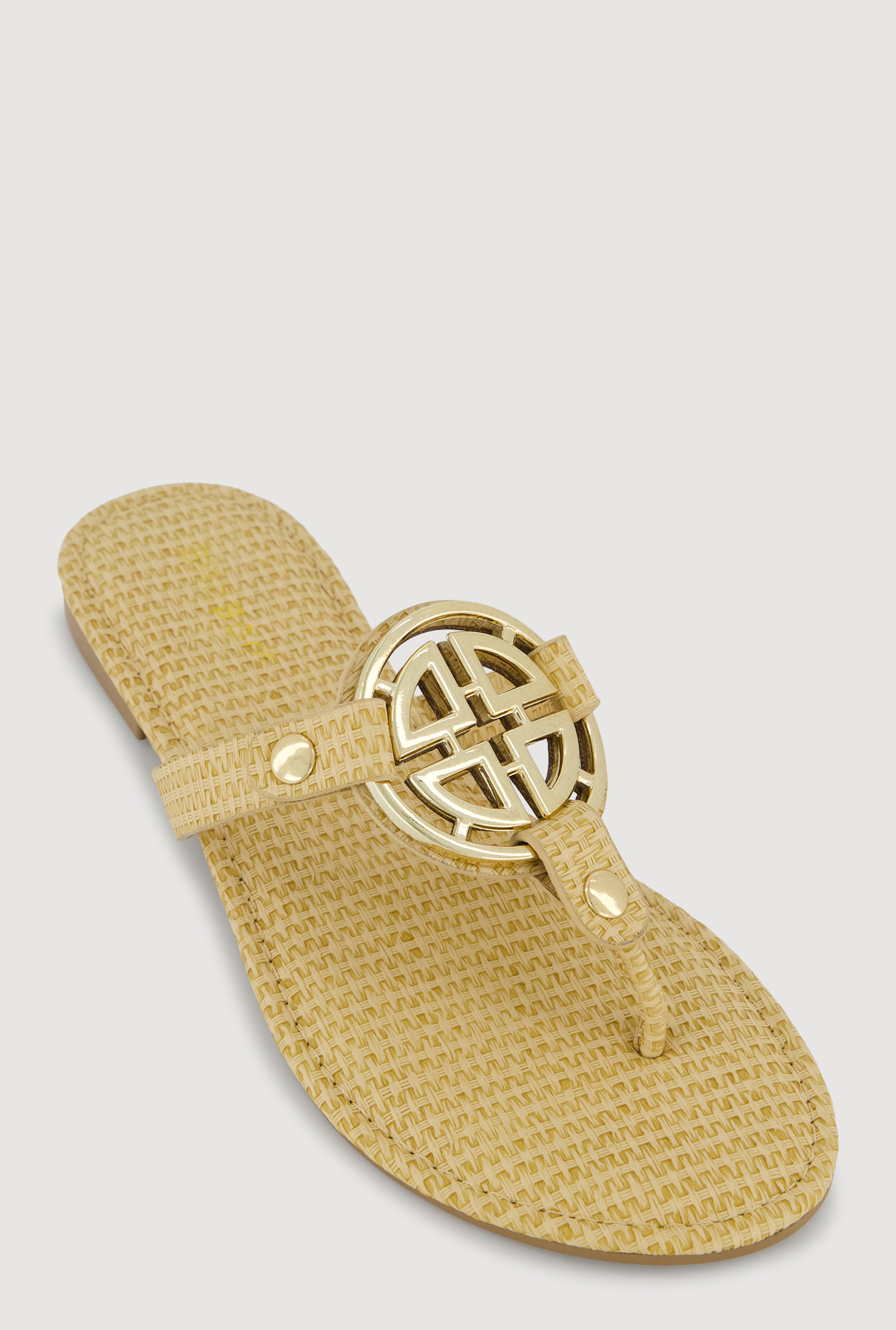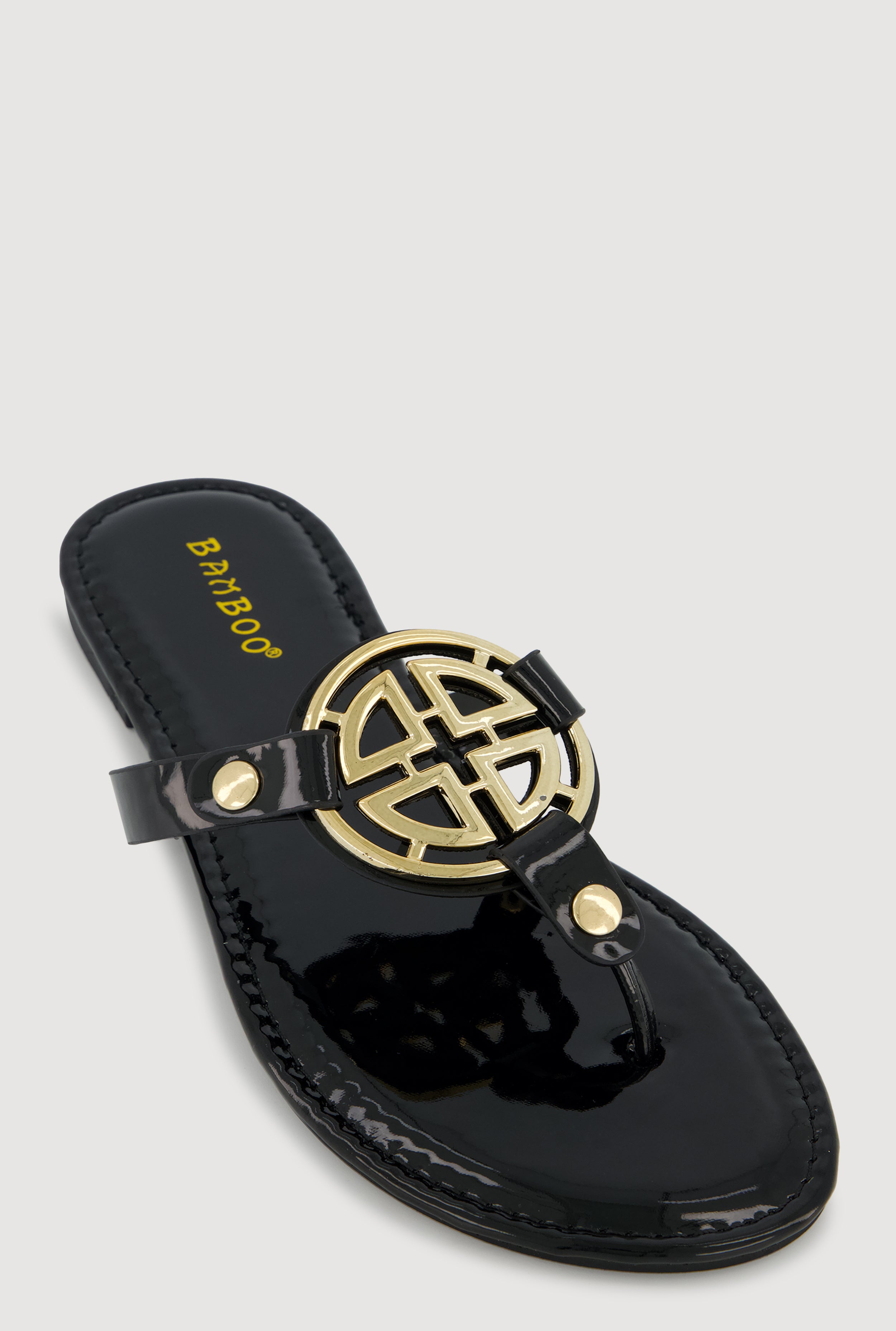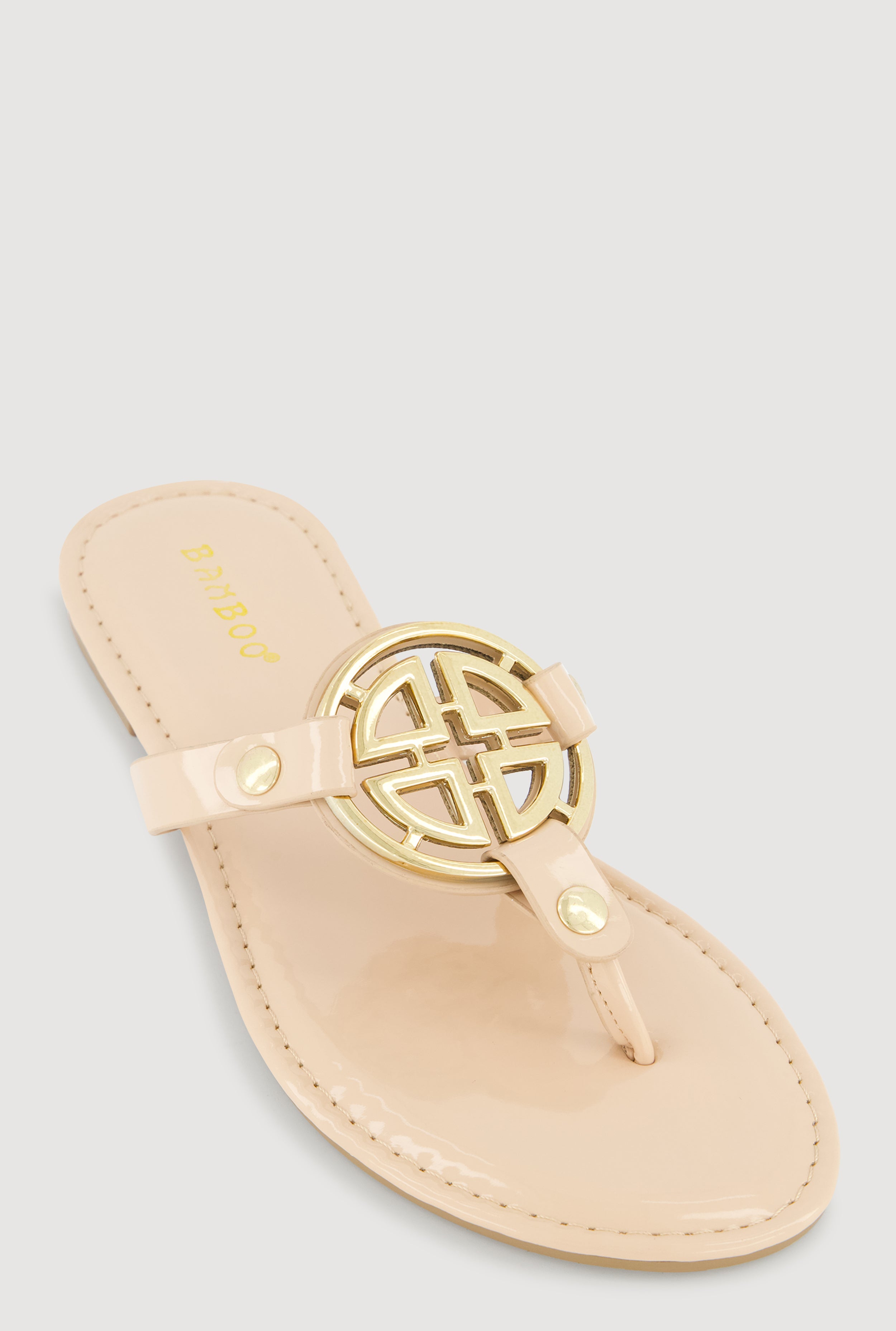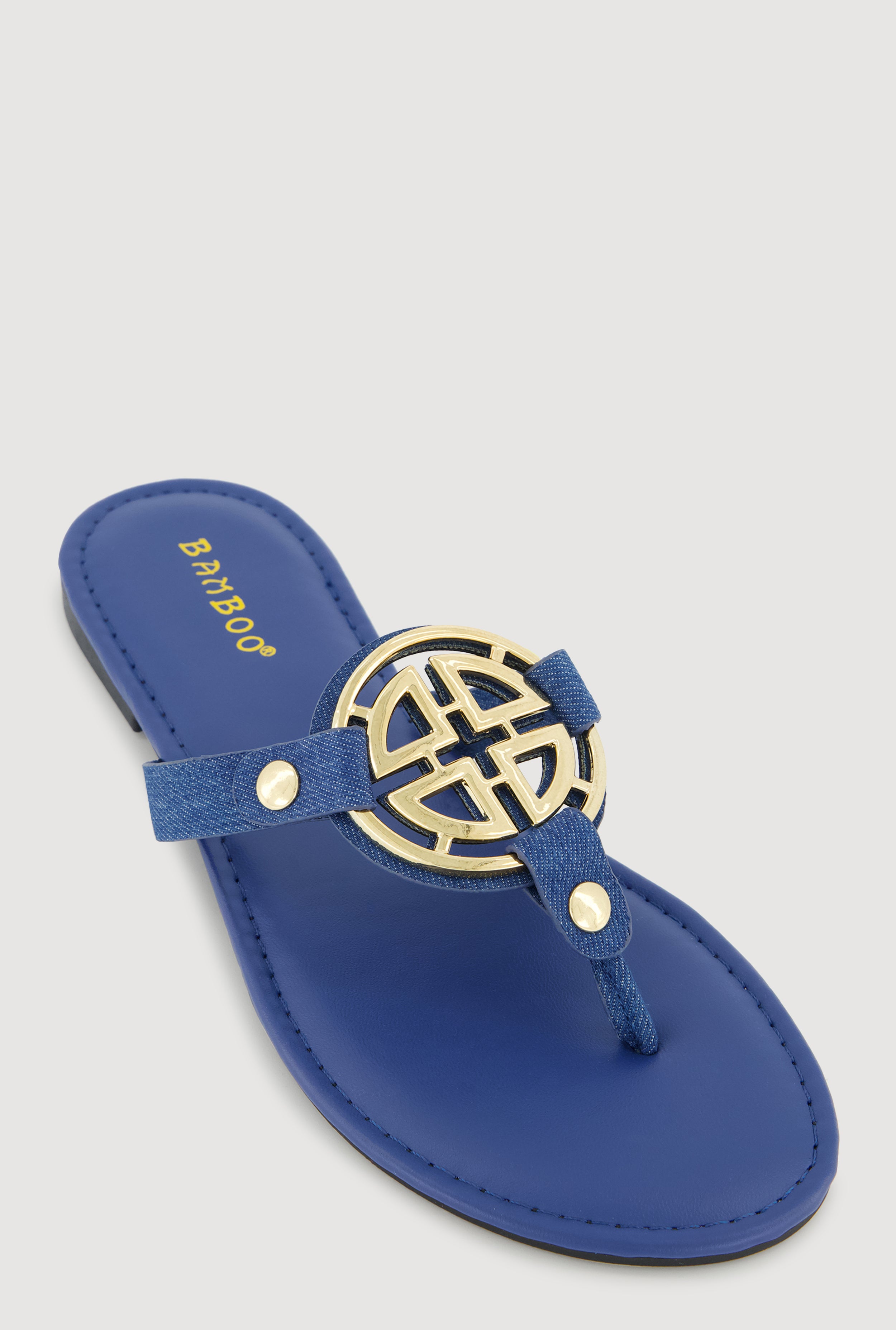 Metallic Geometric Pendant Studded Thong Sandals