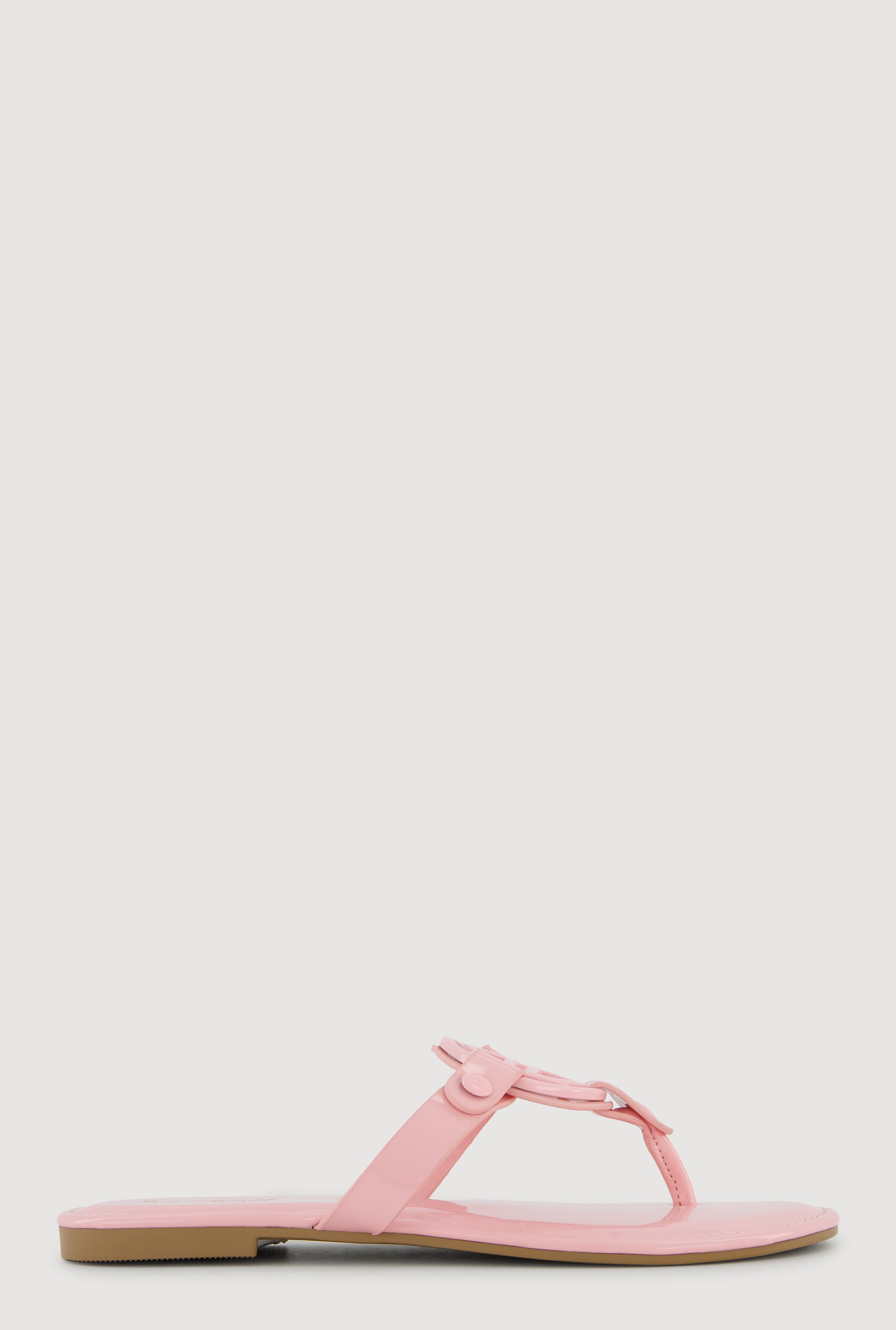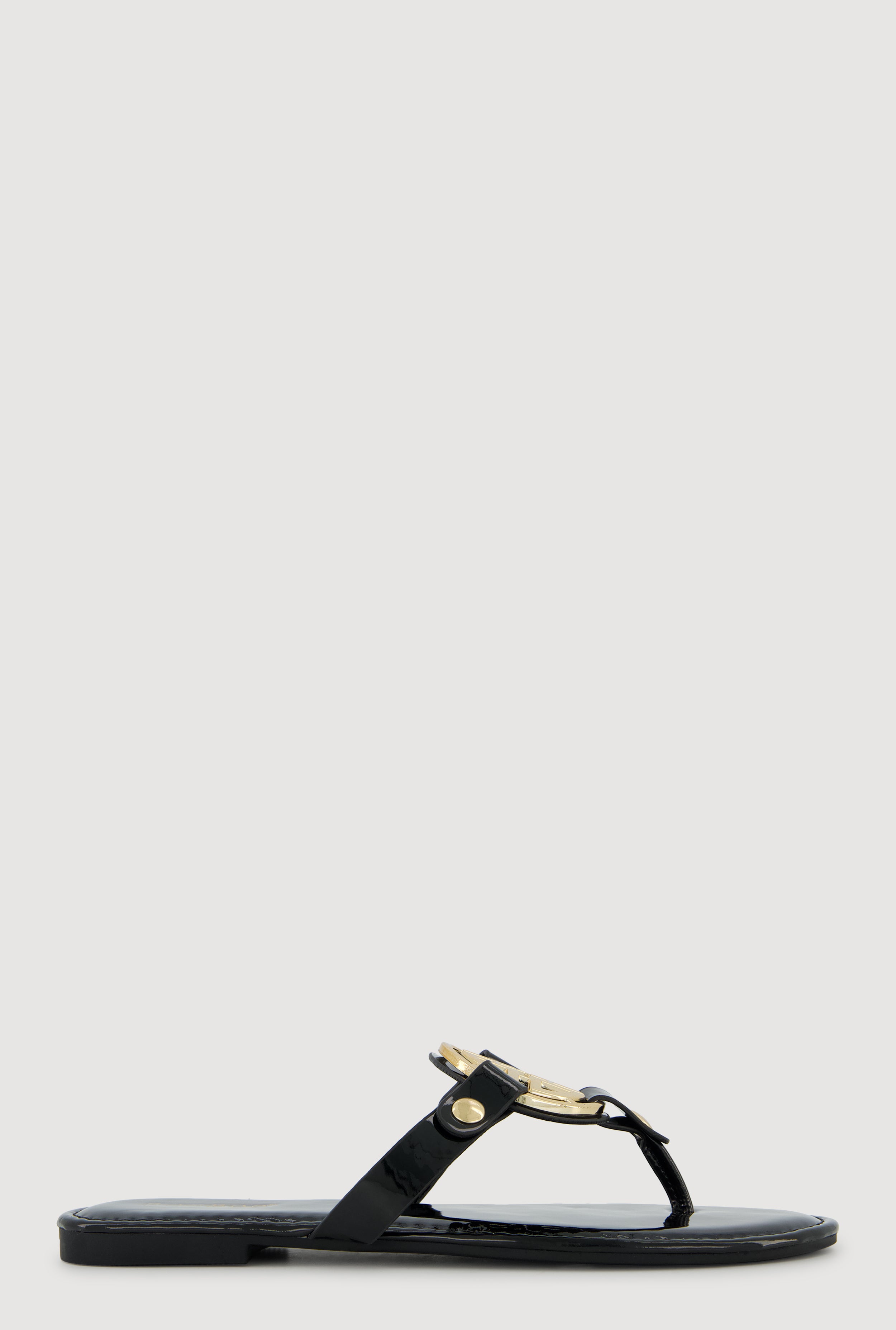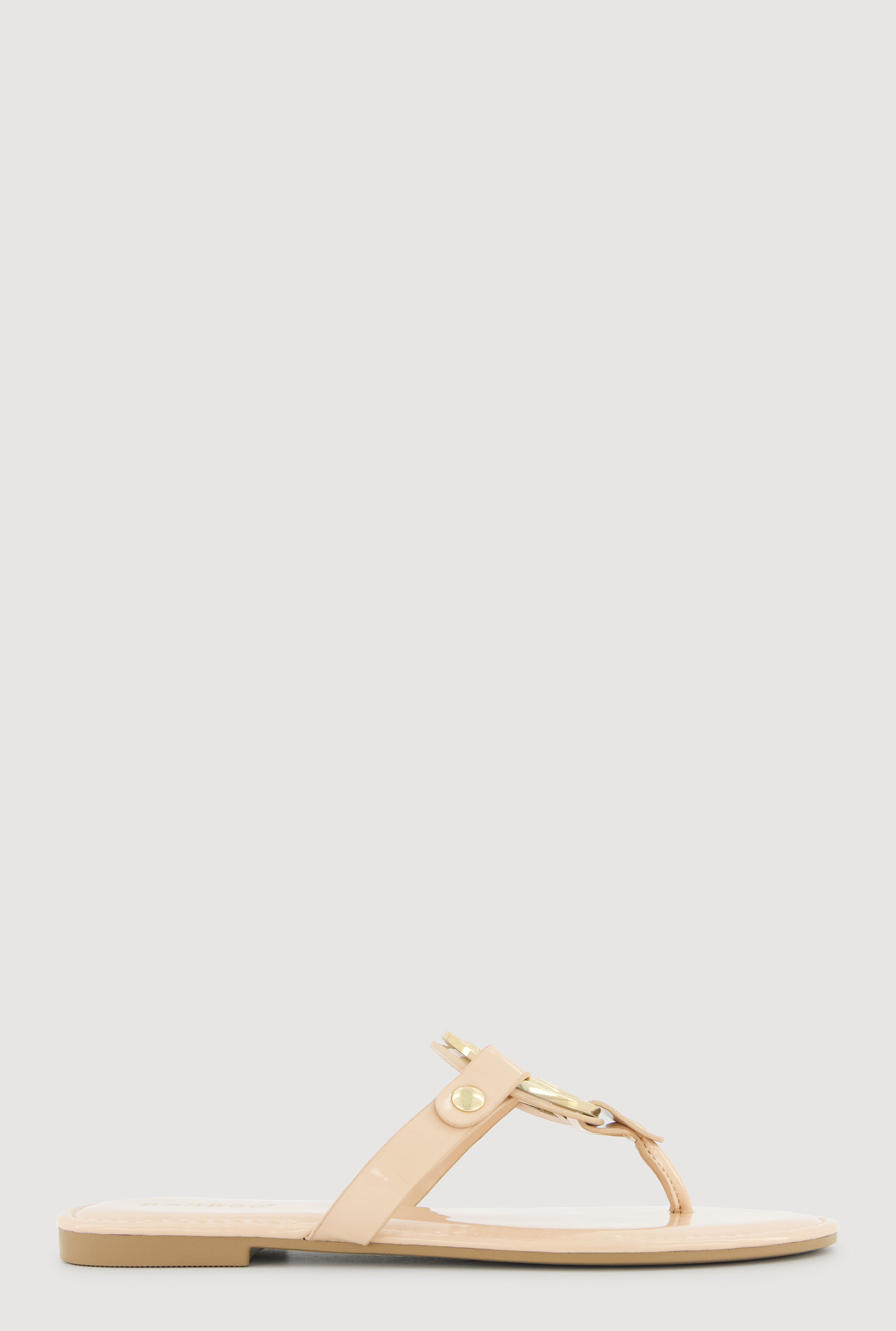 Metallic Geometric Pendant Studded Thong Sandals