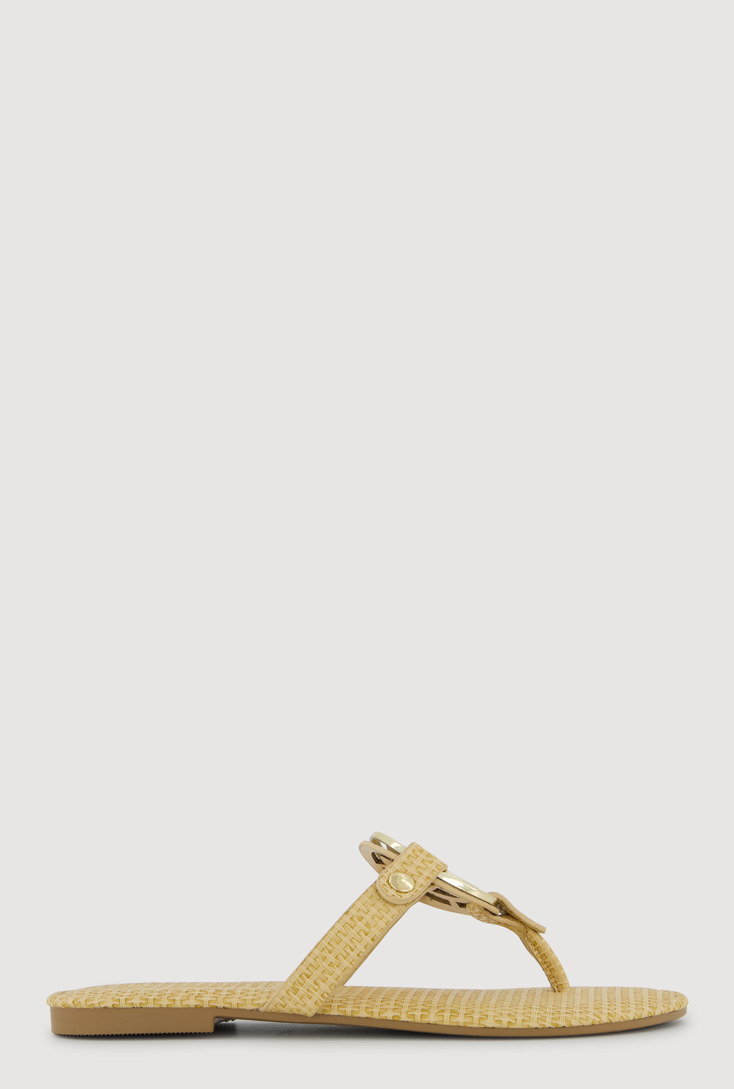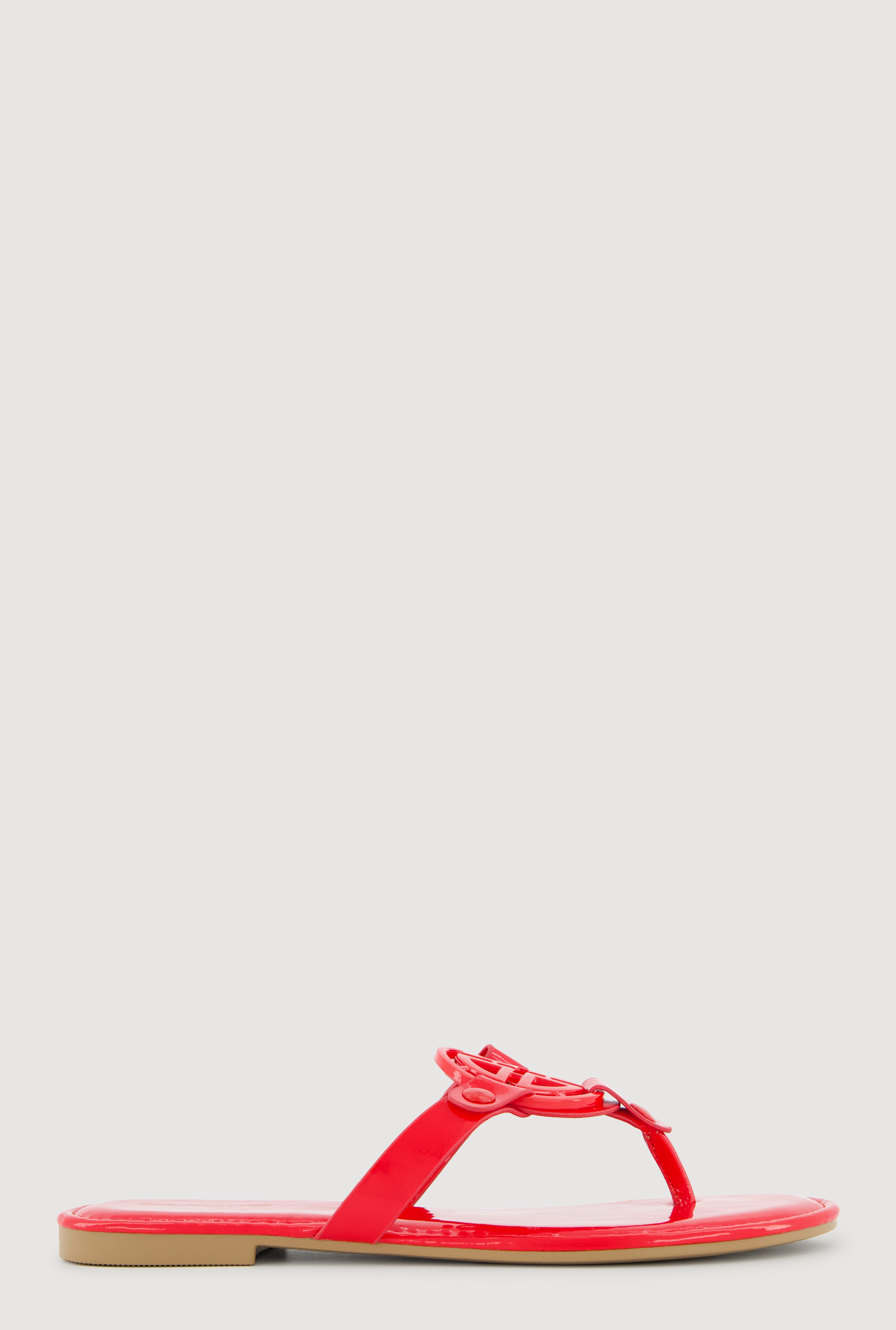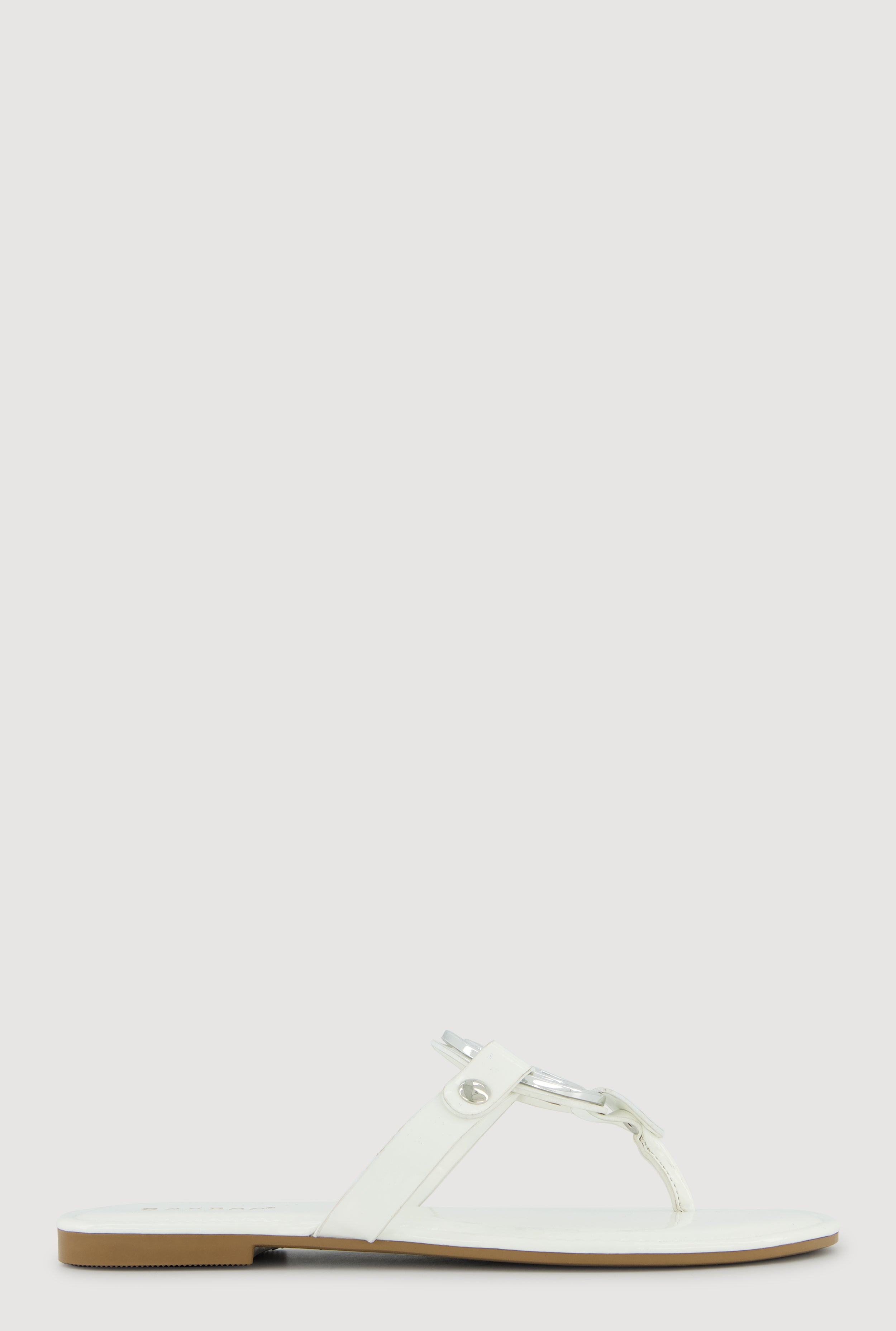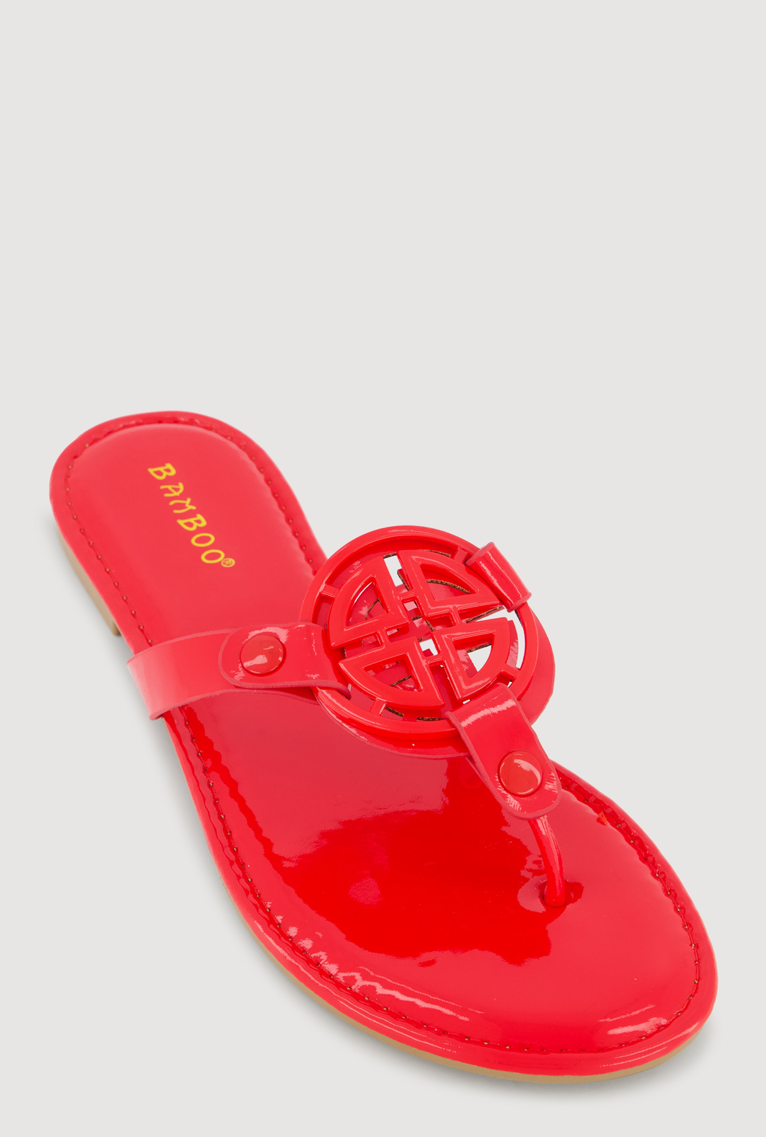 Metallic Geometric Pendant Studded Thong Sandals