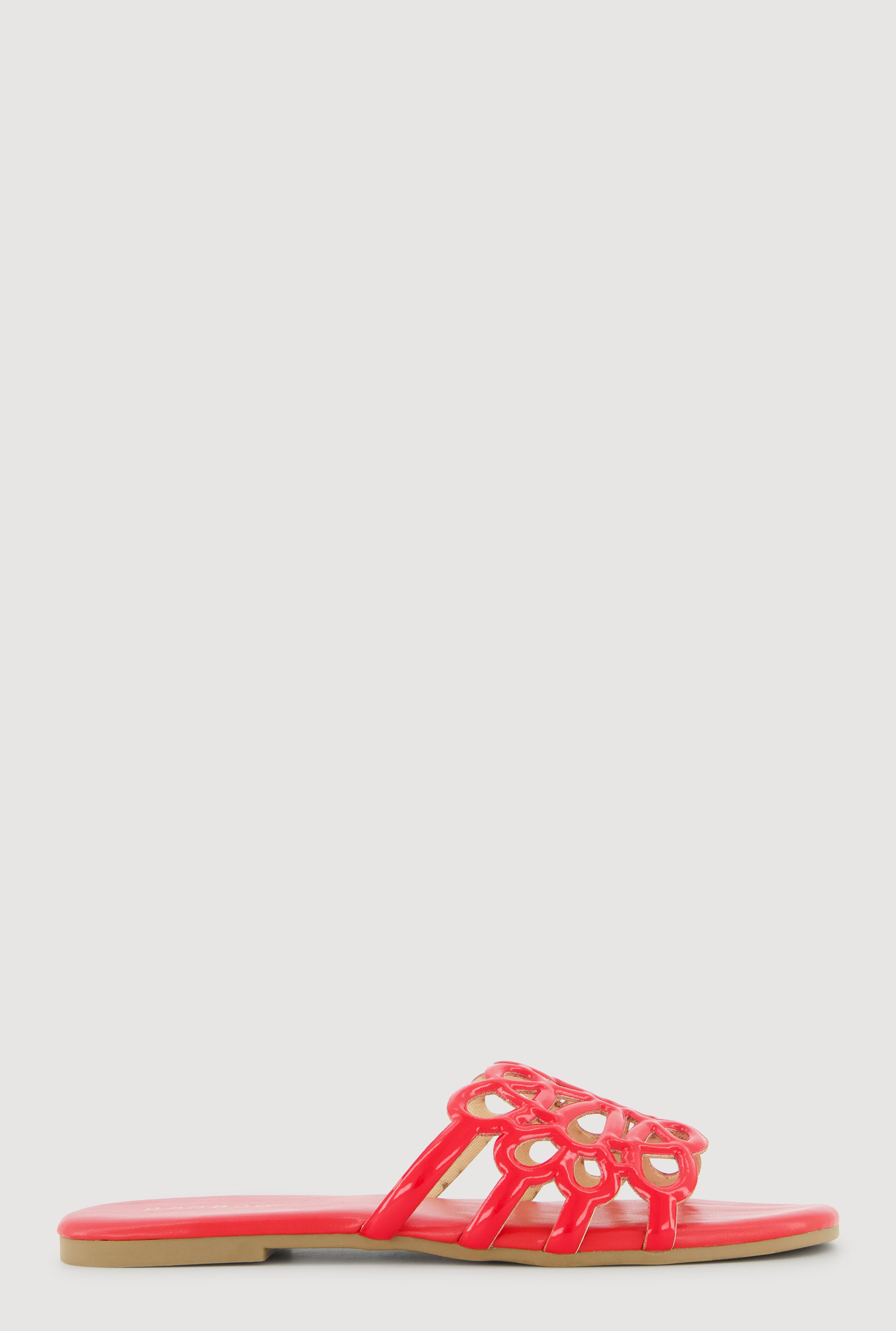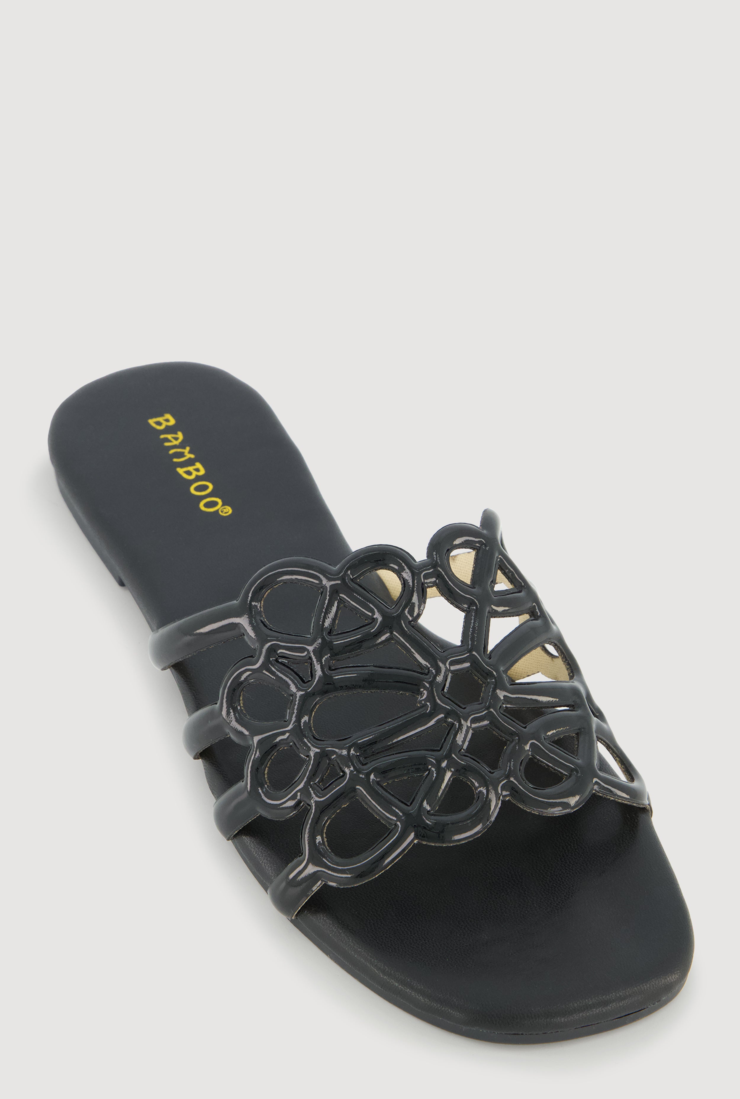 Faux Leather Geometric Band Detail Slide Sandals