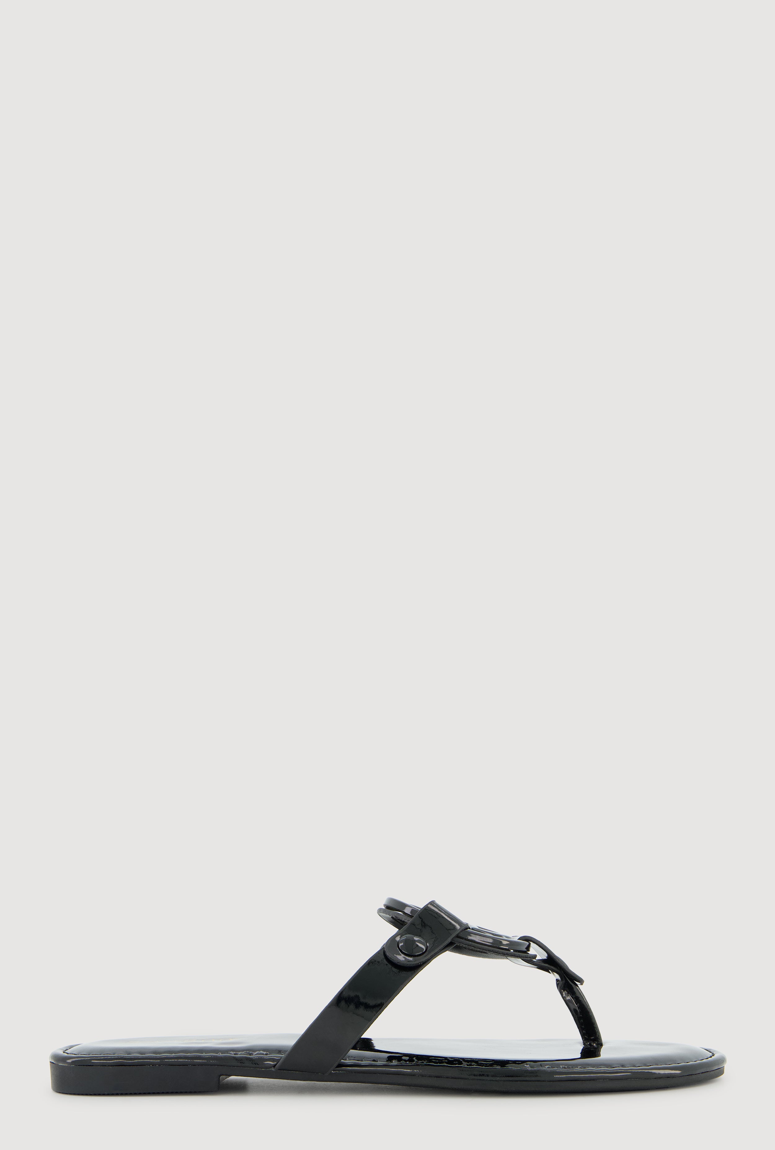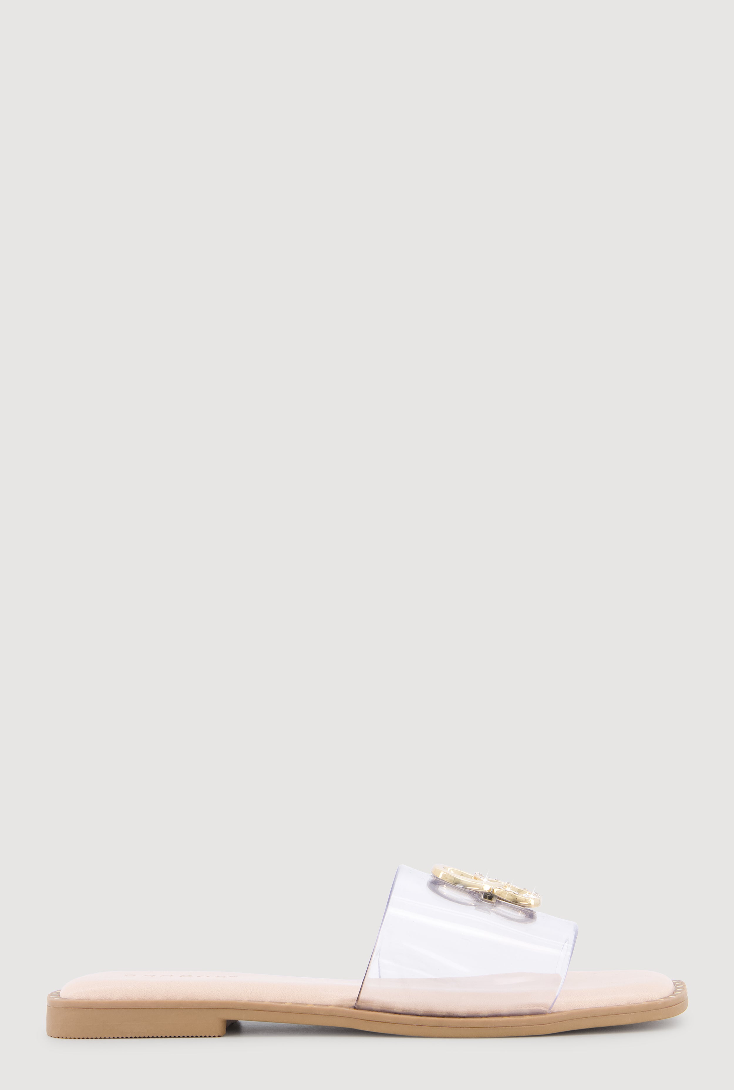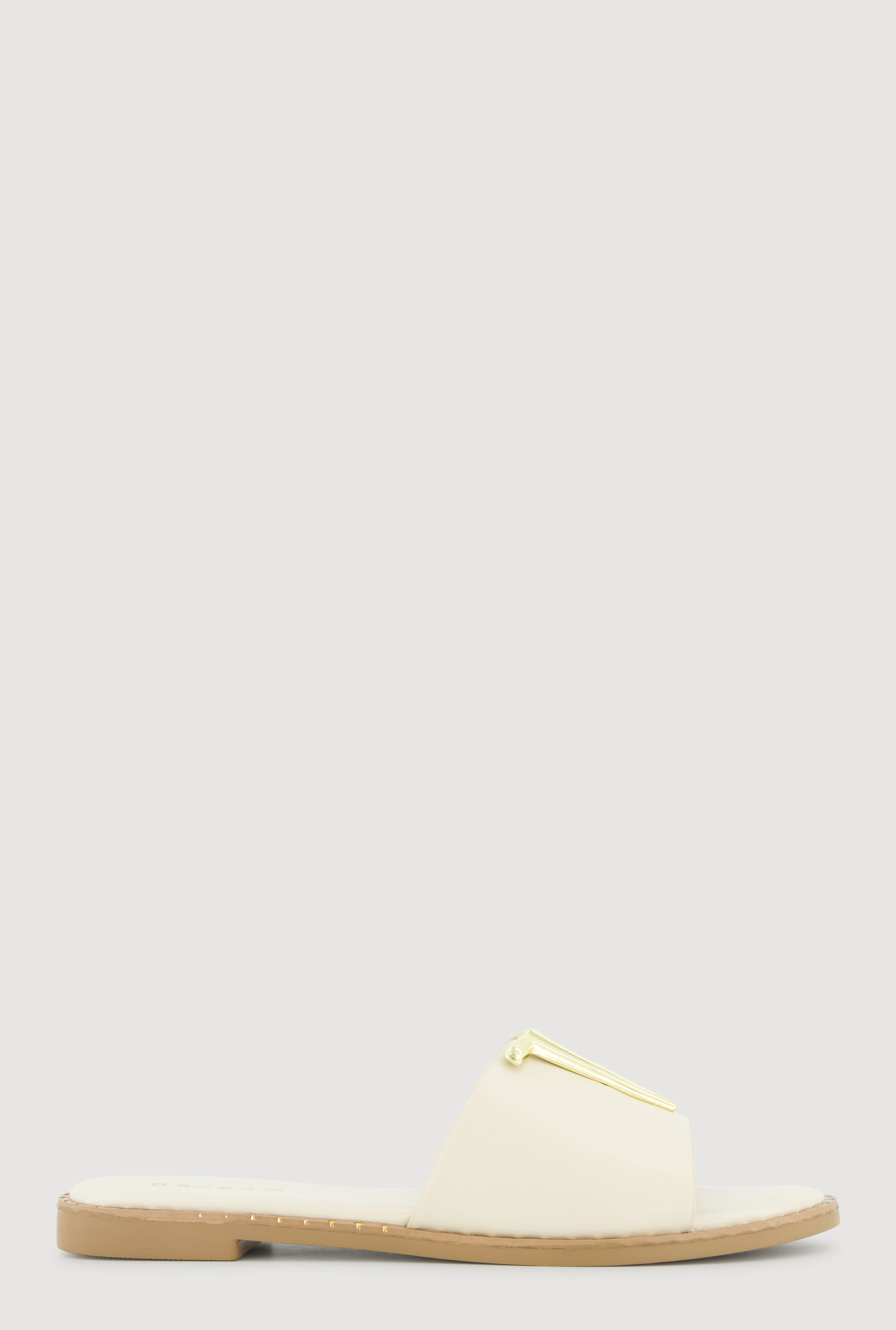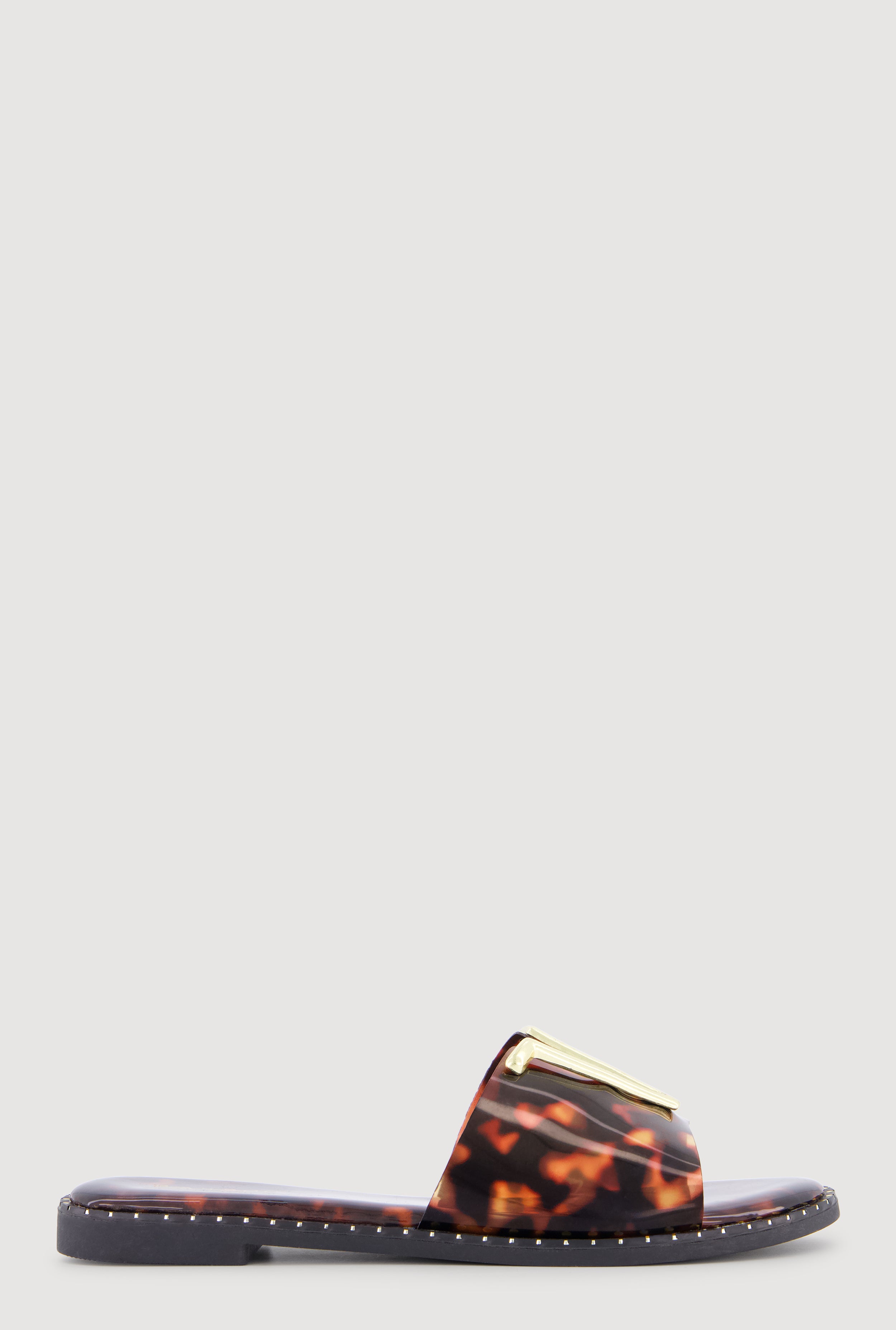 Metallic V Pendant Notched Band Slide Sandals