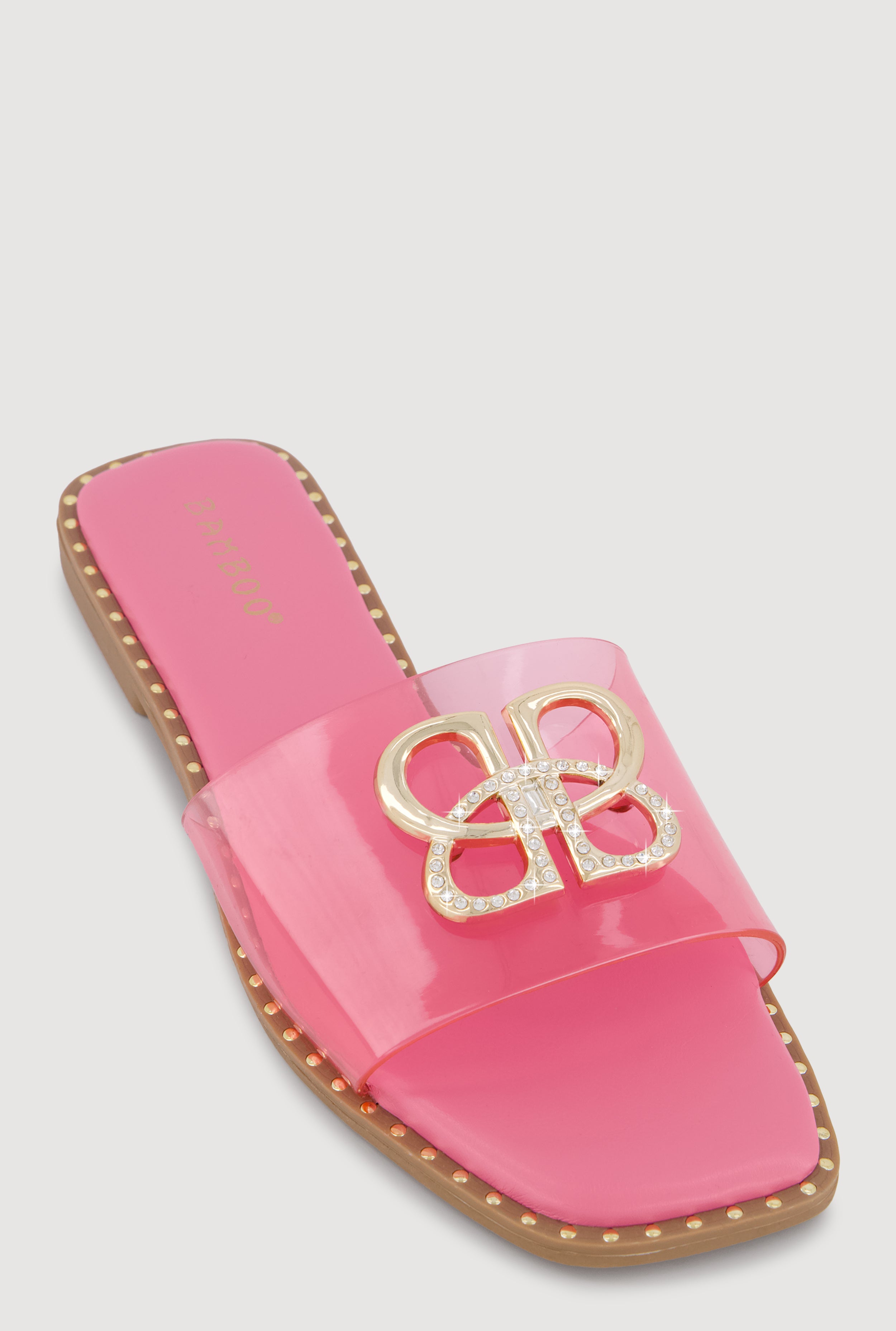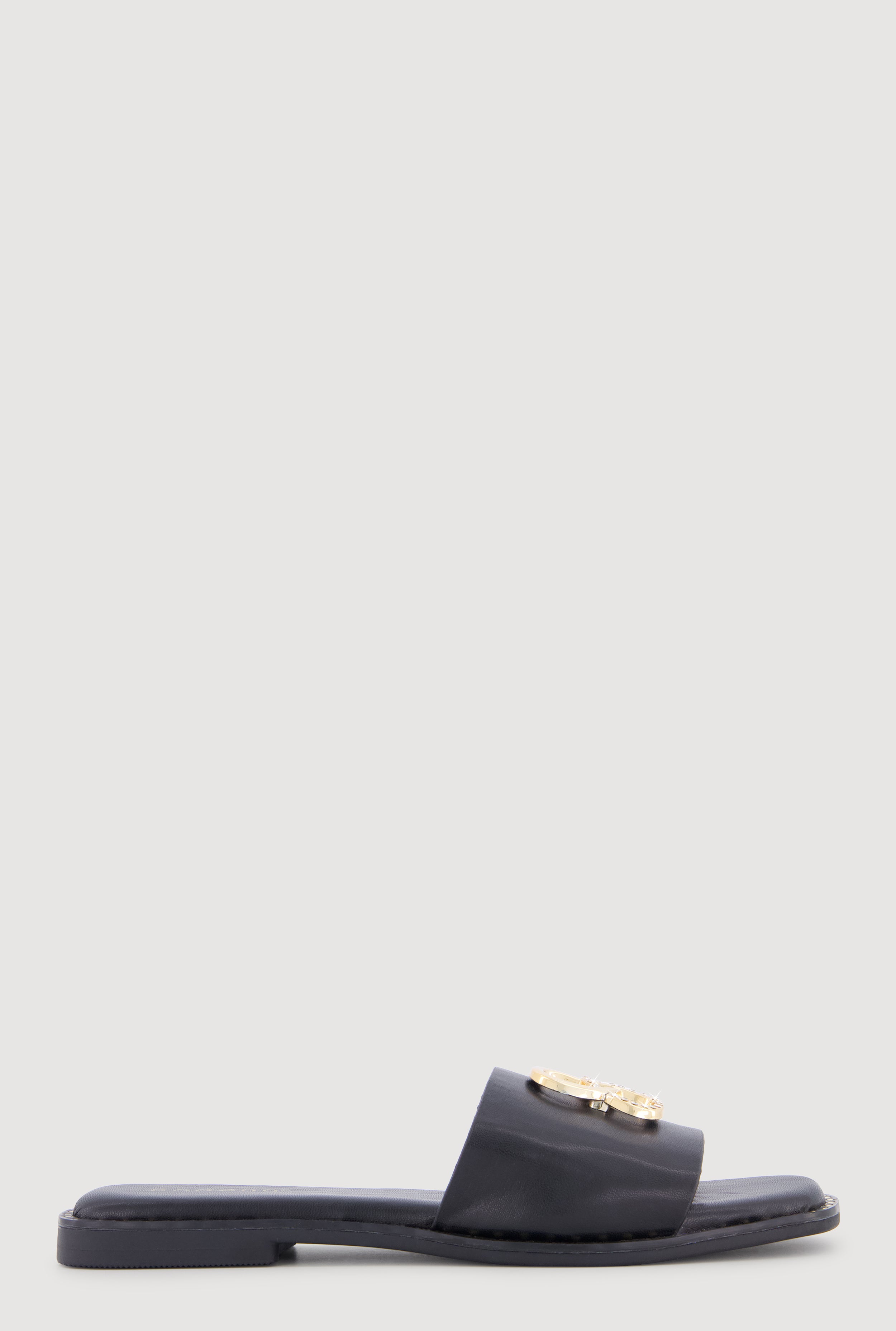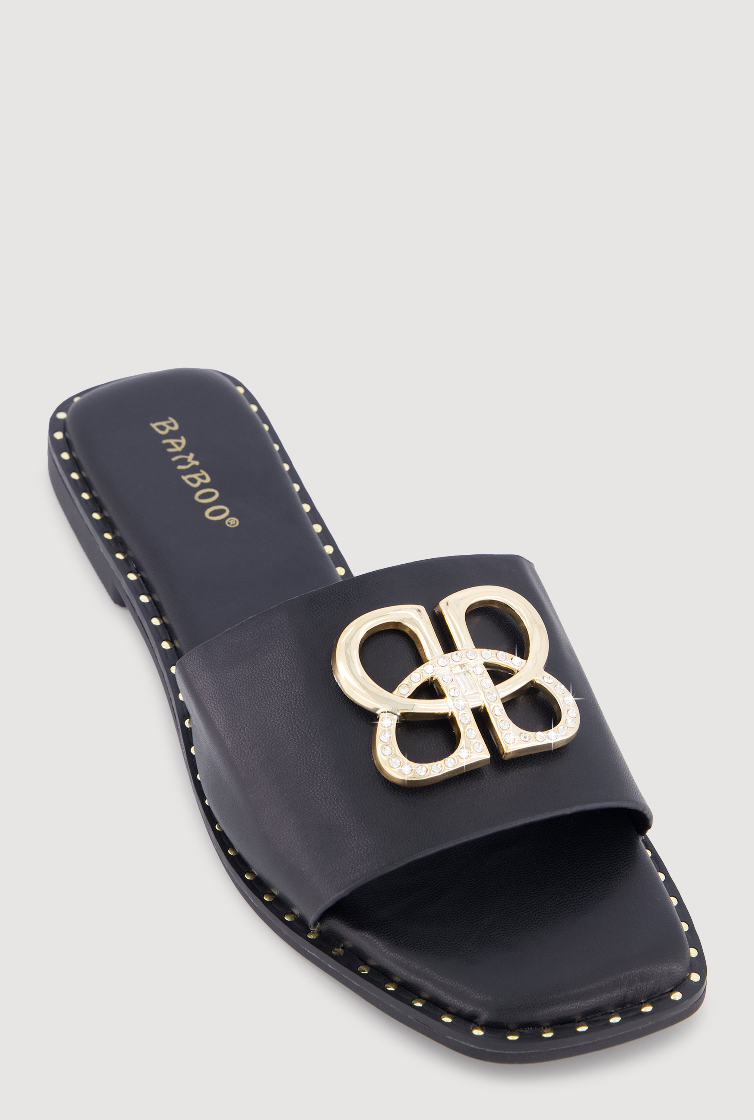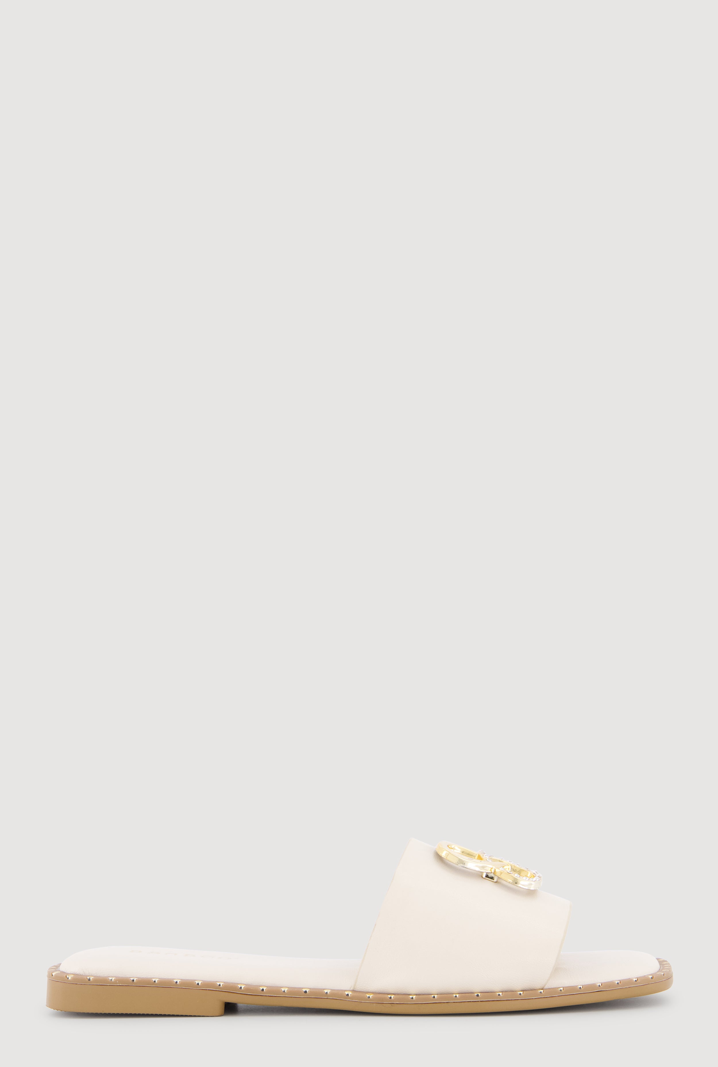 Metallic Trim Bow Detail Slide Sandals