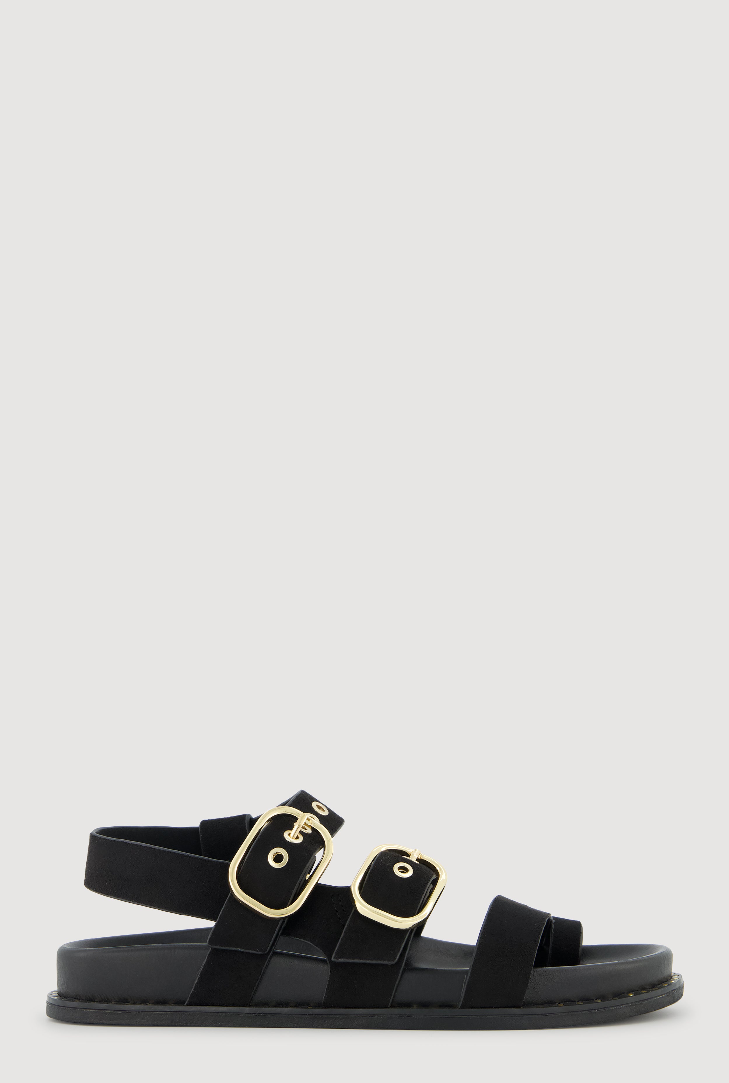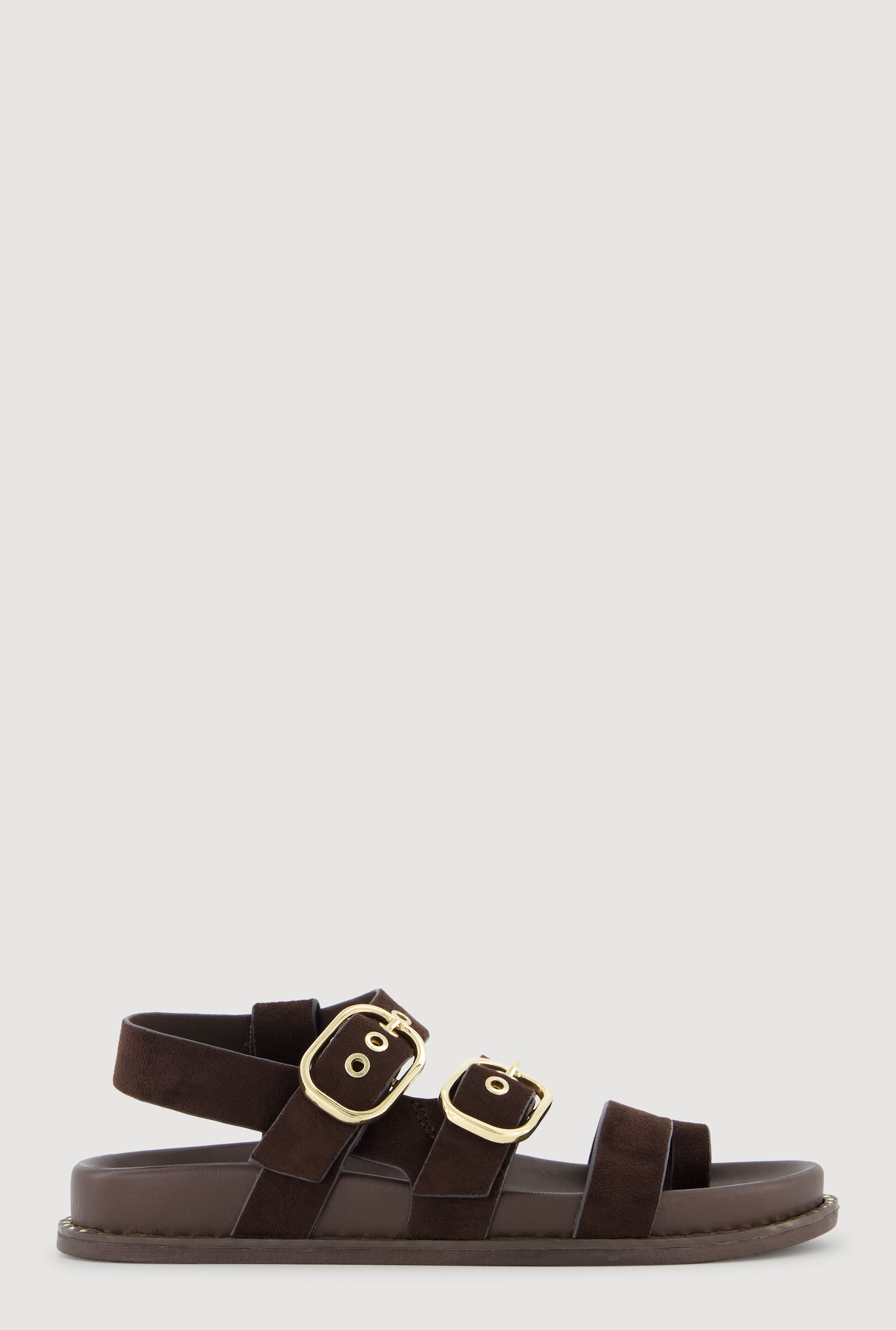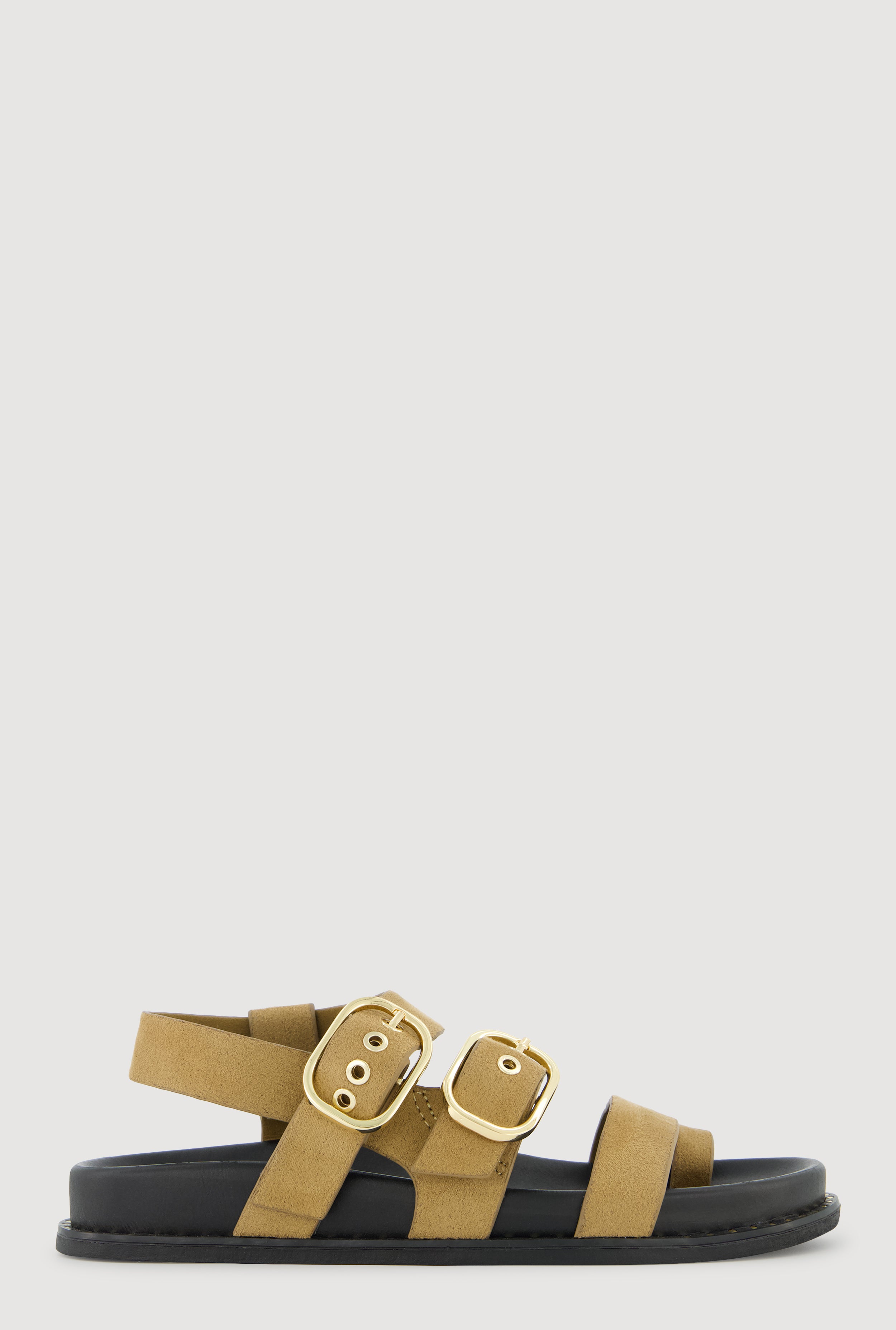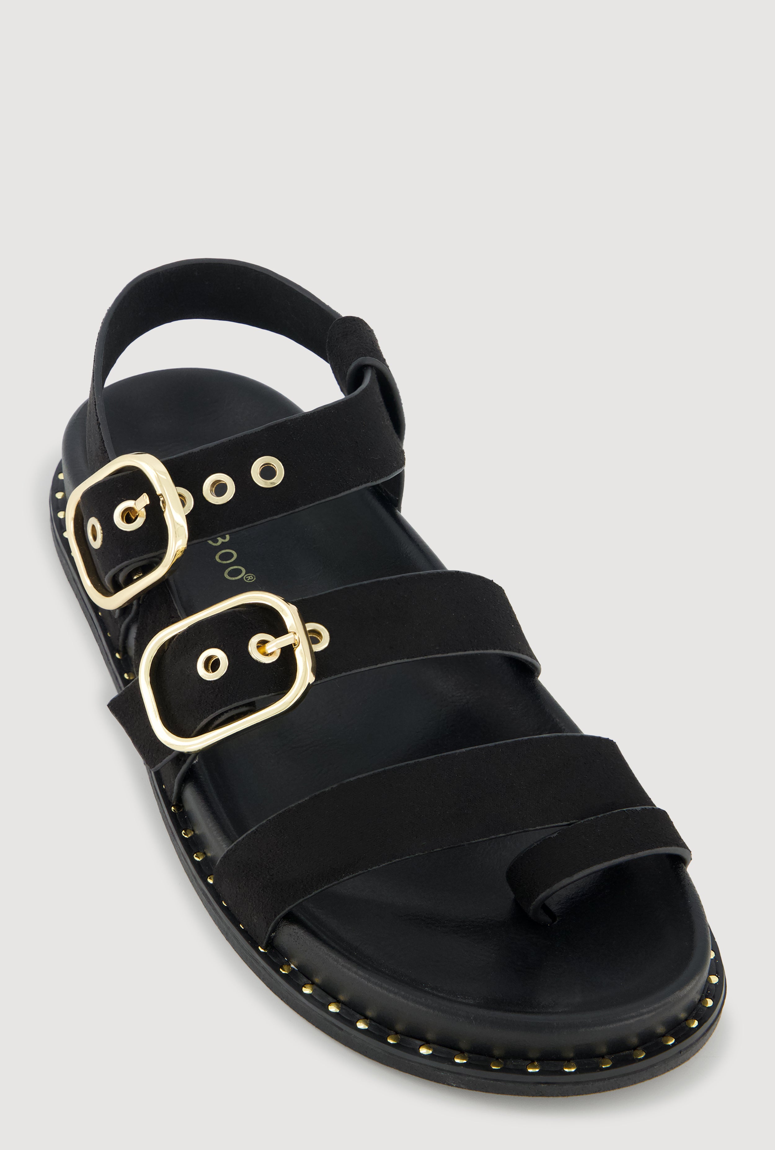 Buckled Studded Trim Faux Suede Toe Loop Slide Sandals