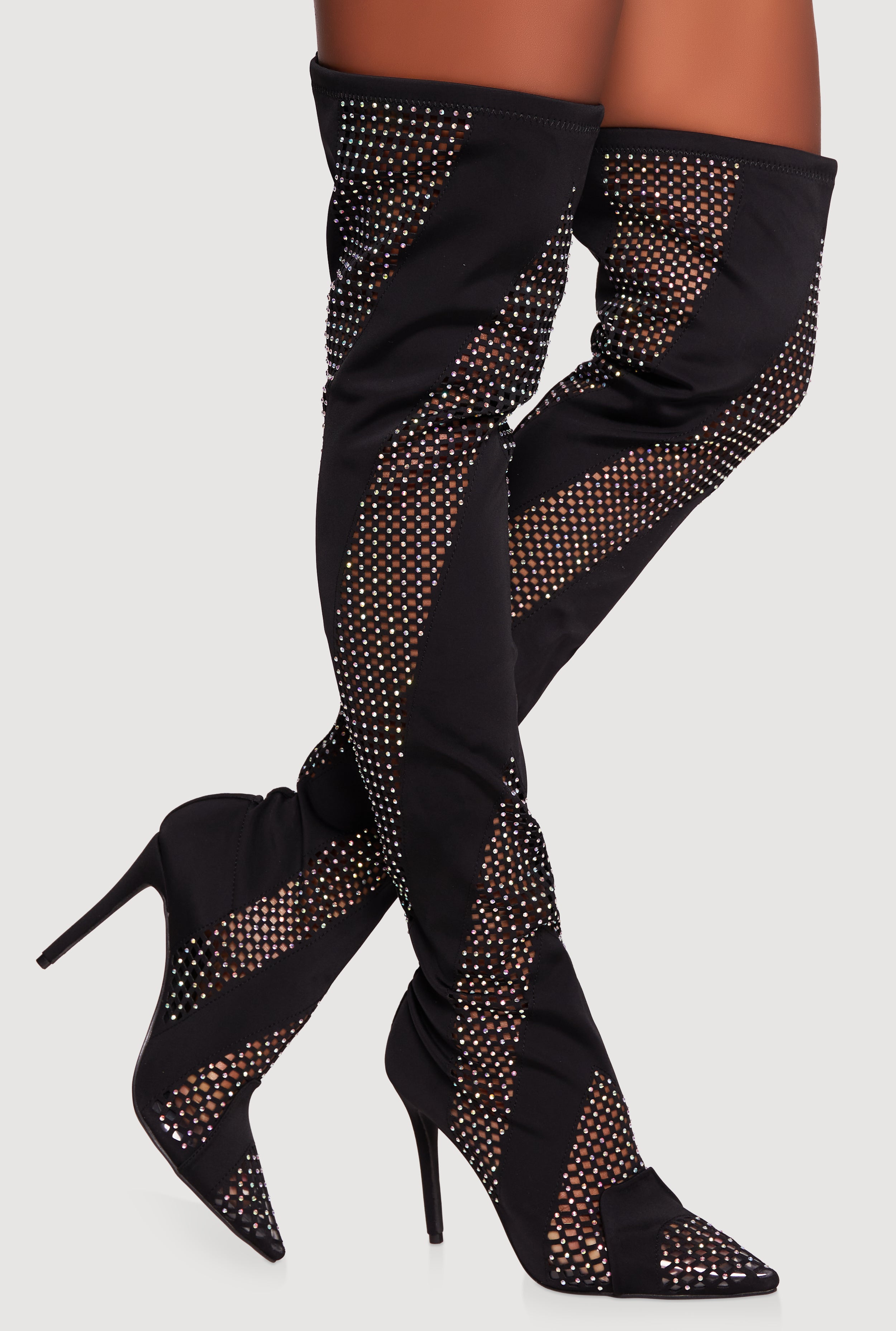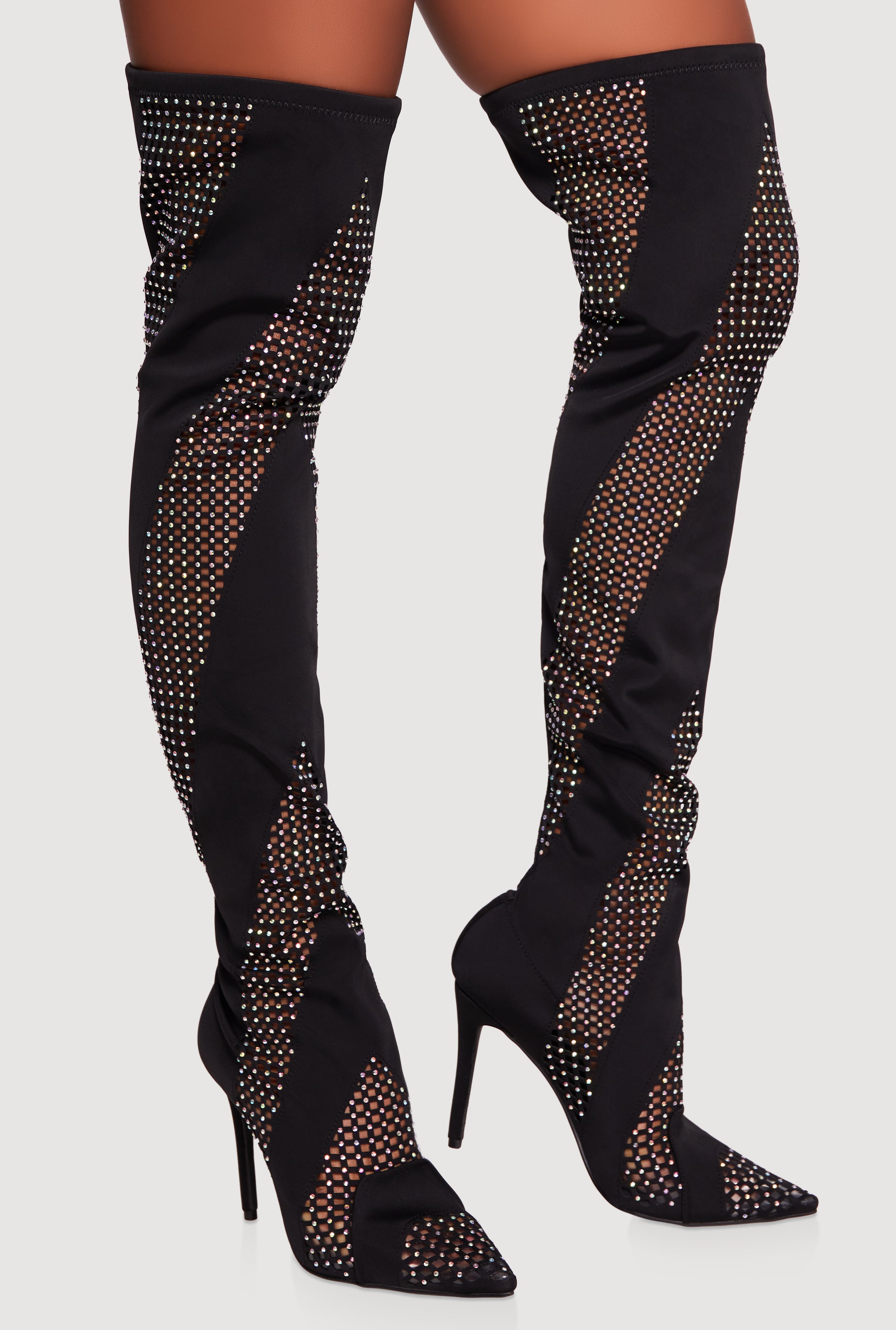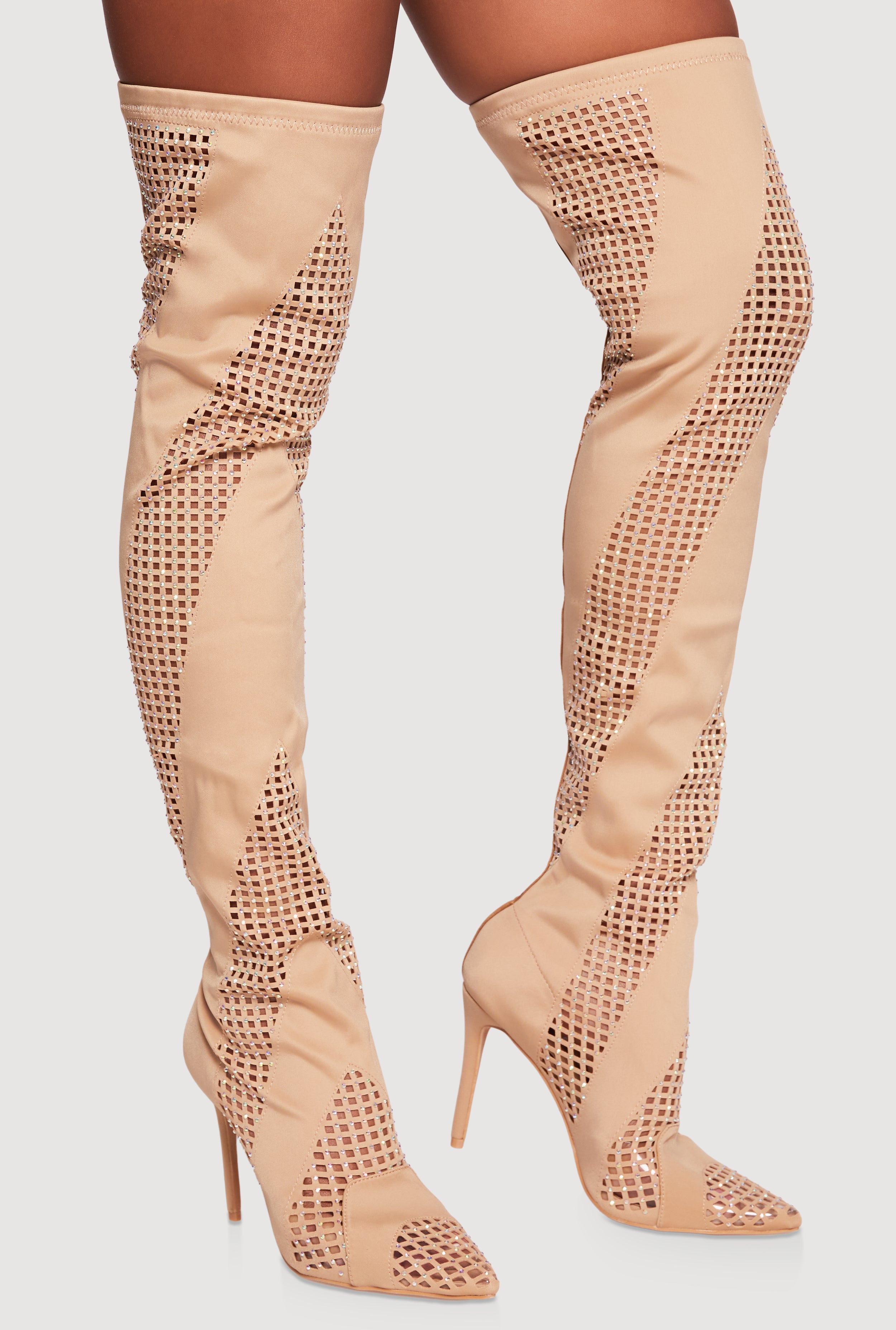 Rhinestone Chevron Cutout Thigh High Boots