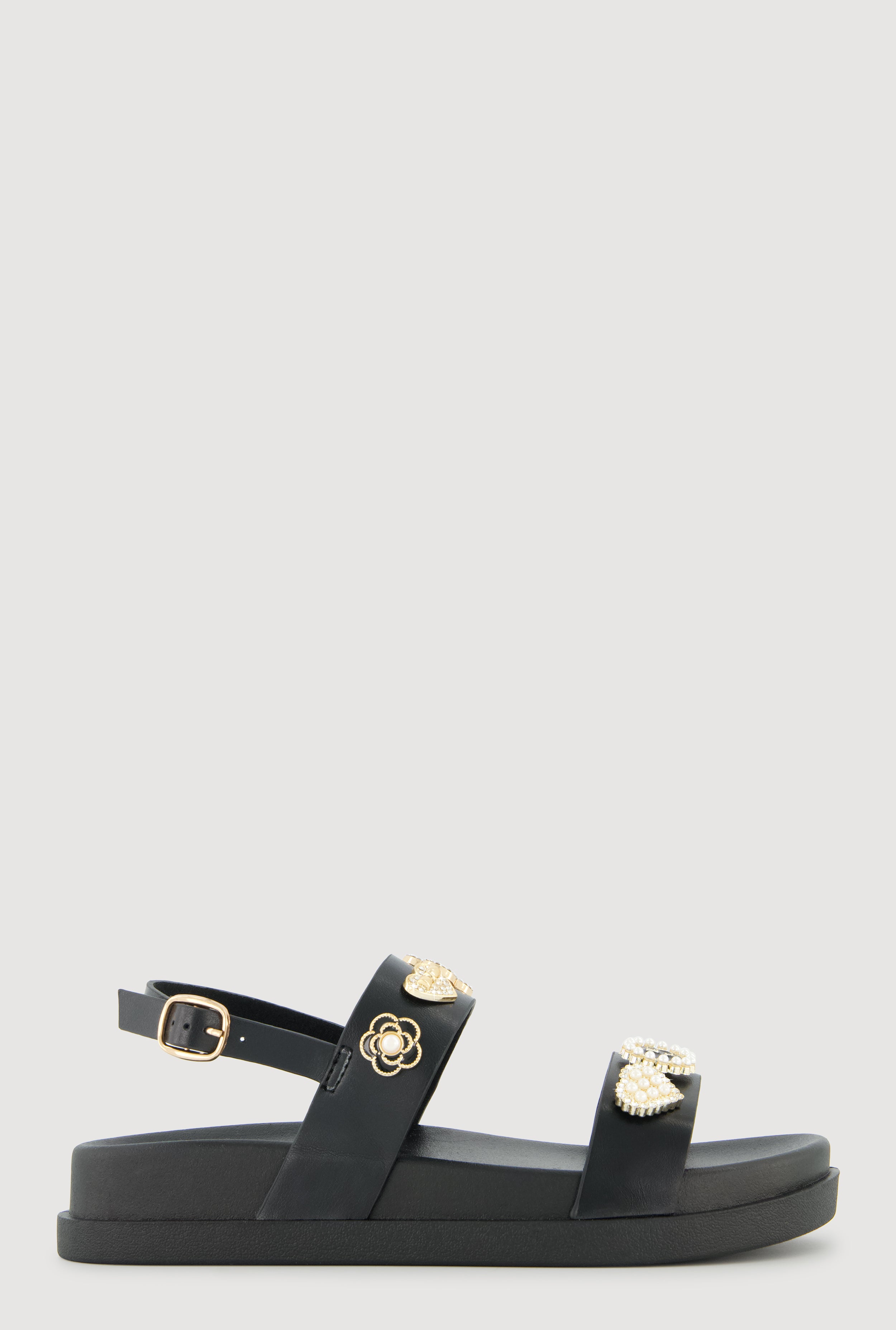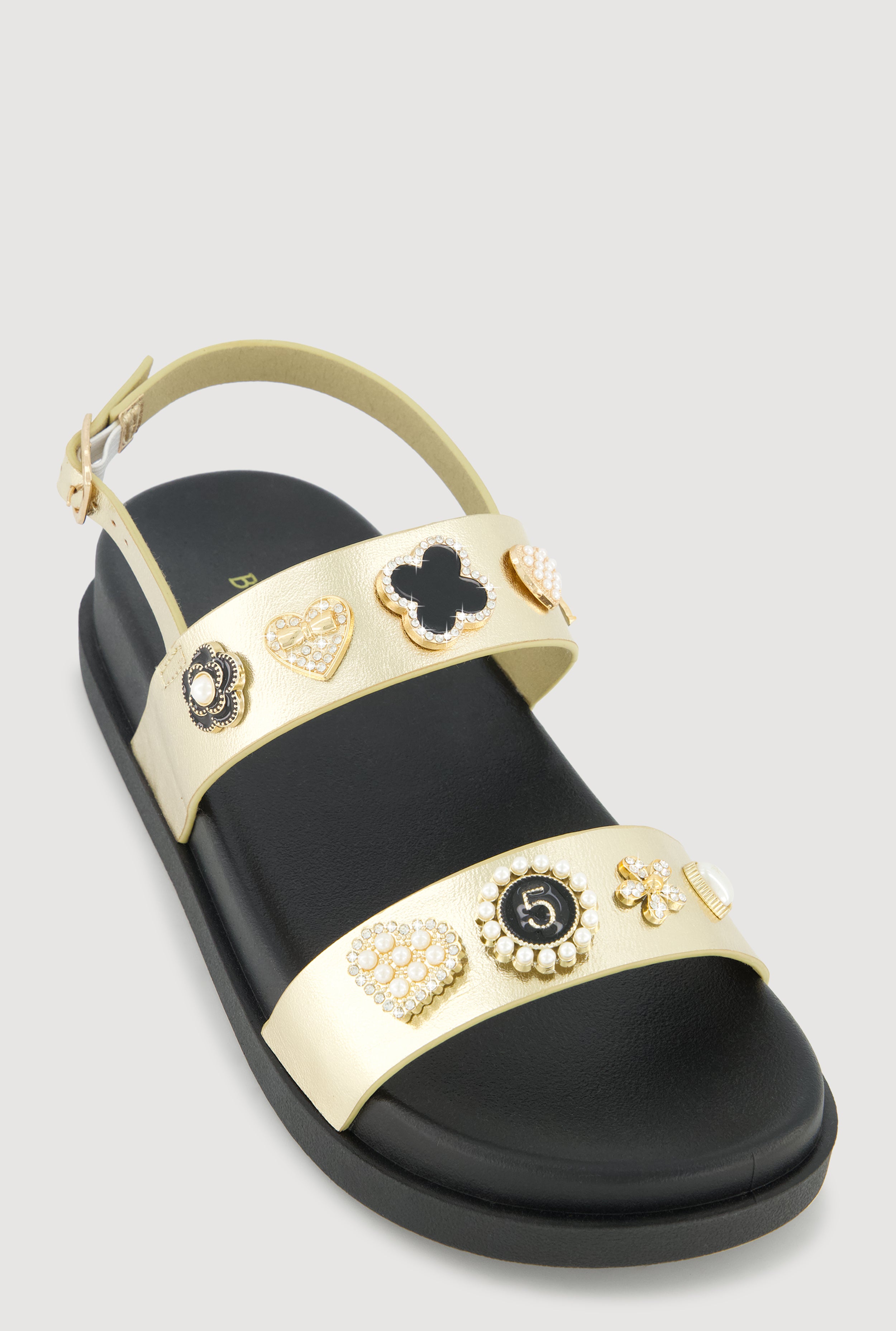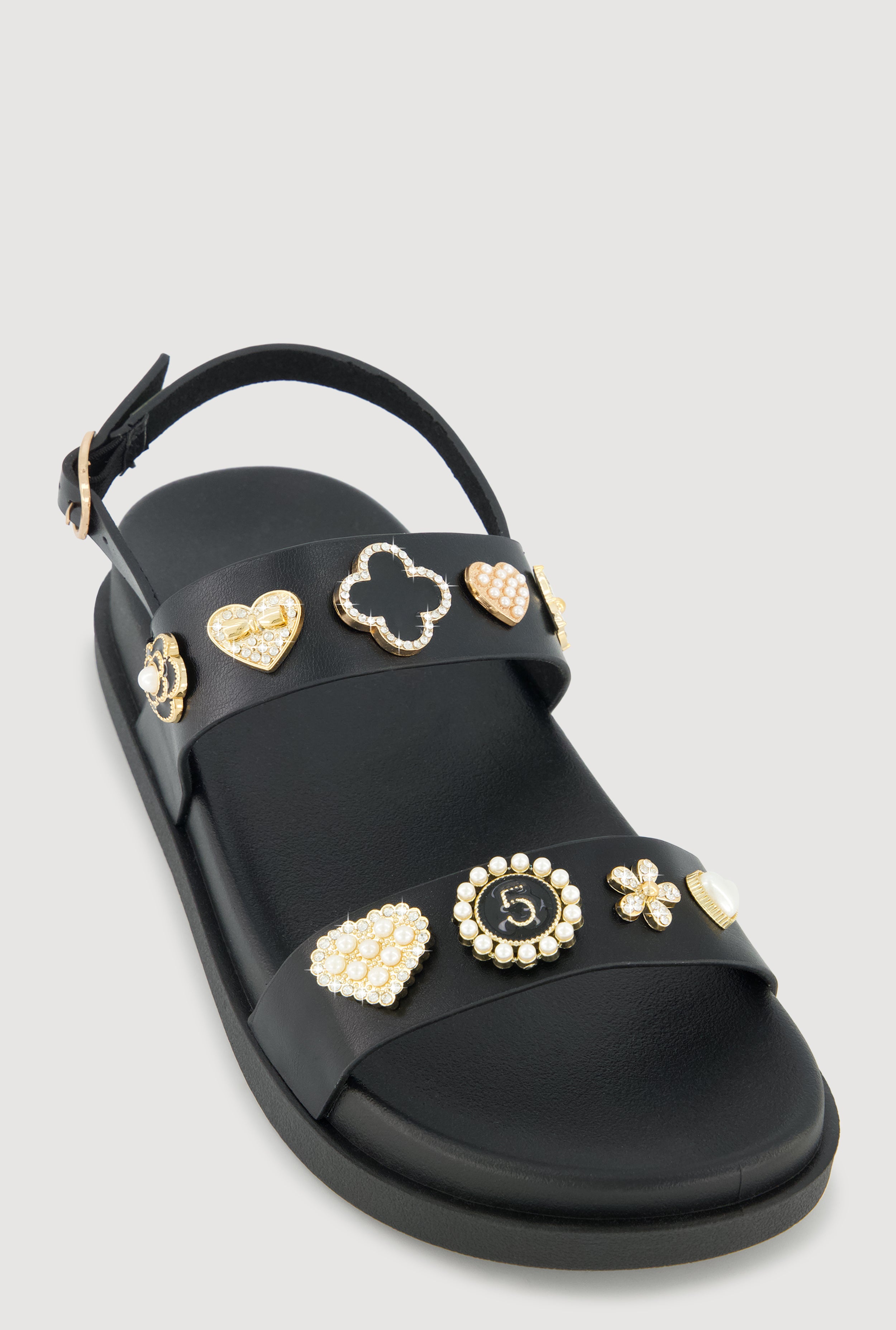 Metallic Faux Pearl Charmed Double Strap Footbed Sandals
