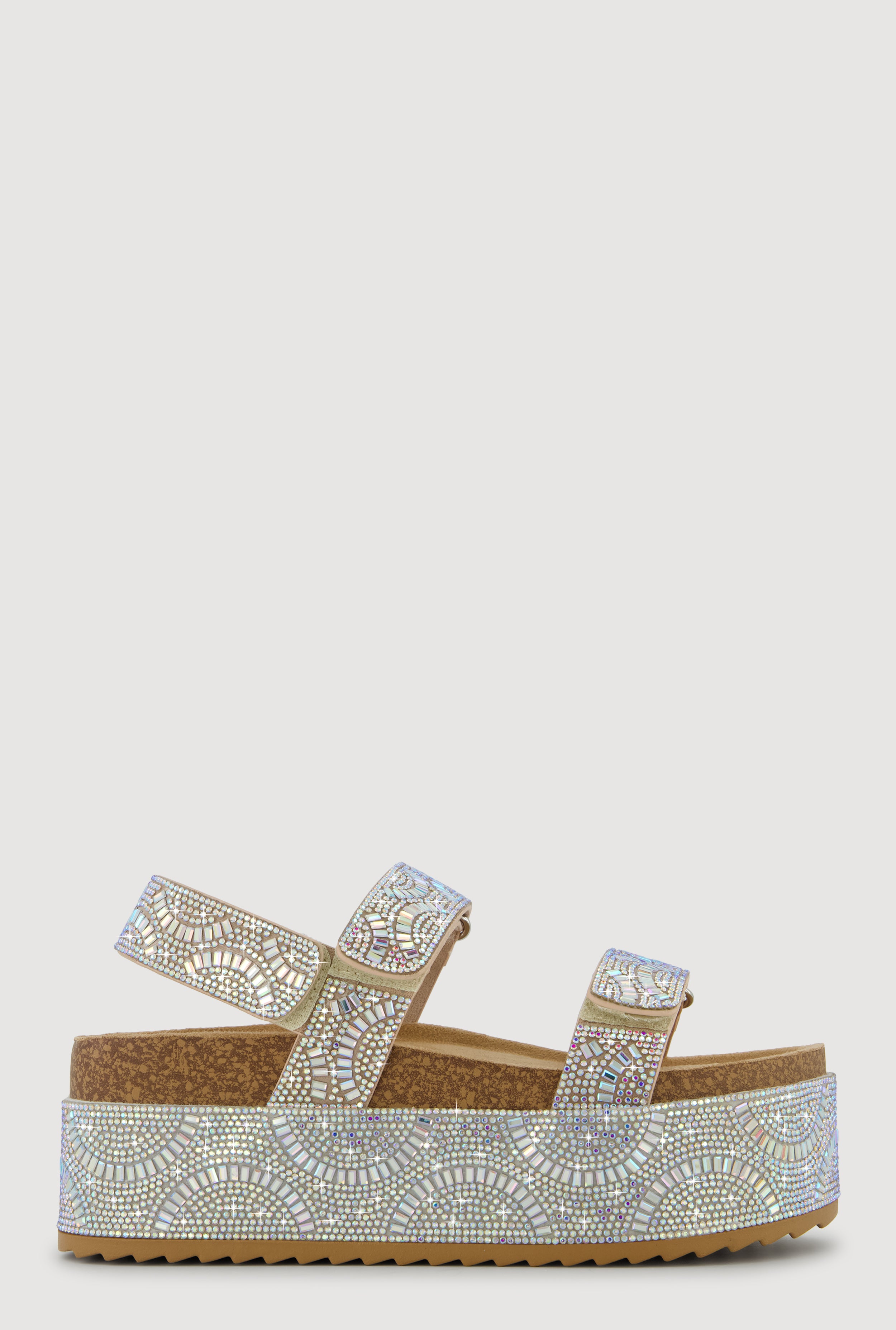 Iridescent Rhinestone Double Strap Platform Sandals