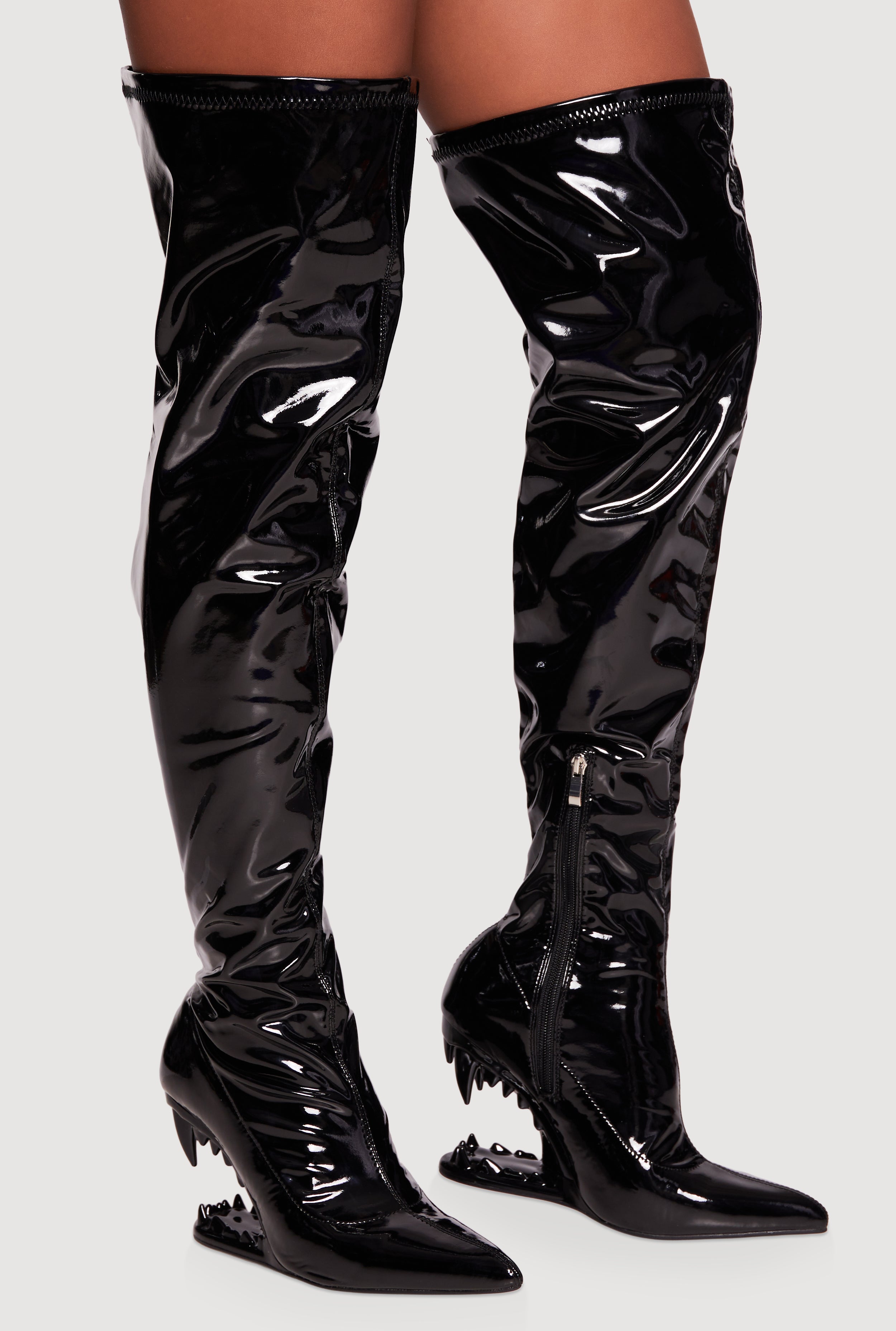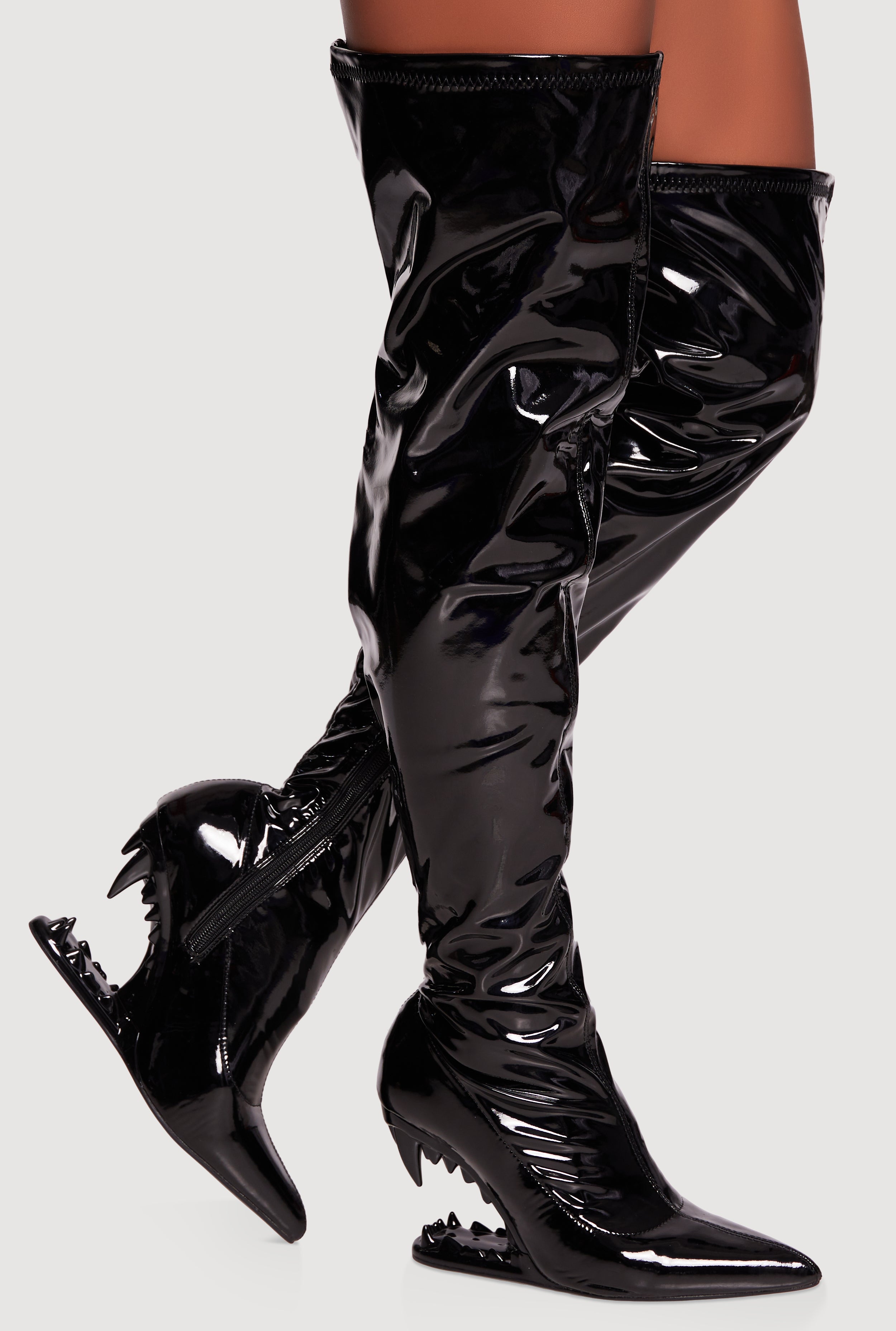 Fang Wedge Thigh High Boots