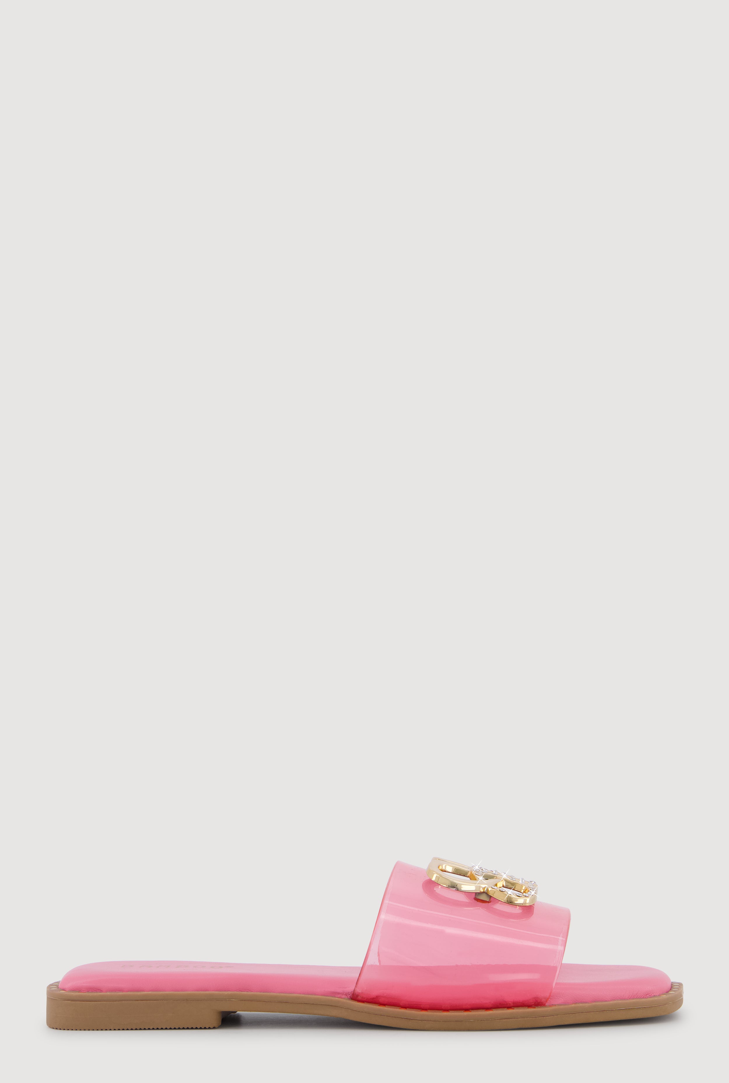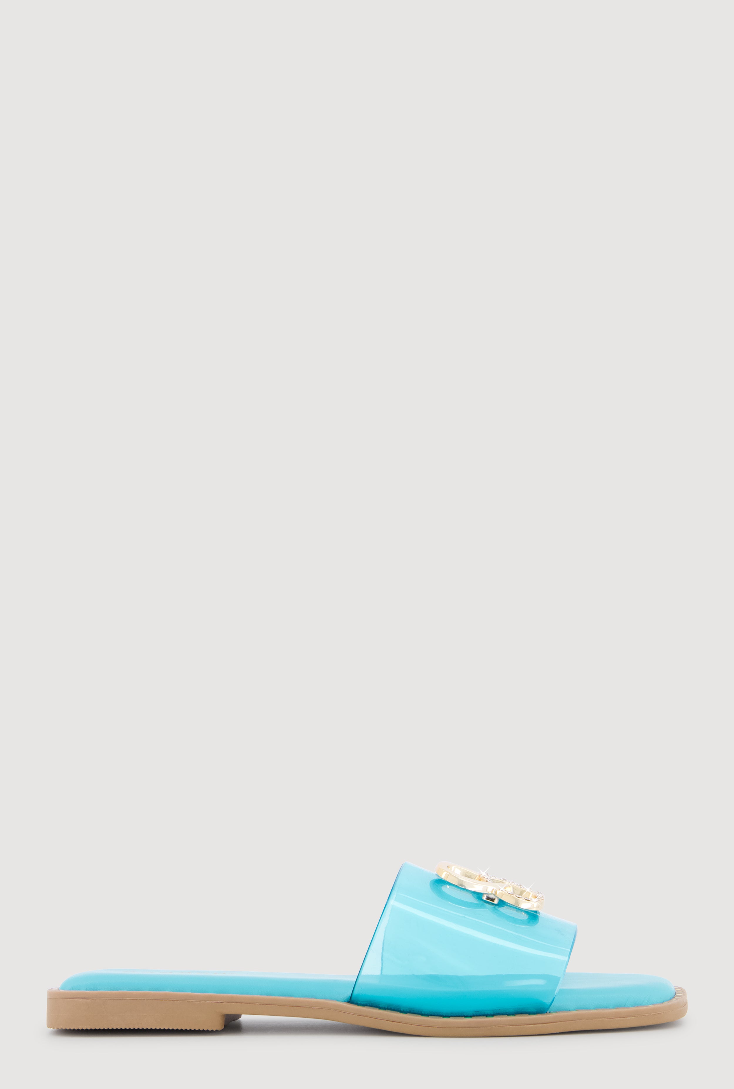 Metallic Rhinestone Pendant Single Band Open Toe Sandals