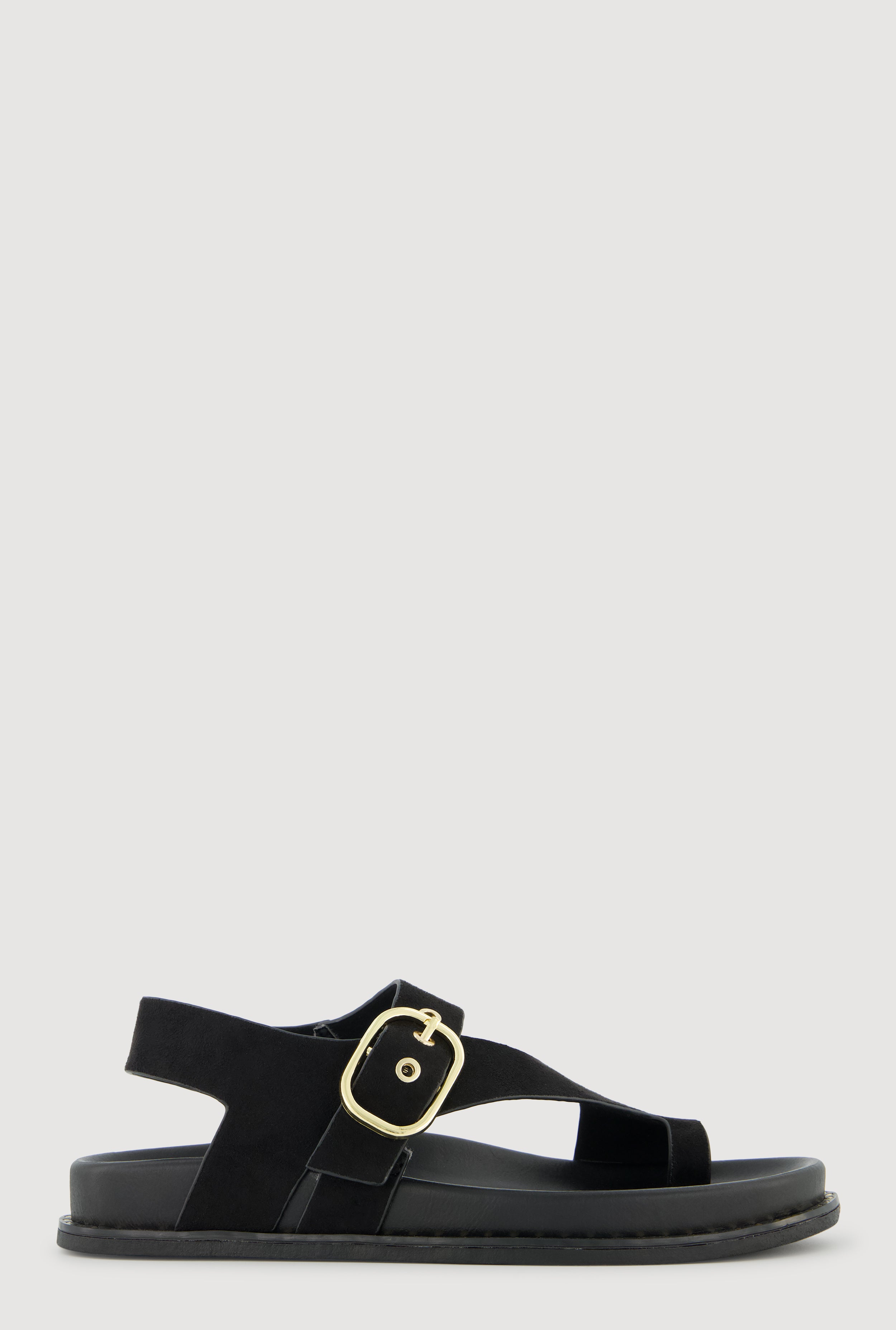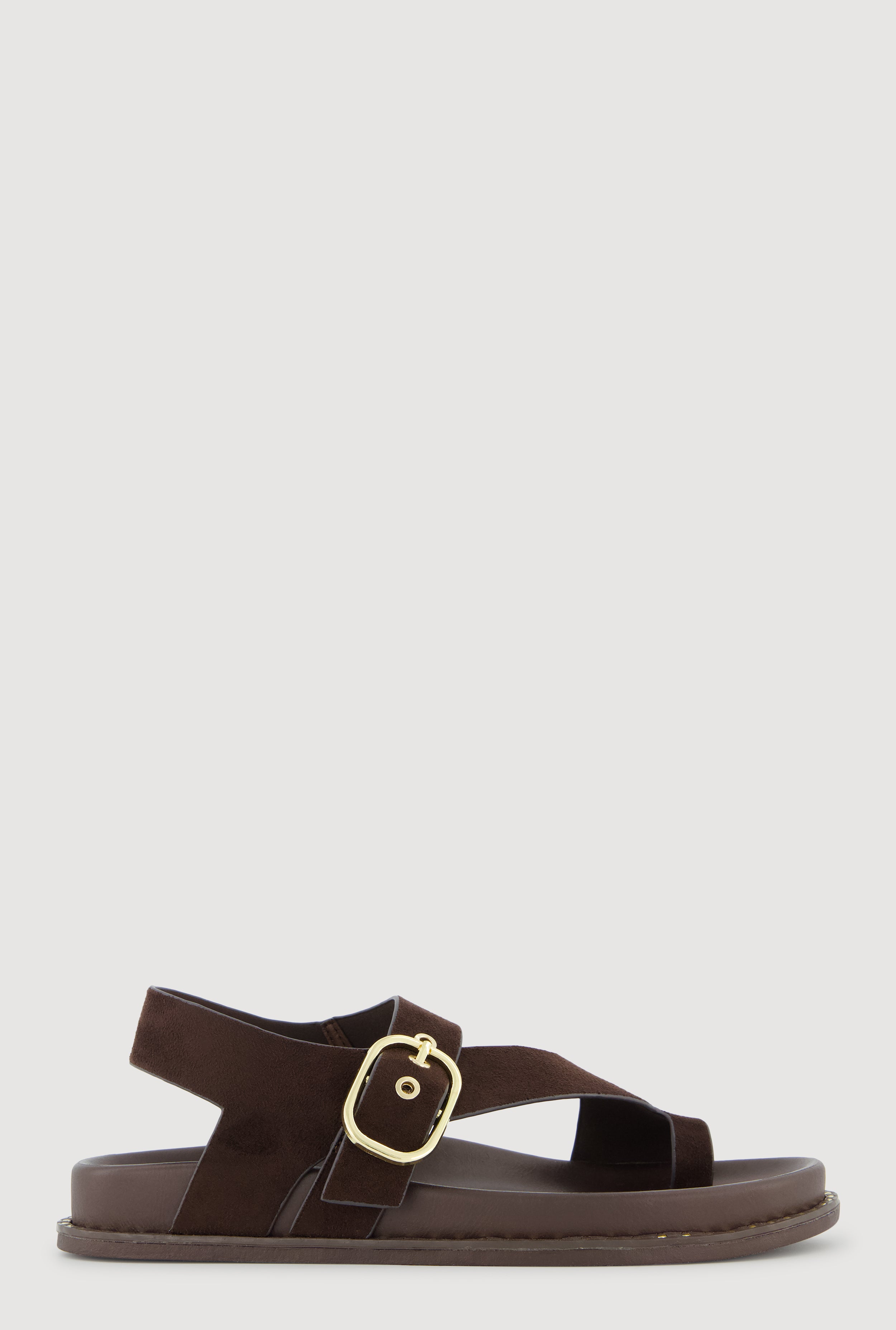 Metallic Buckle Faux Suede Toe Loop Sandals