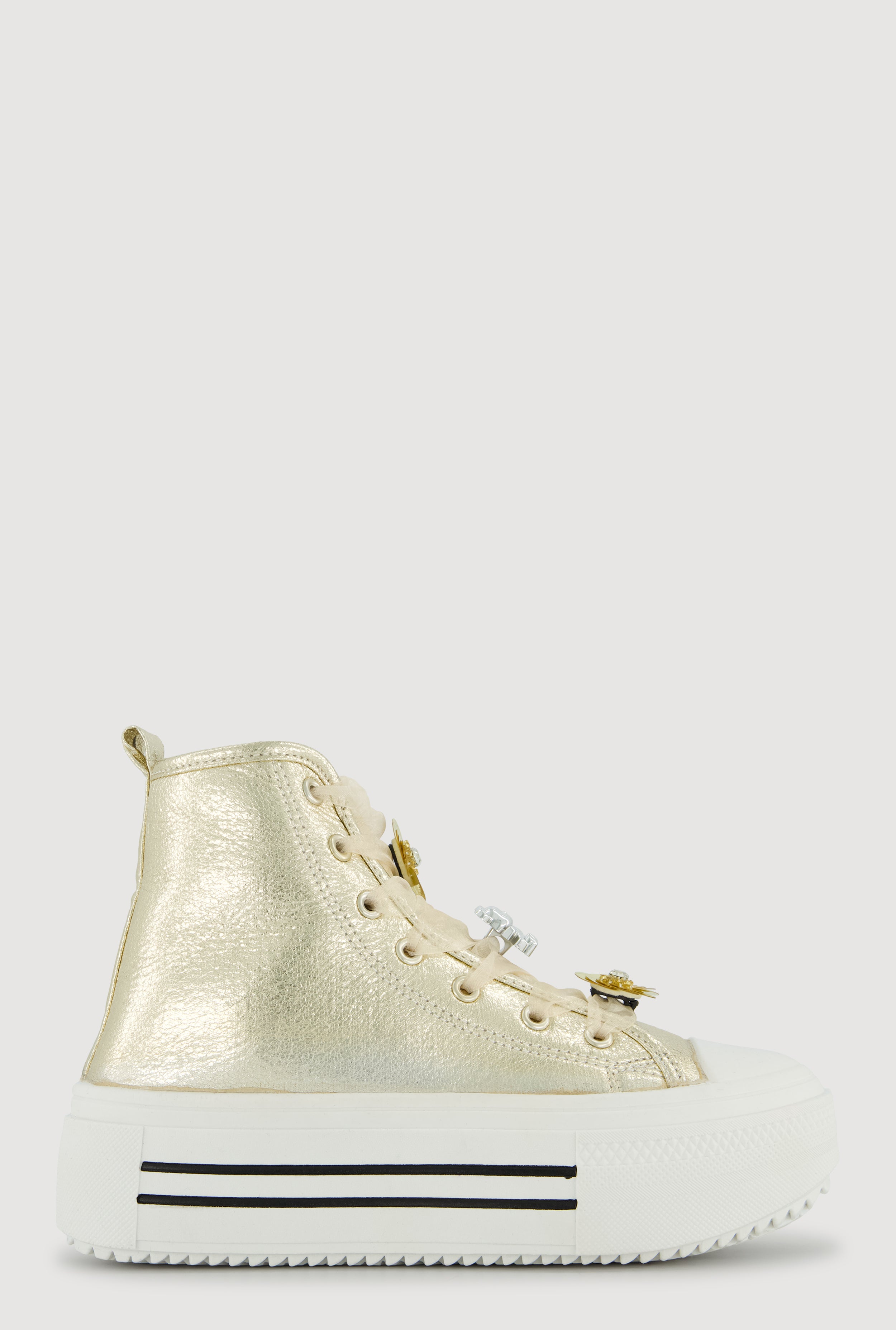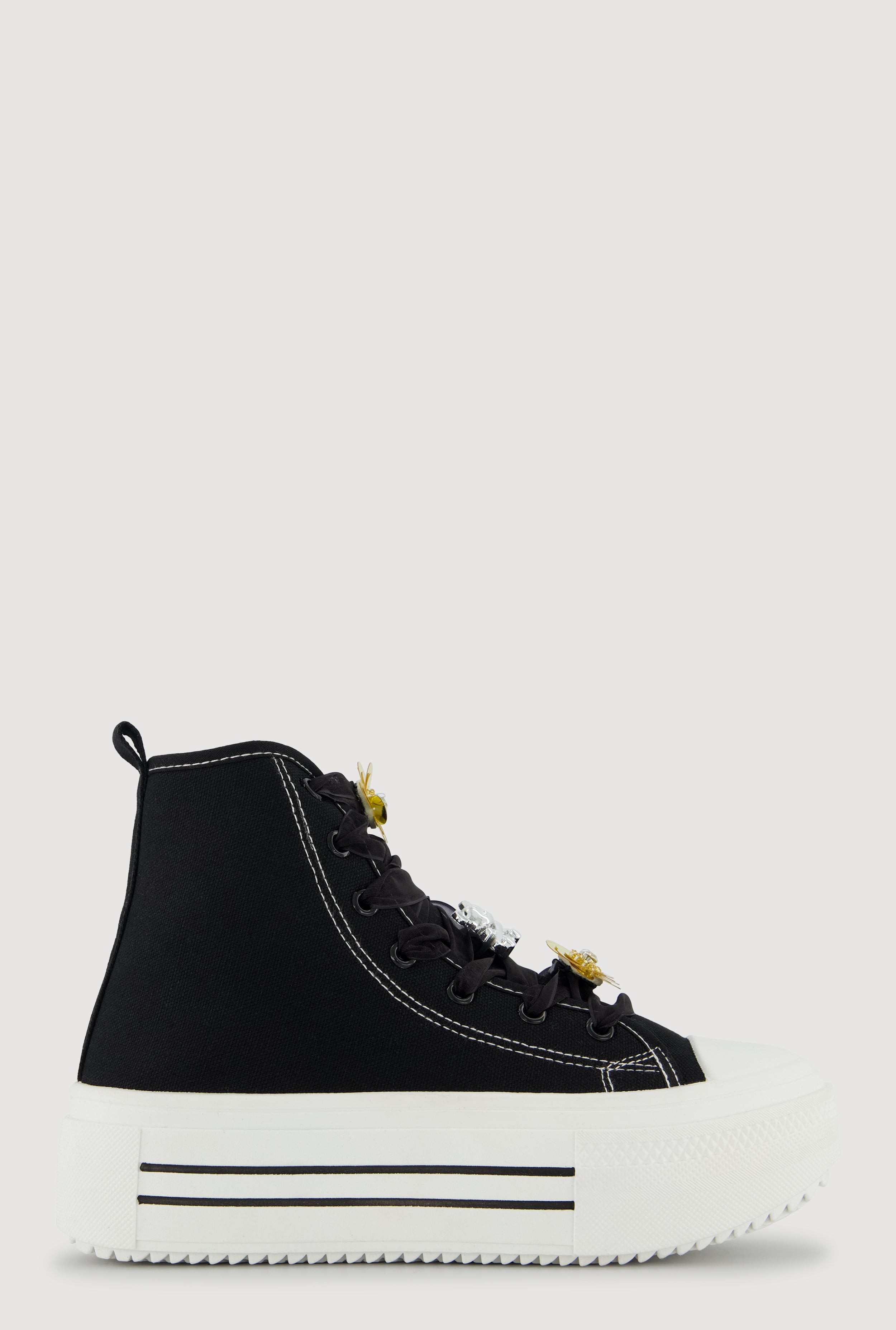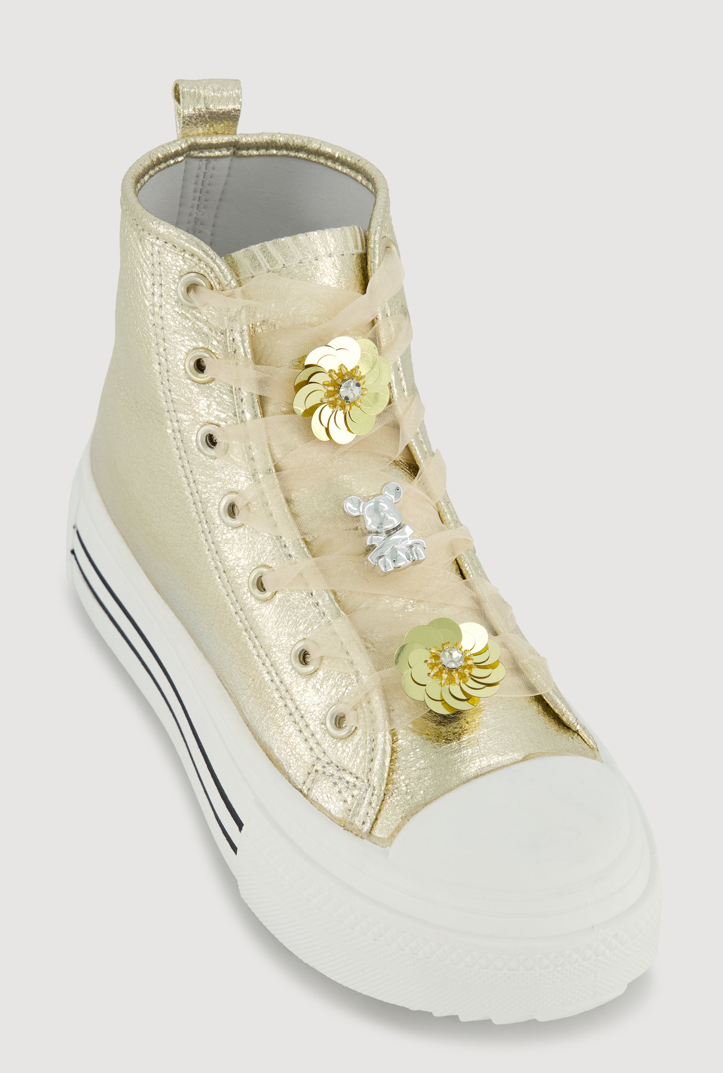 Tulle Lace Up Charm Platform High Top Sneakers