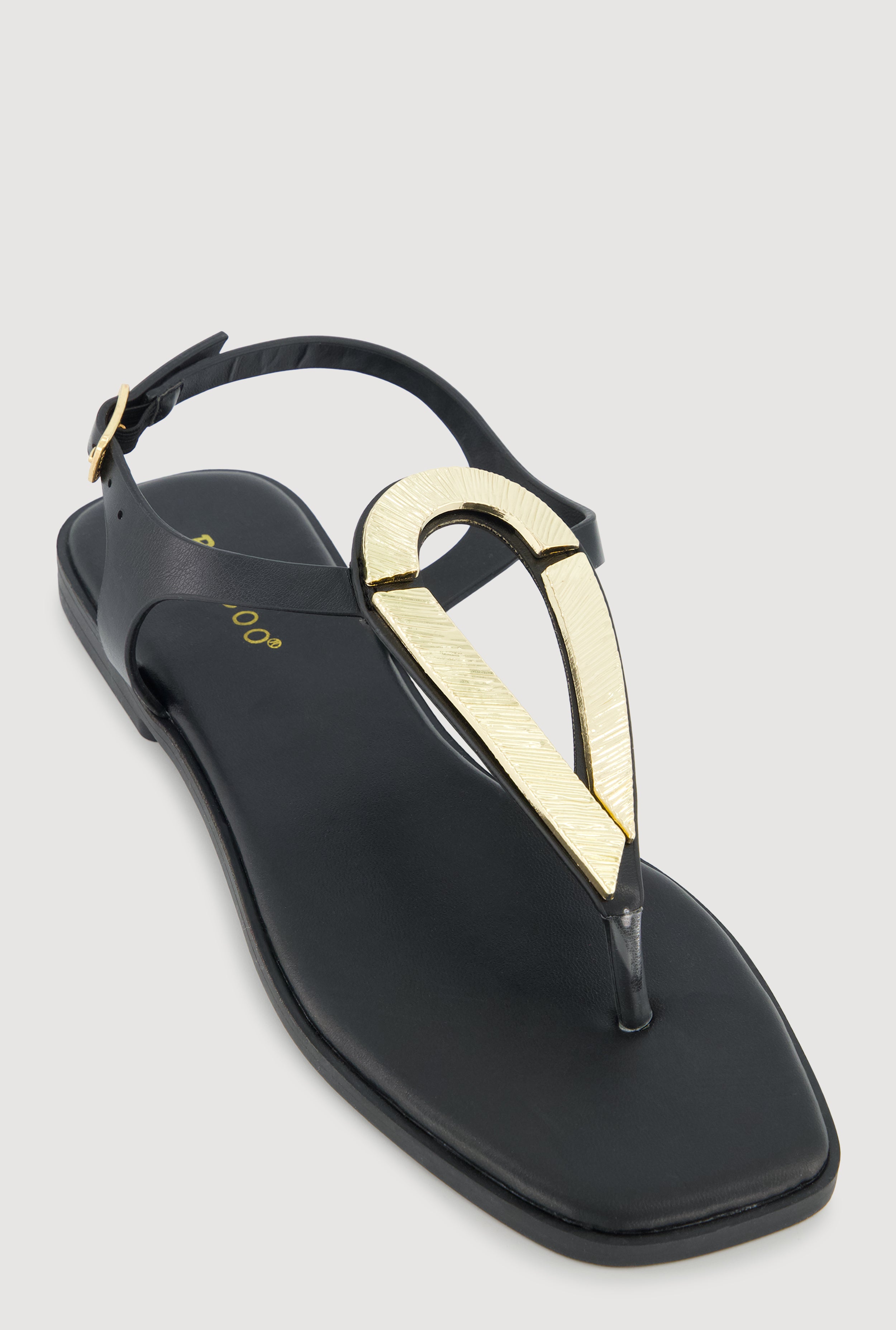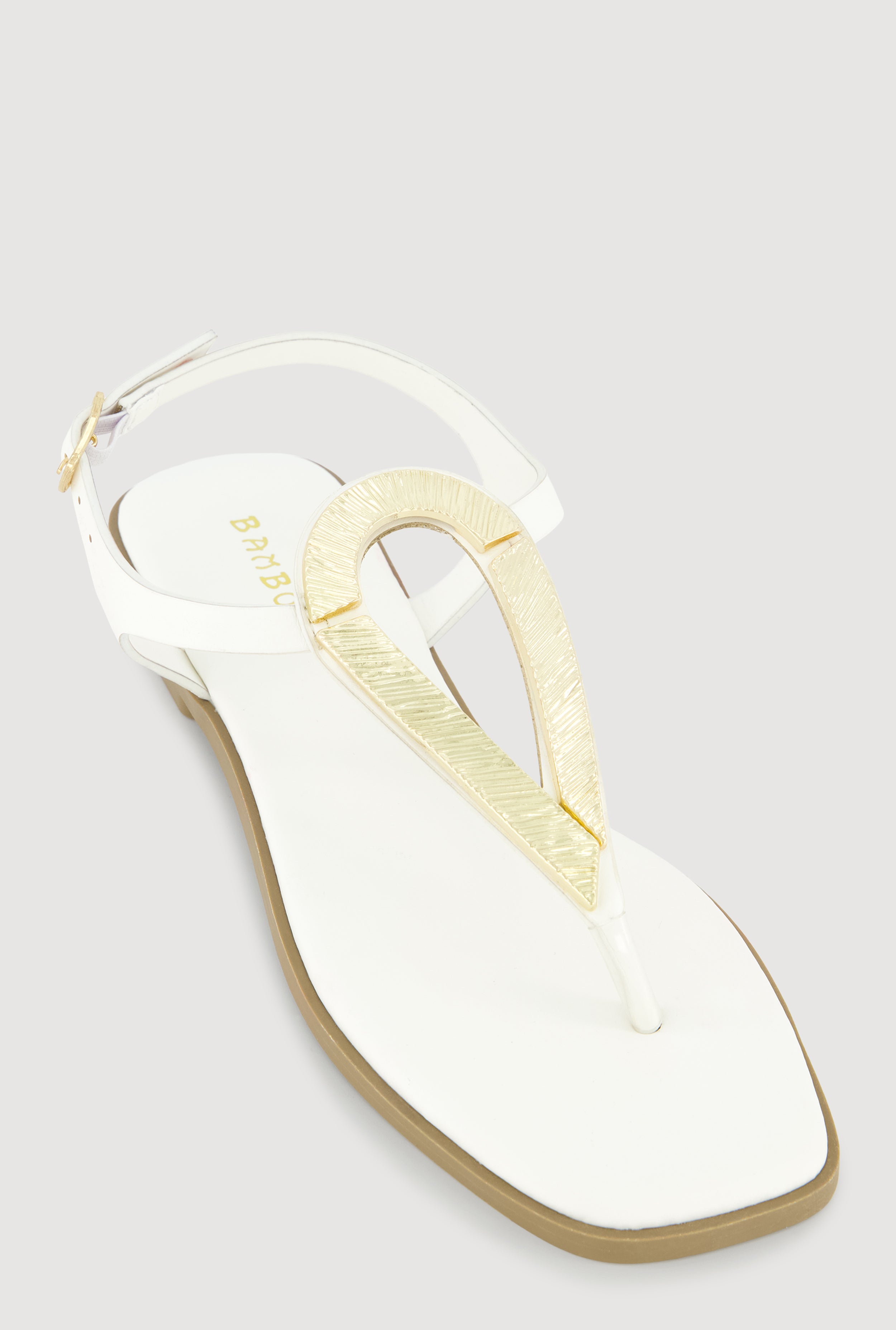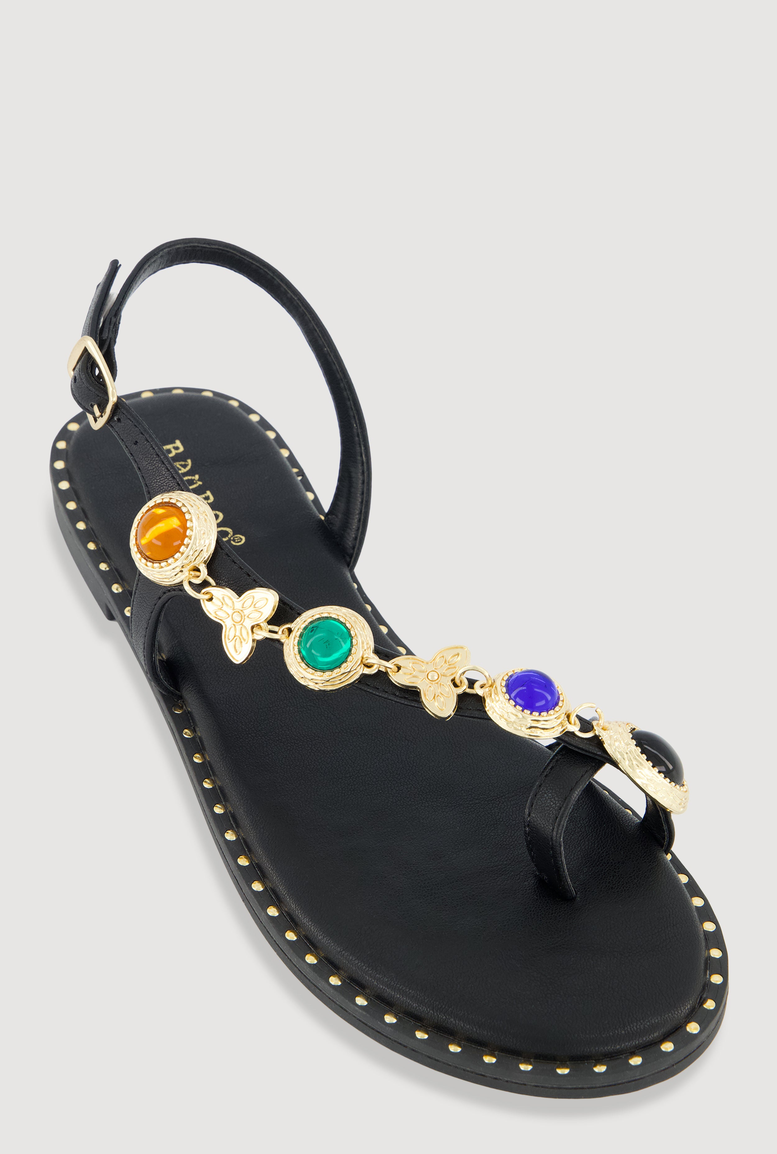 Metallic Loop Pendant Ankle Strap Thong Sandals