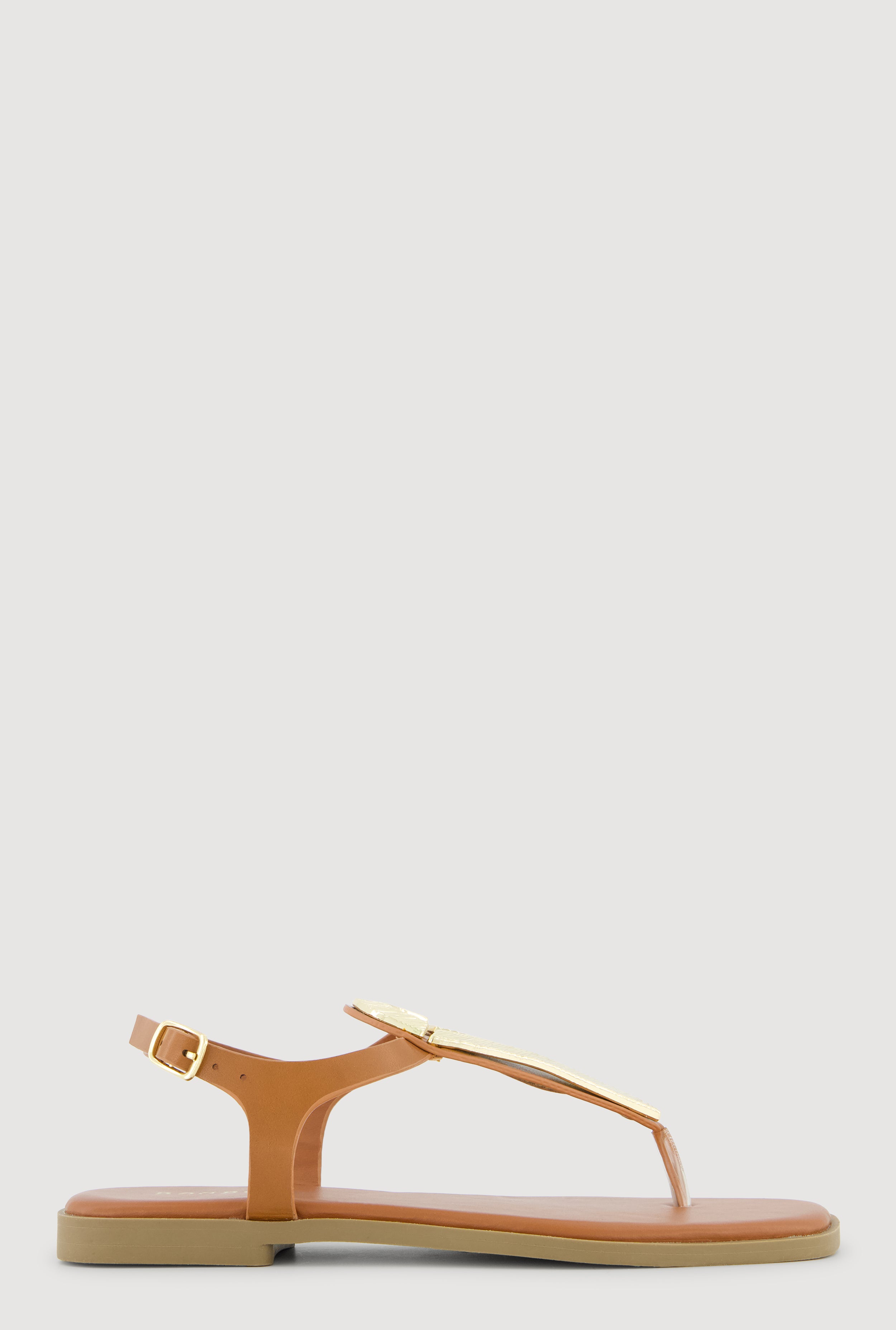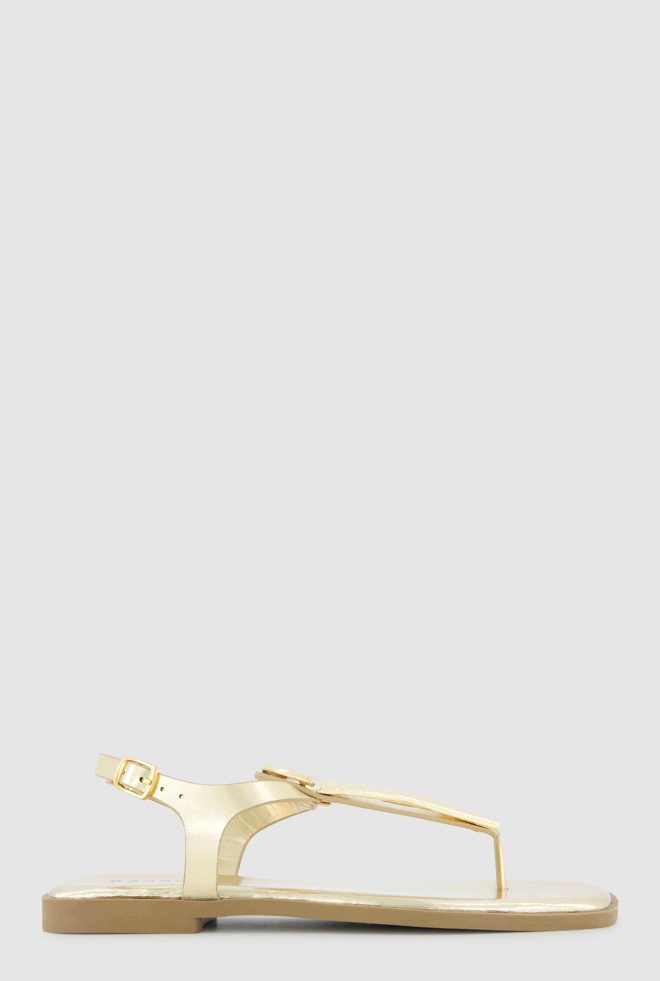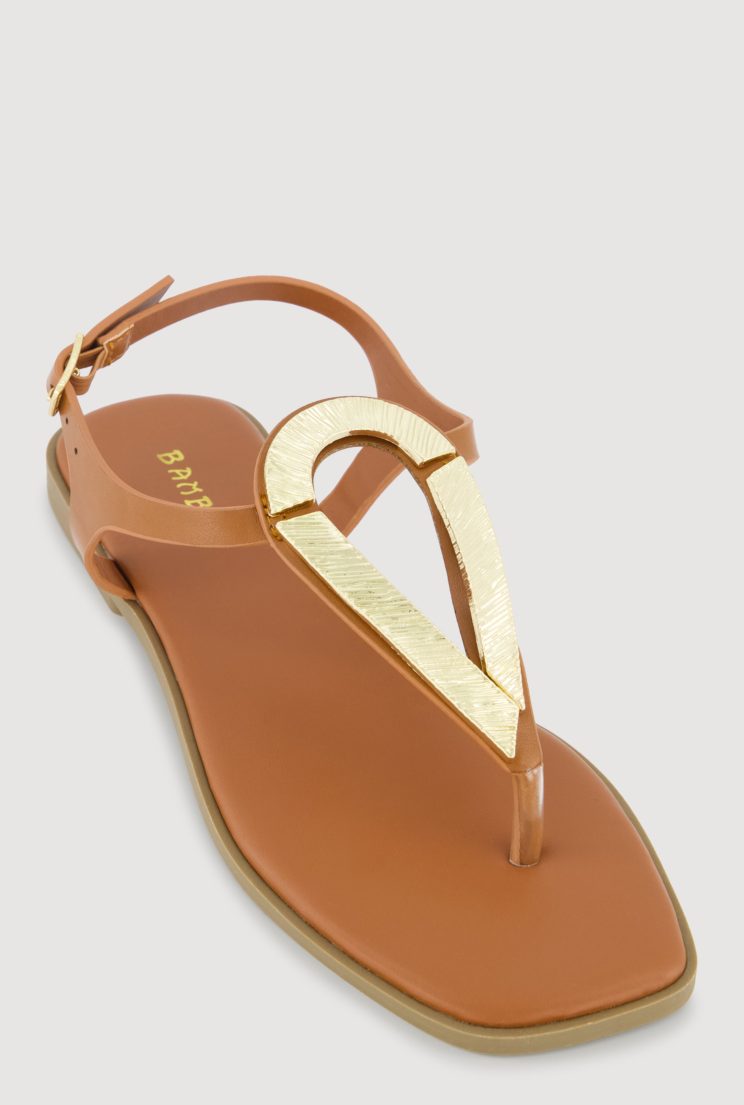 Metallic Loop Pendant Ankle Strap Thong Sandals