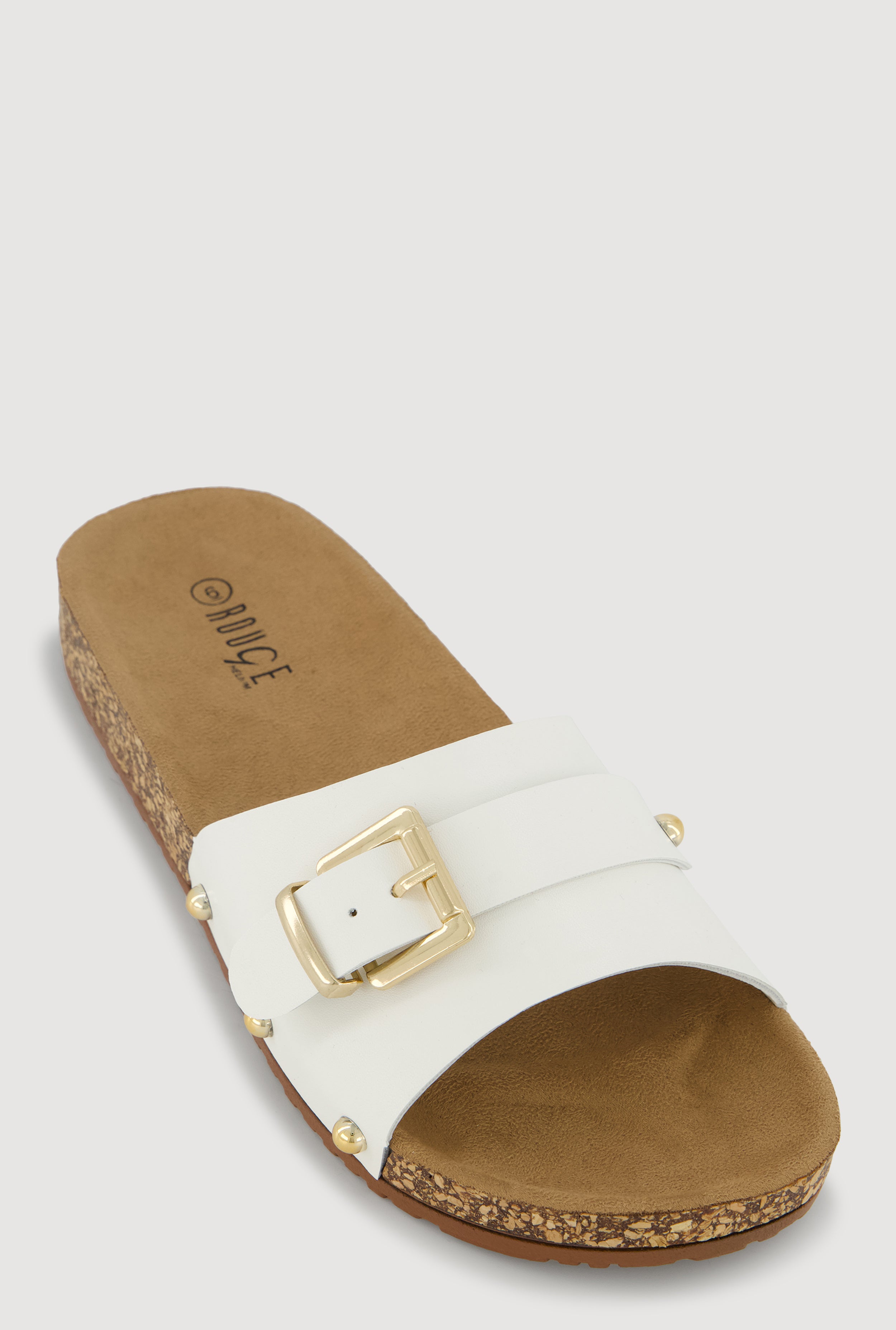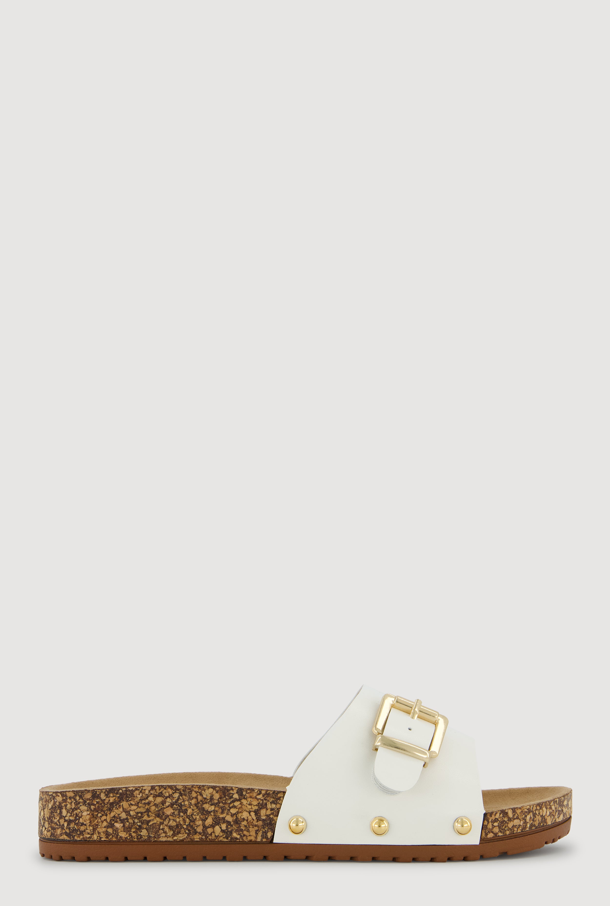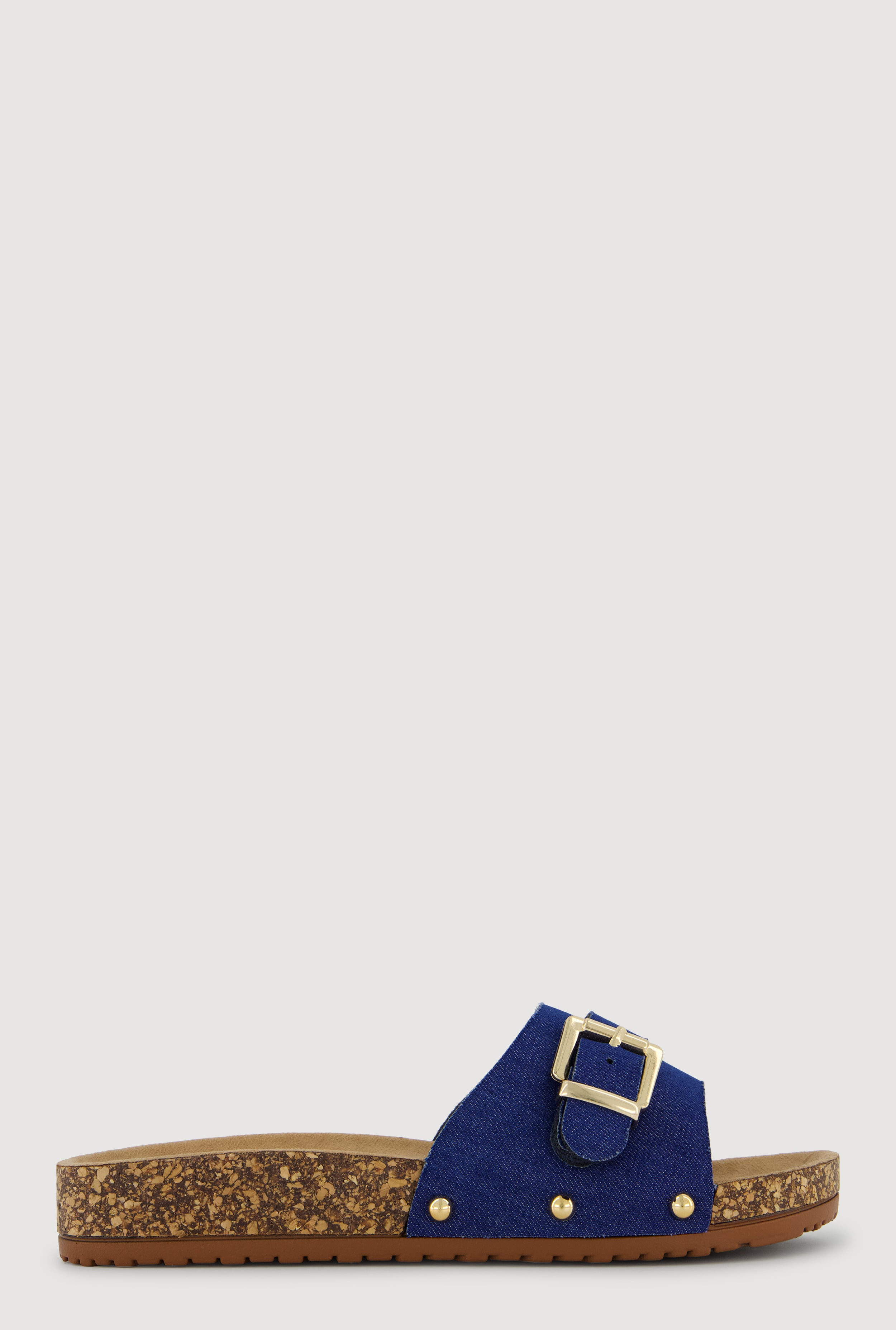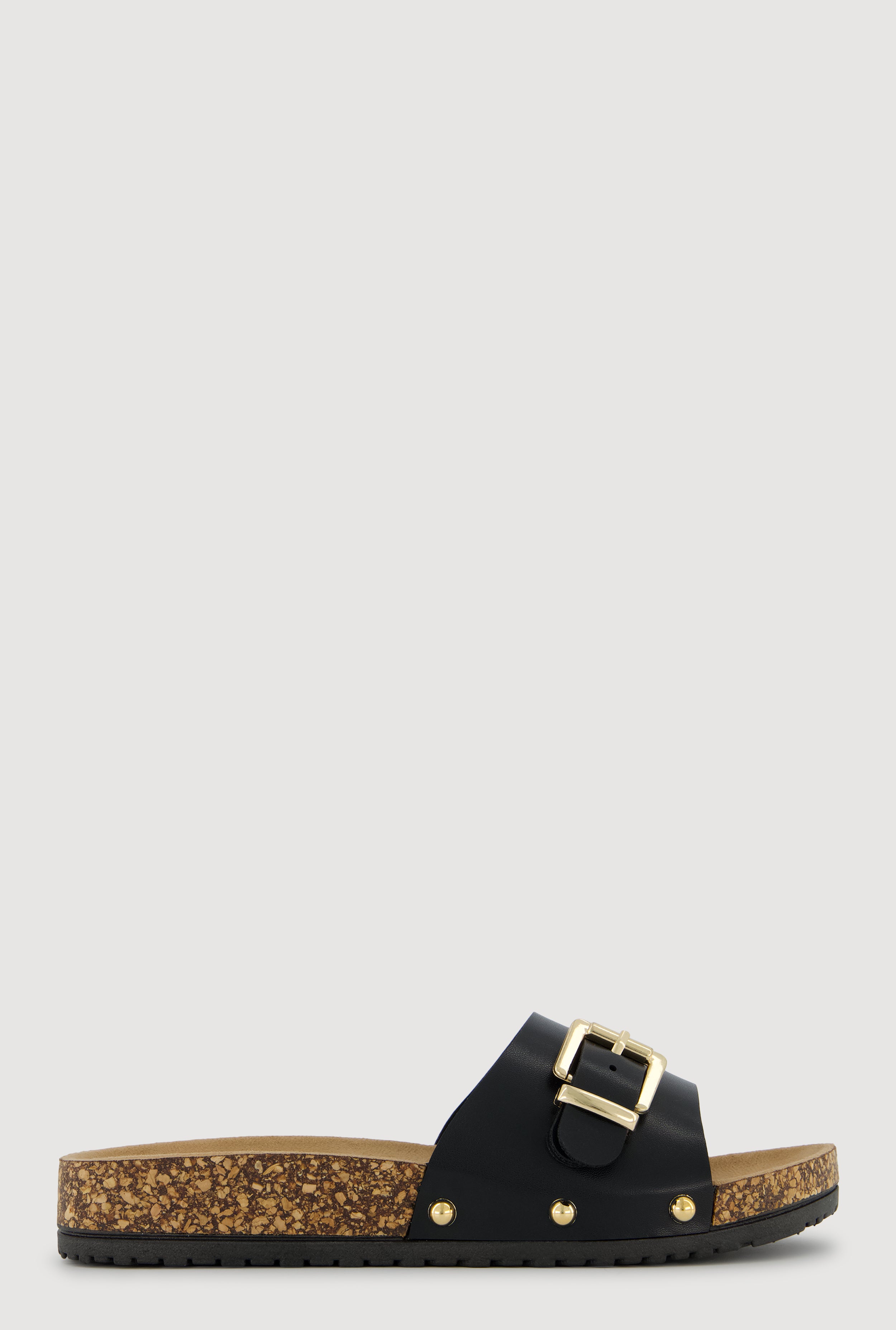 Metallic Buckle Cork Slide Sandals