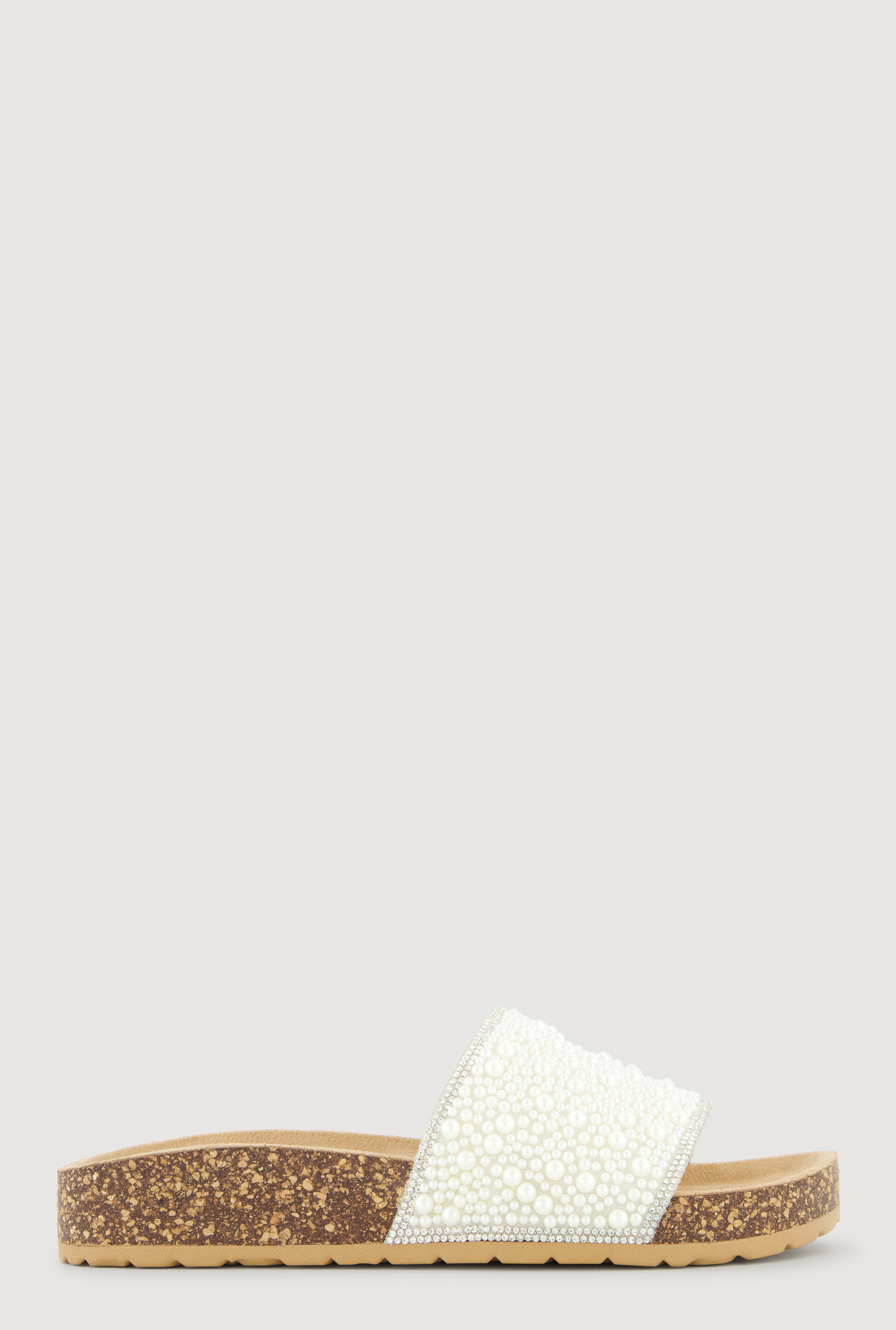 Rhinestone Trim Faux Pearl Band Footbed Sandal