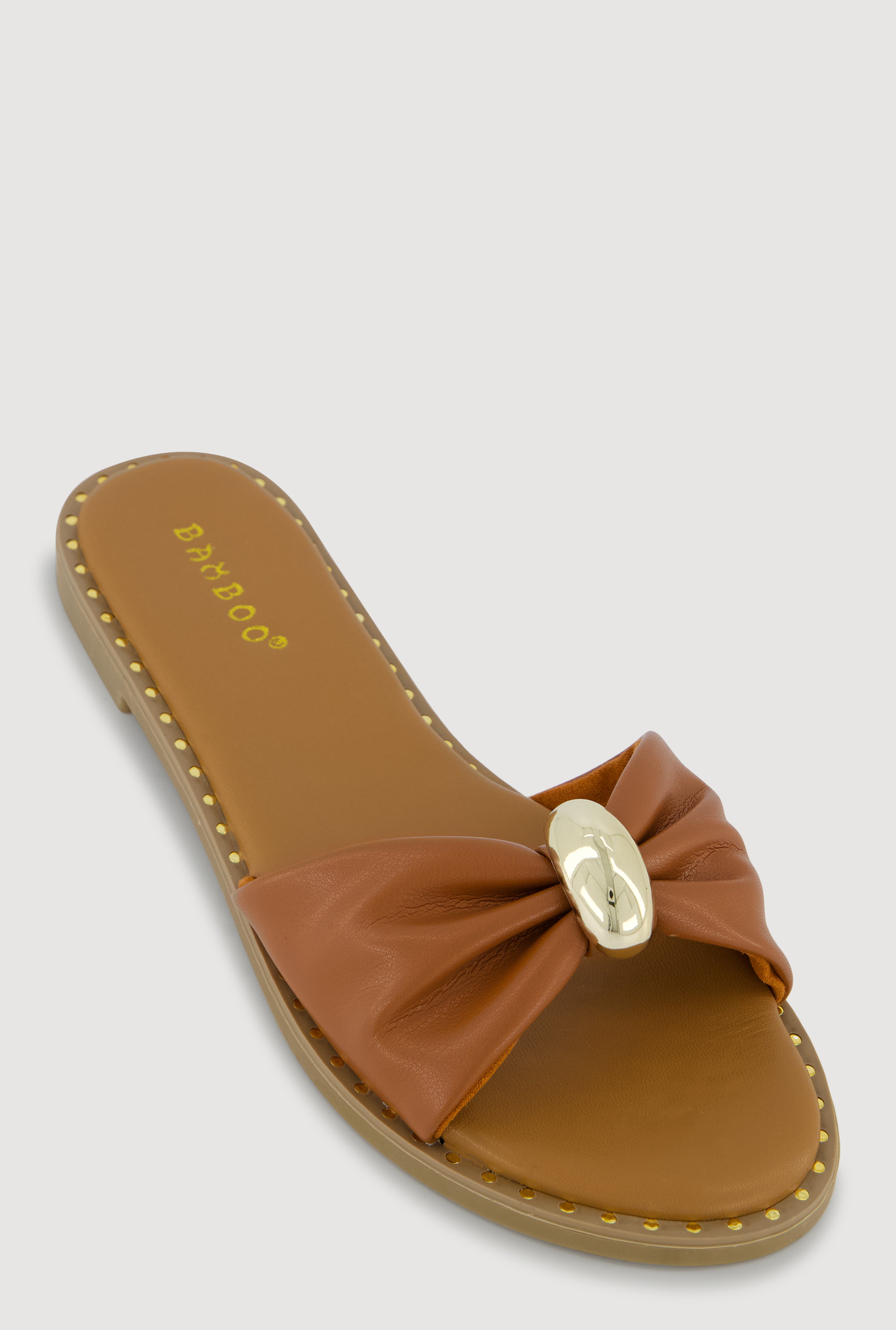 Bow Band Metallic Detail Slide Sandals