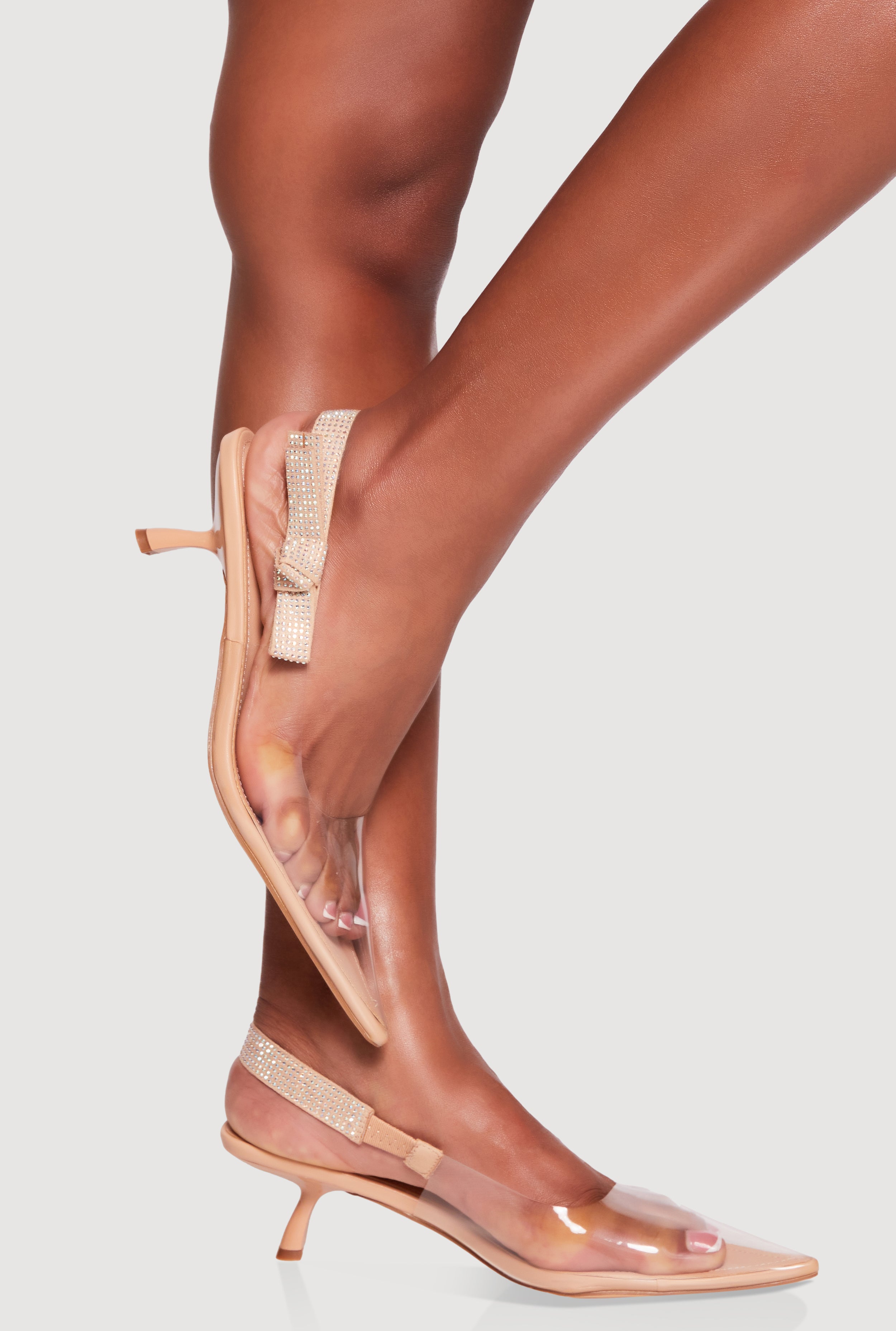 Rhinestone Bow Strap Slingback Kitten Heels