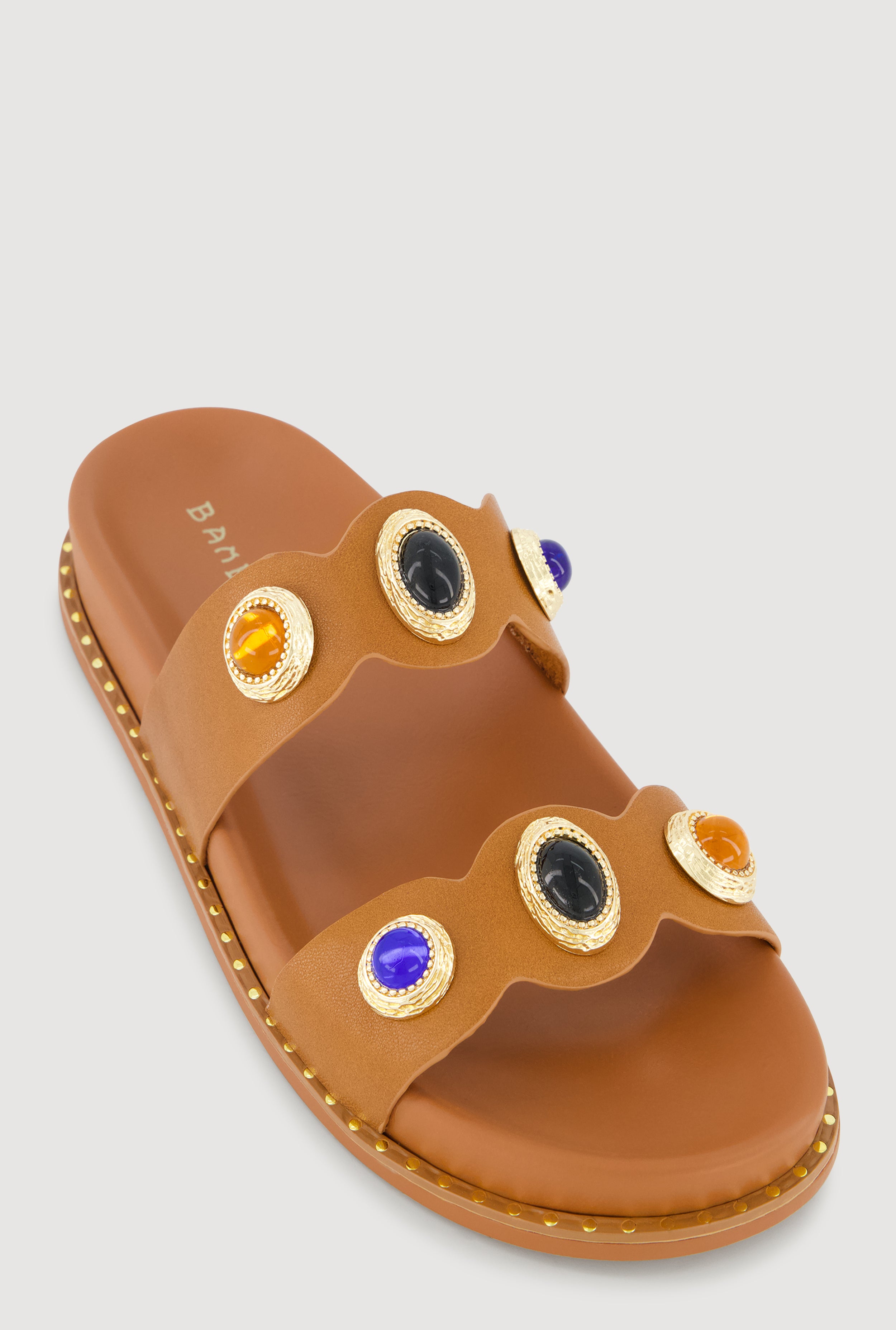 Metallic Gemstone Pendant Double Band Footbed Sandals