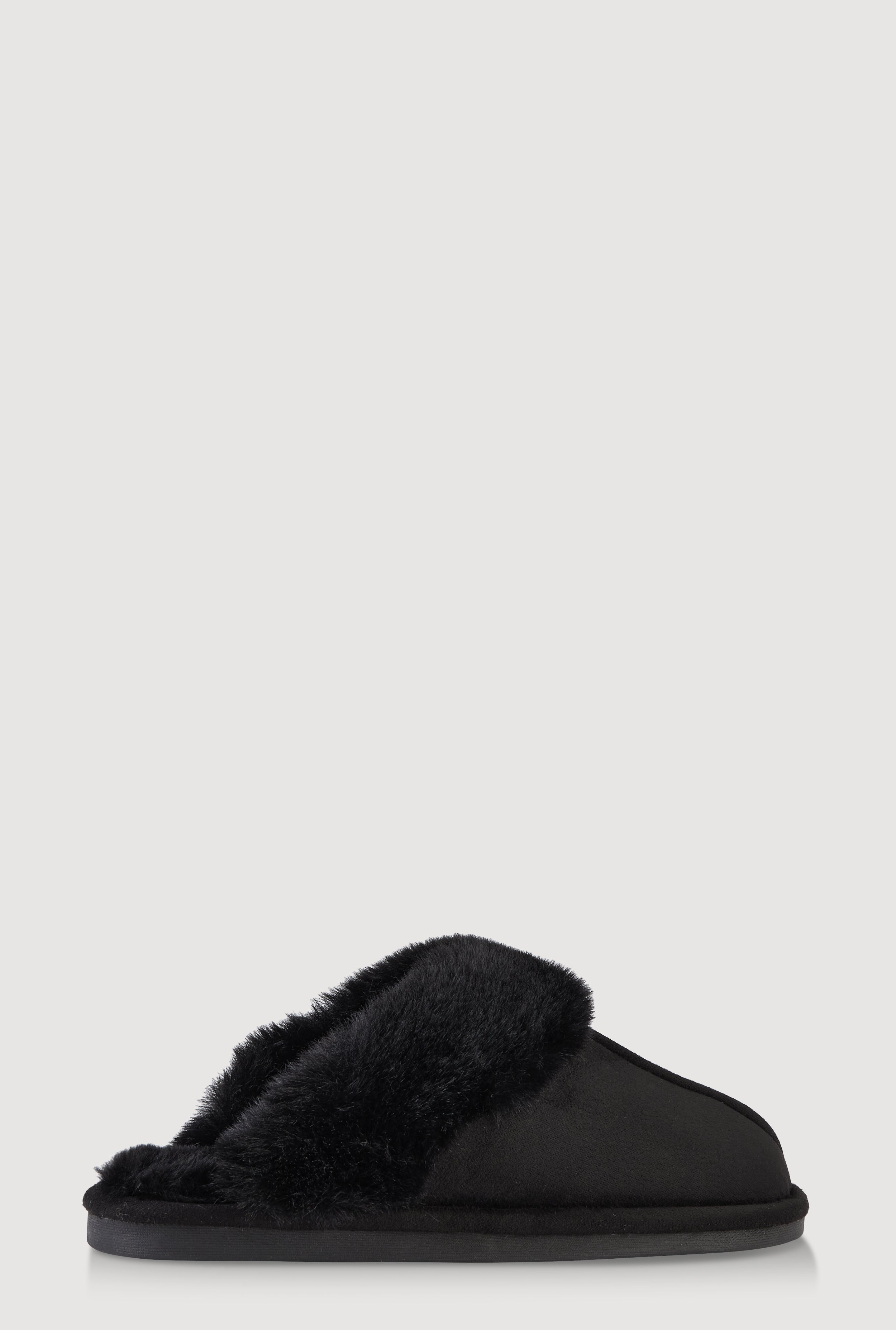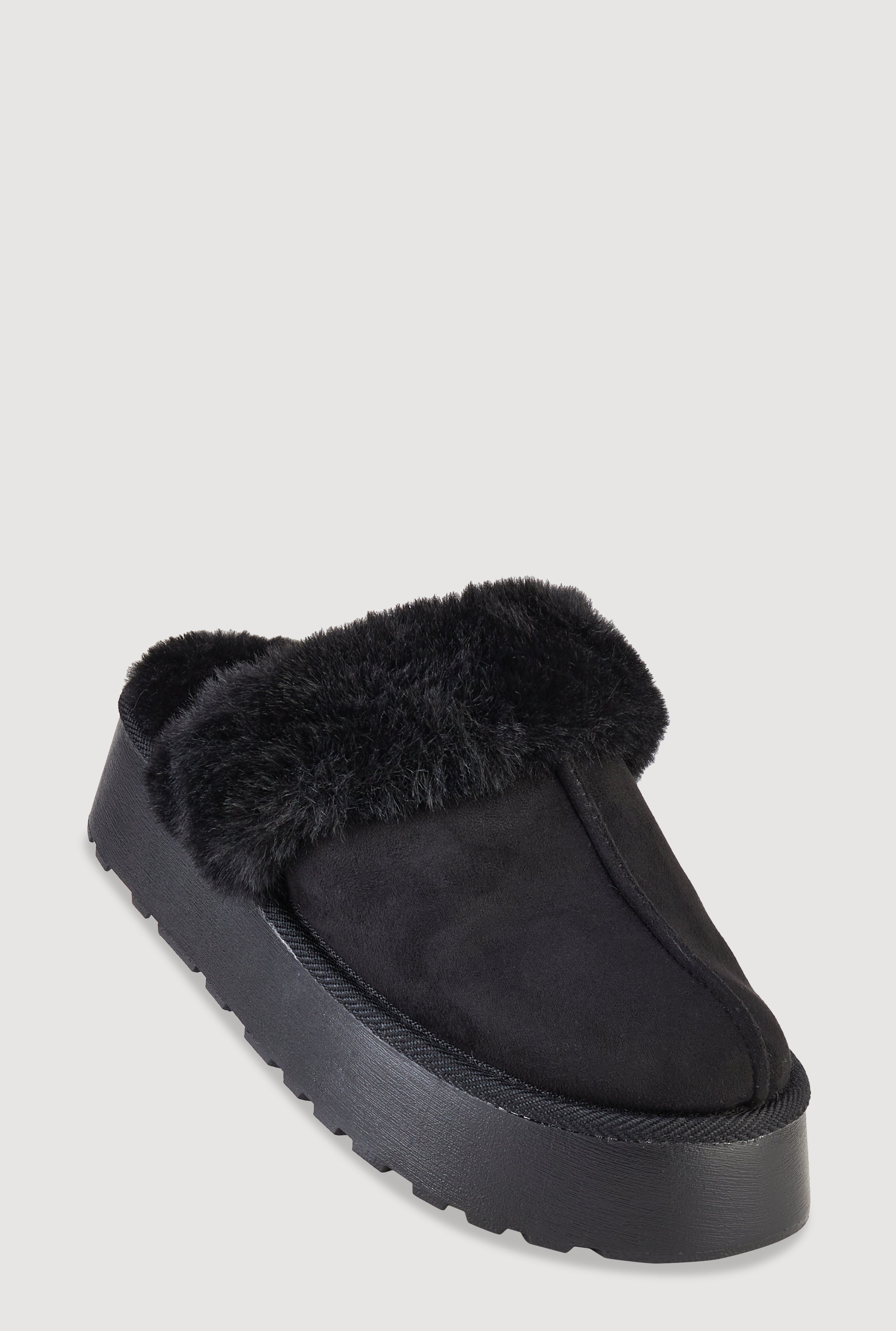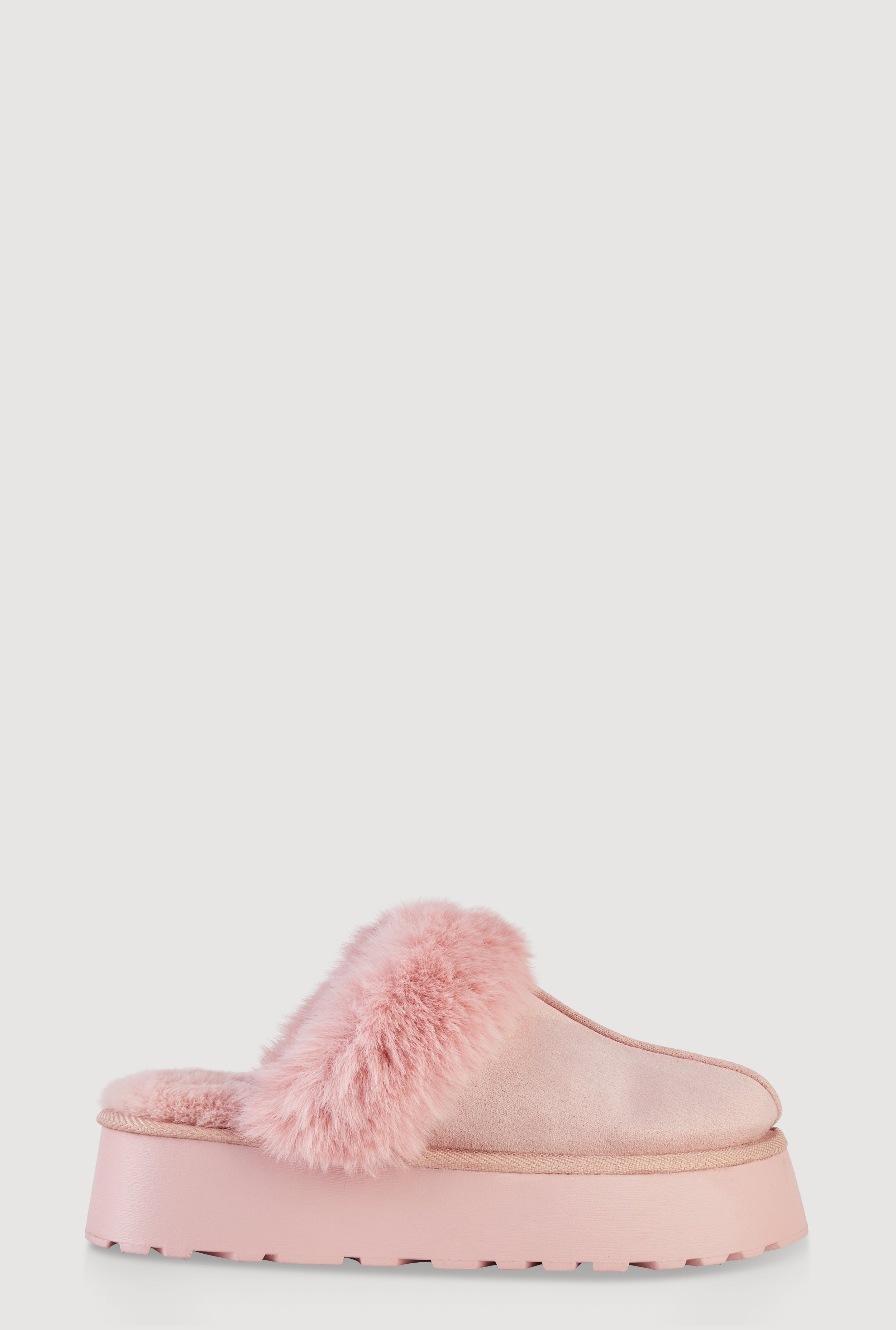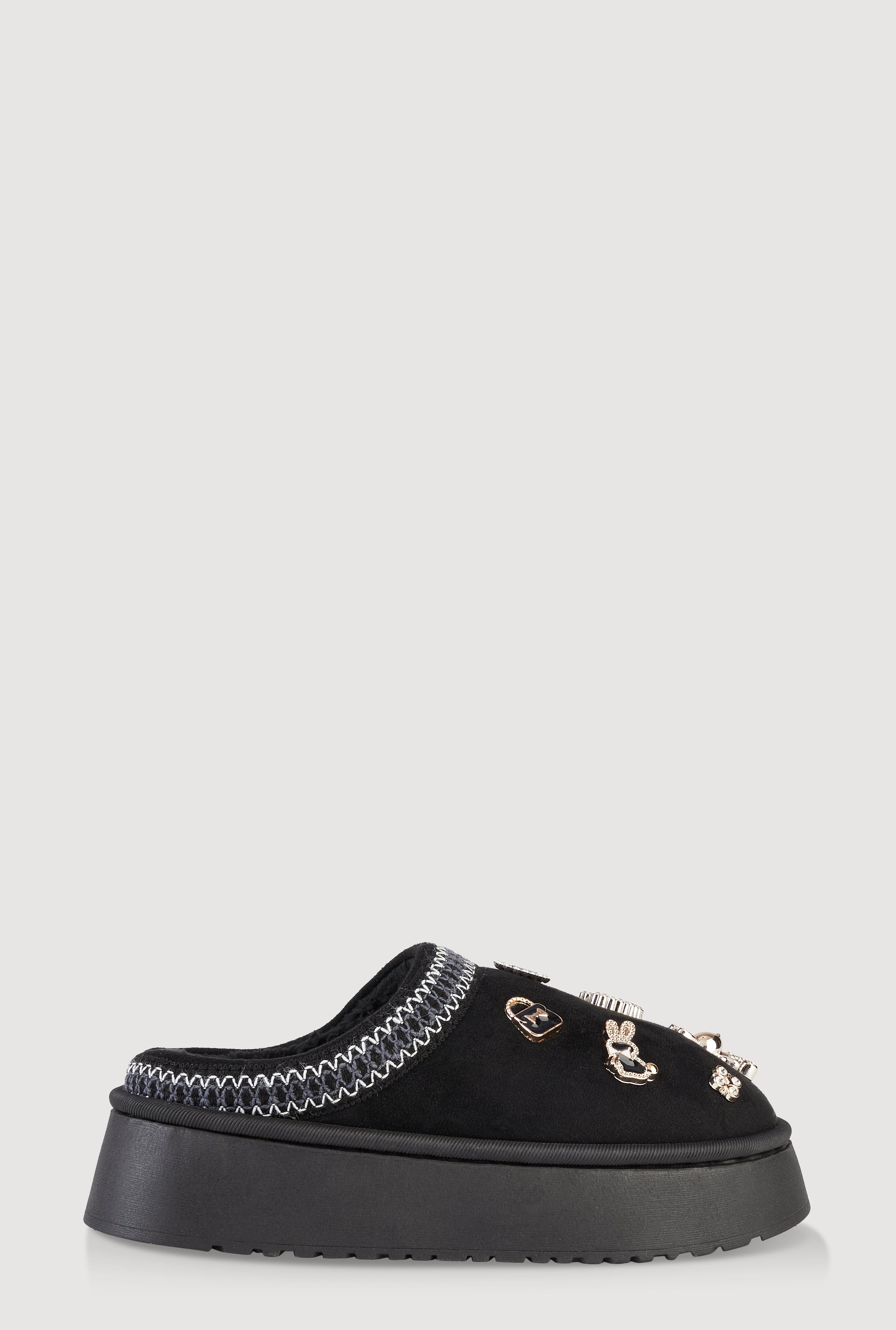 Faux Fur Lined Studded Charm Platform Mule Slippers