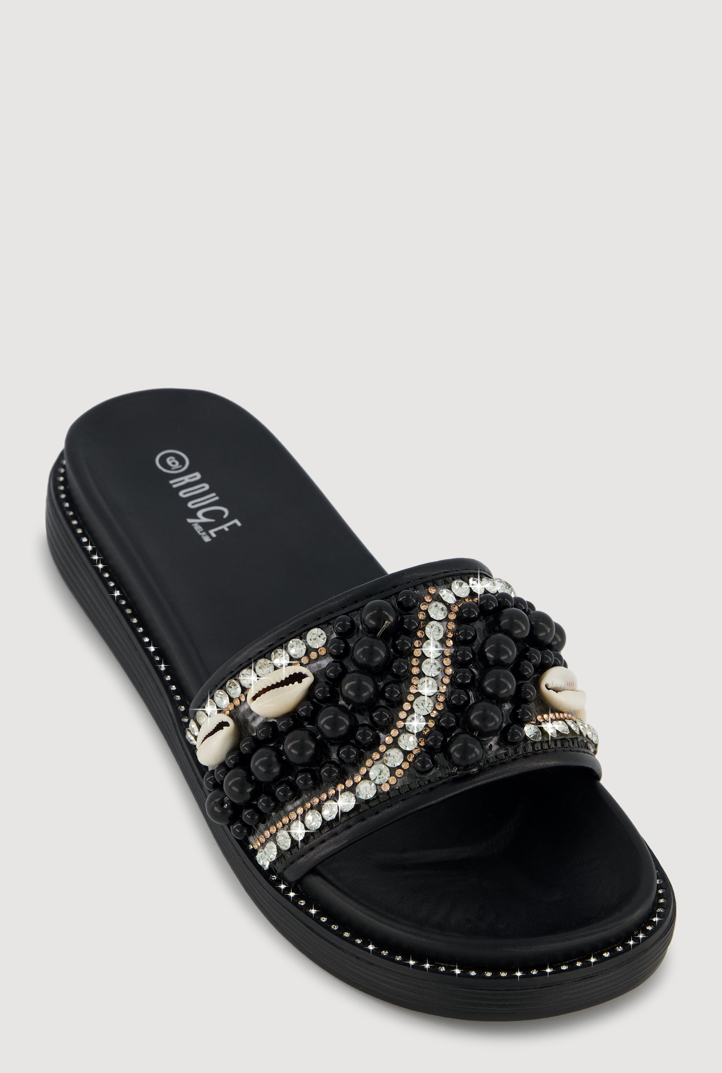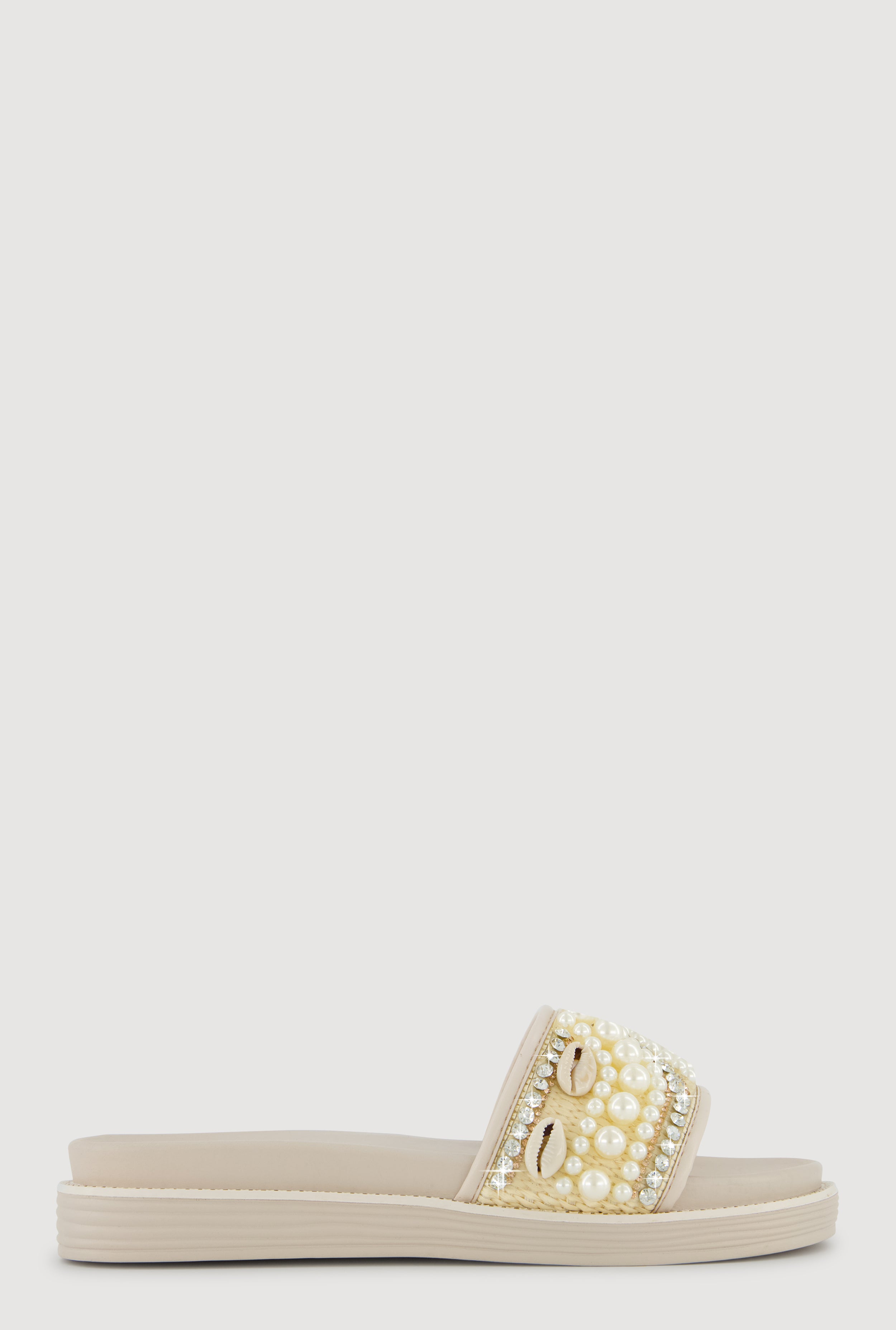 Rhinestone Faux Pearl Band Slide Sandals
