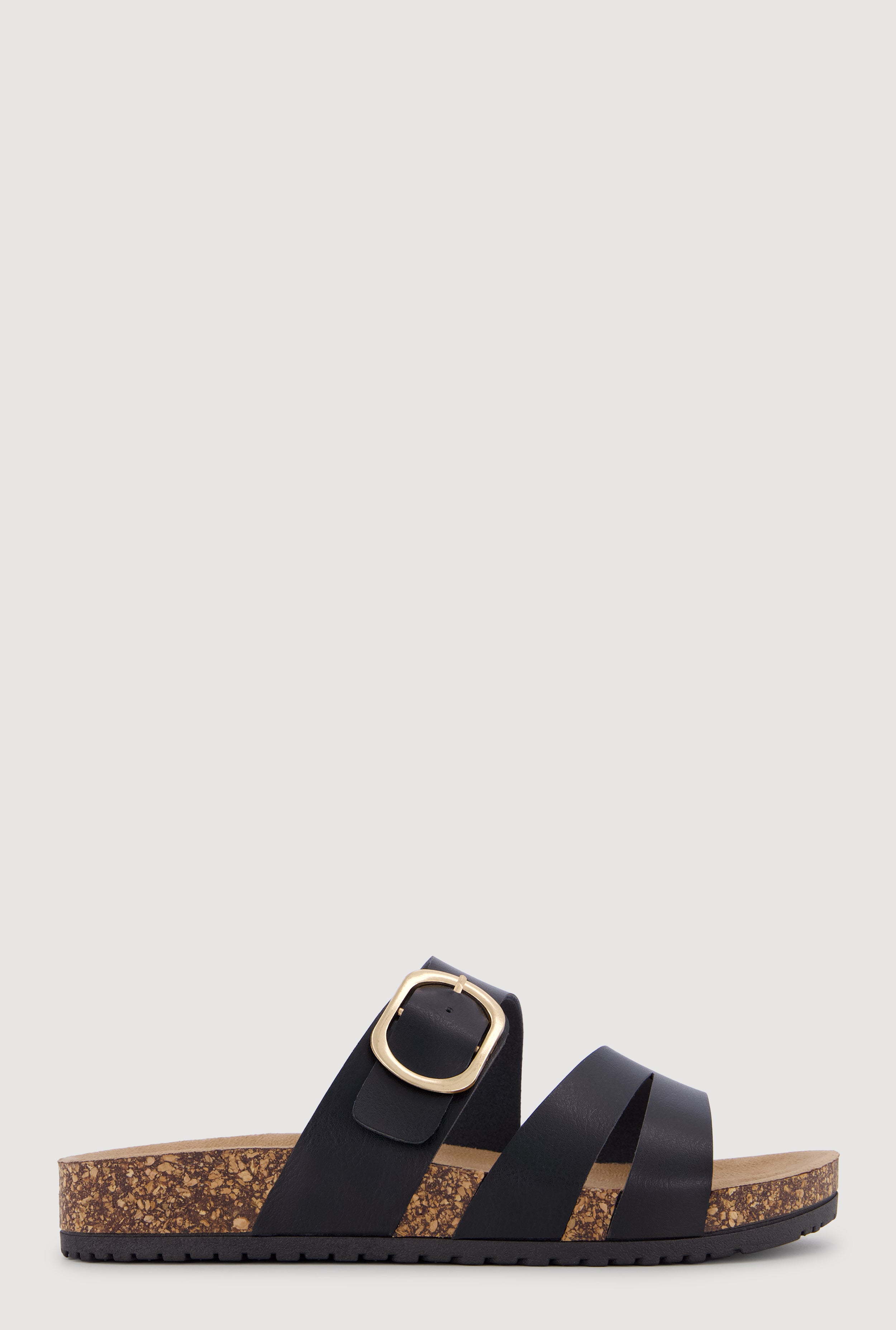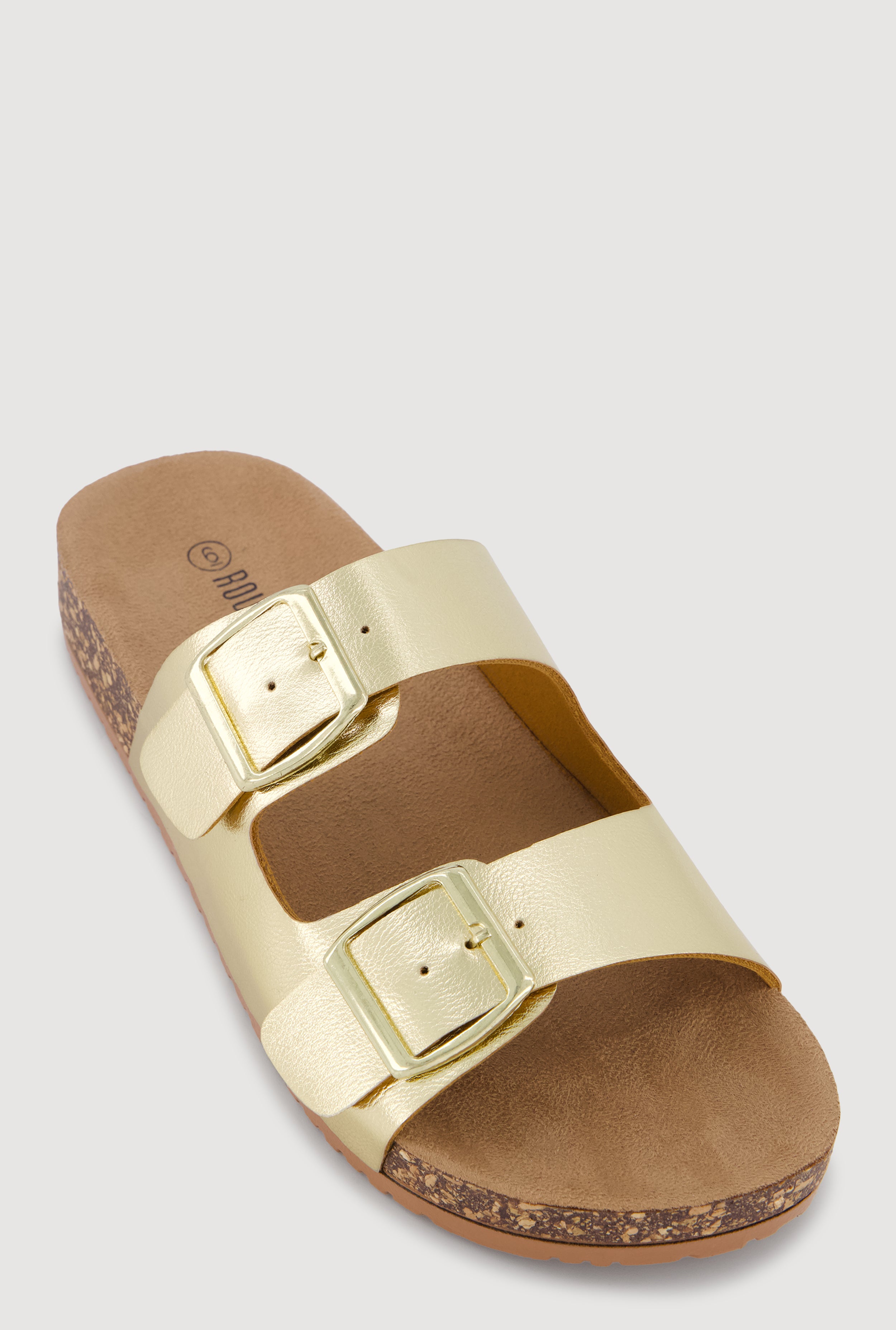Double Buckle Band Footbed Sandals