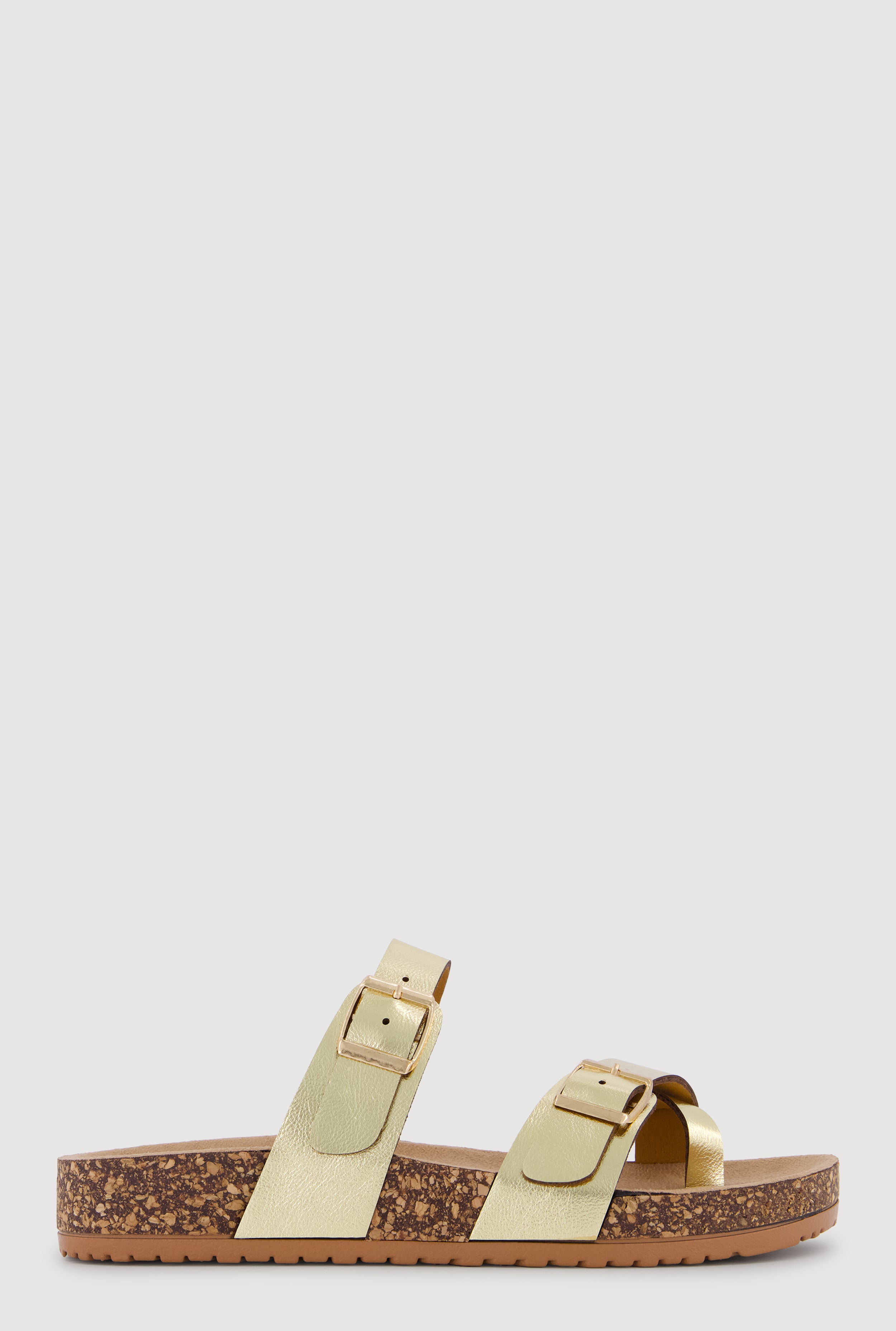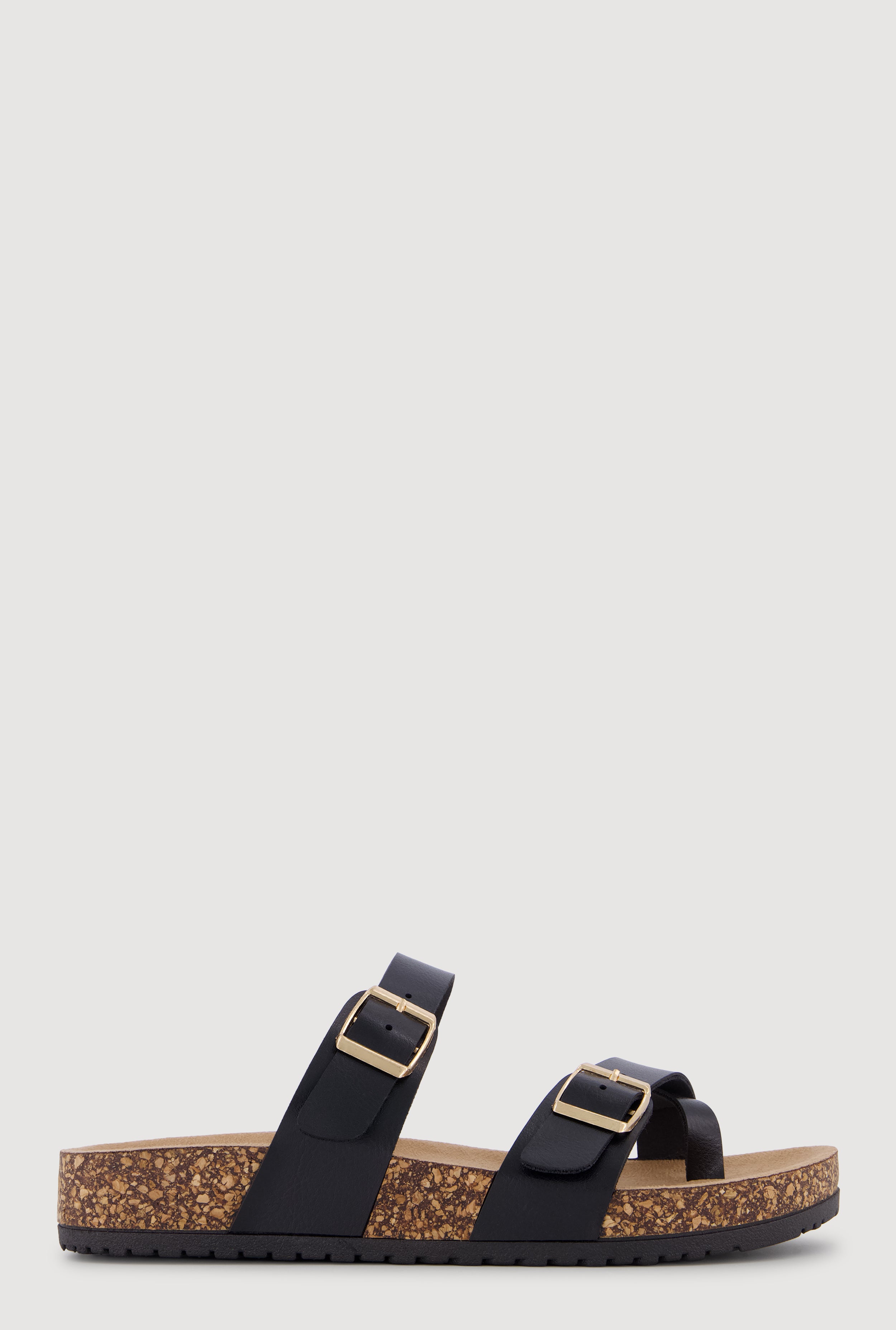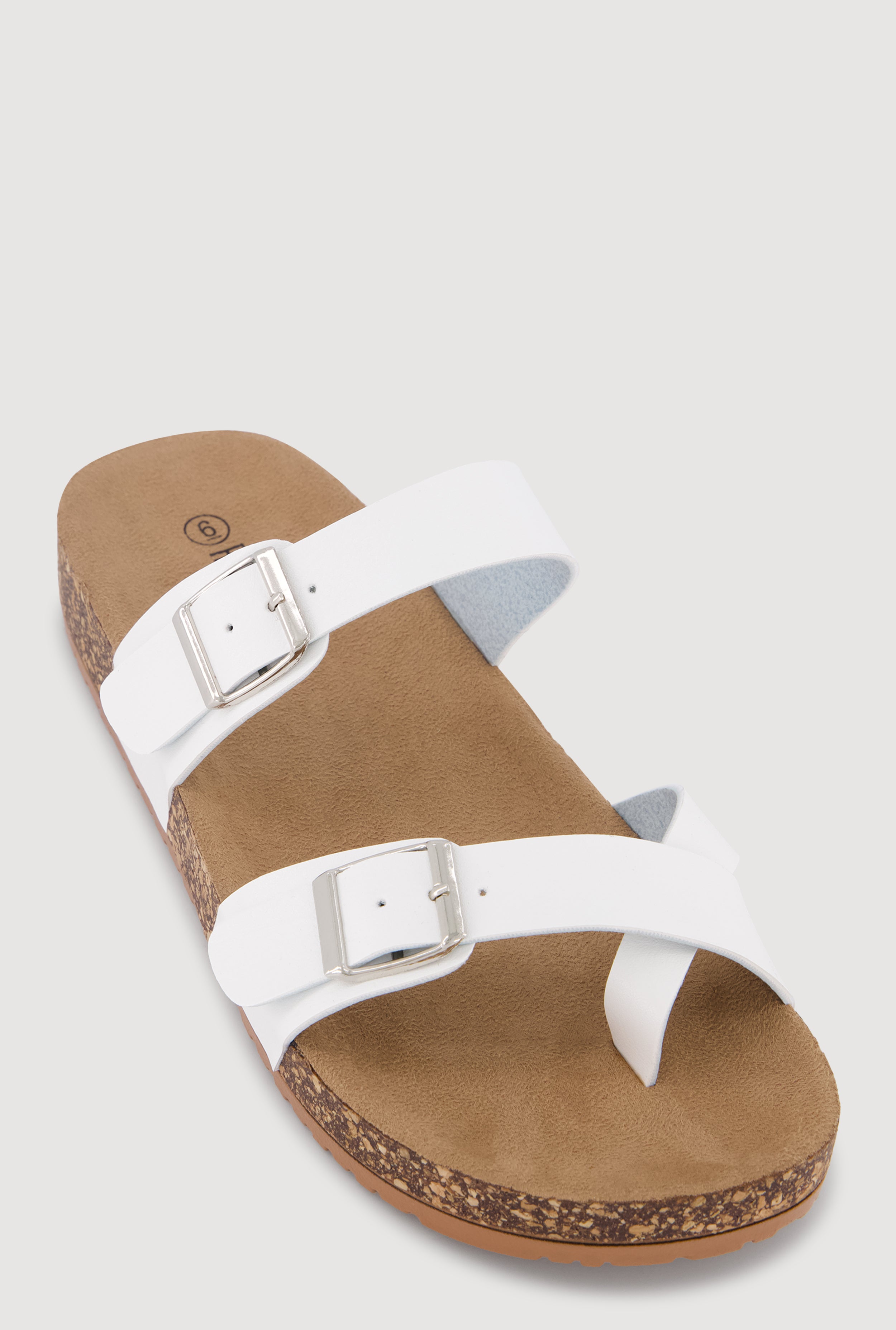 Double Buckle Toe Loop Footbed Sandals