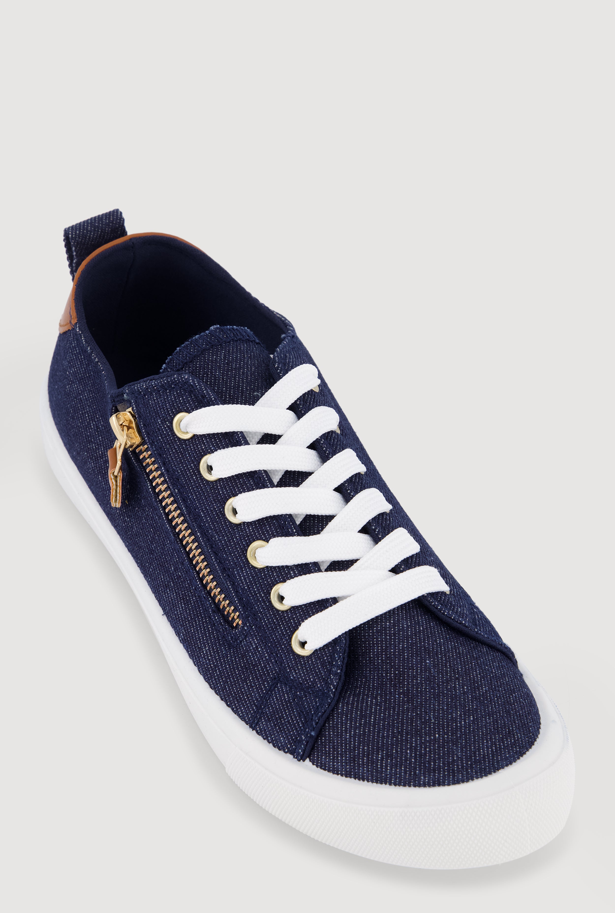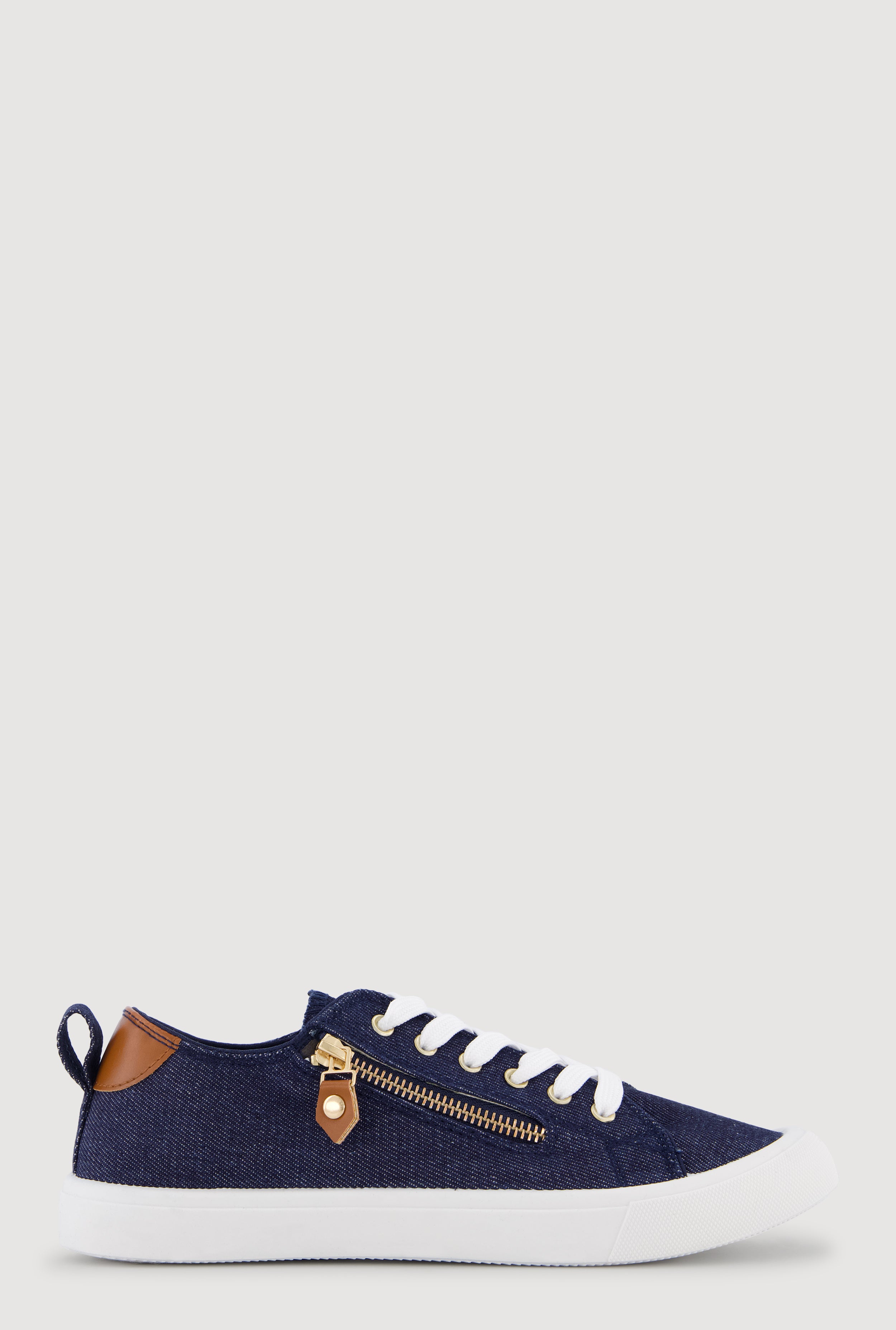 Zipper Detail Lace Up Low Top Sneakers