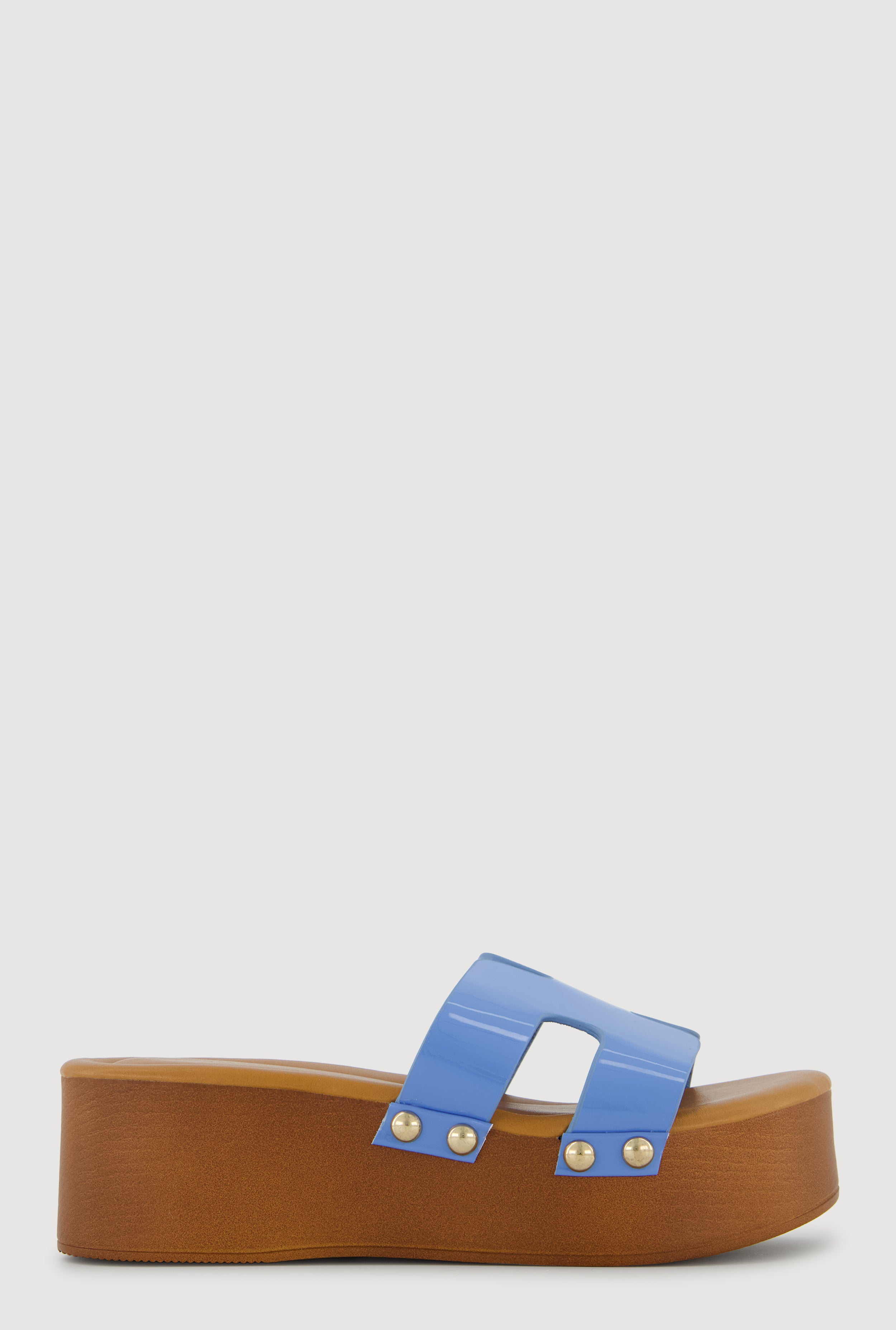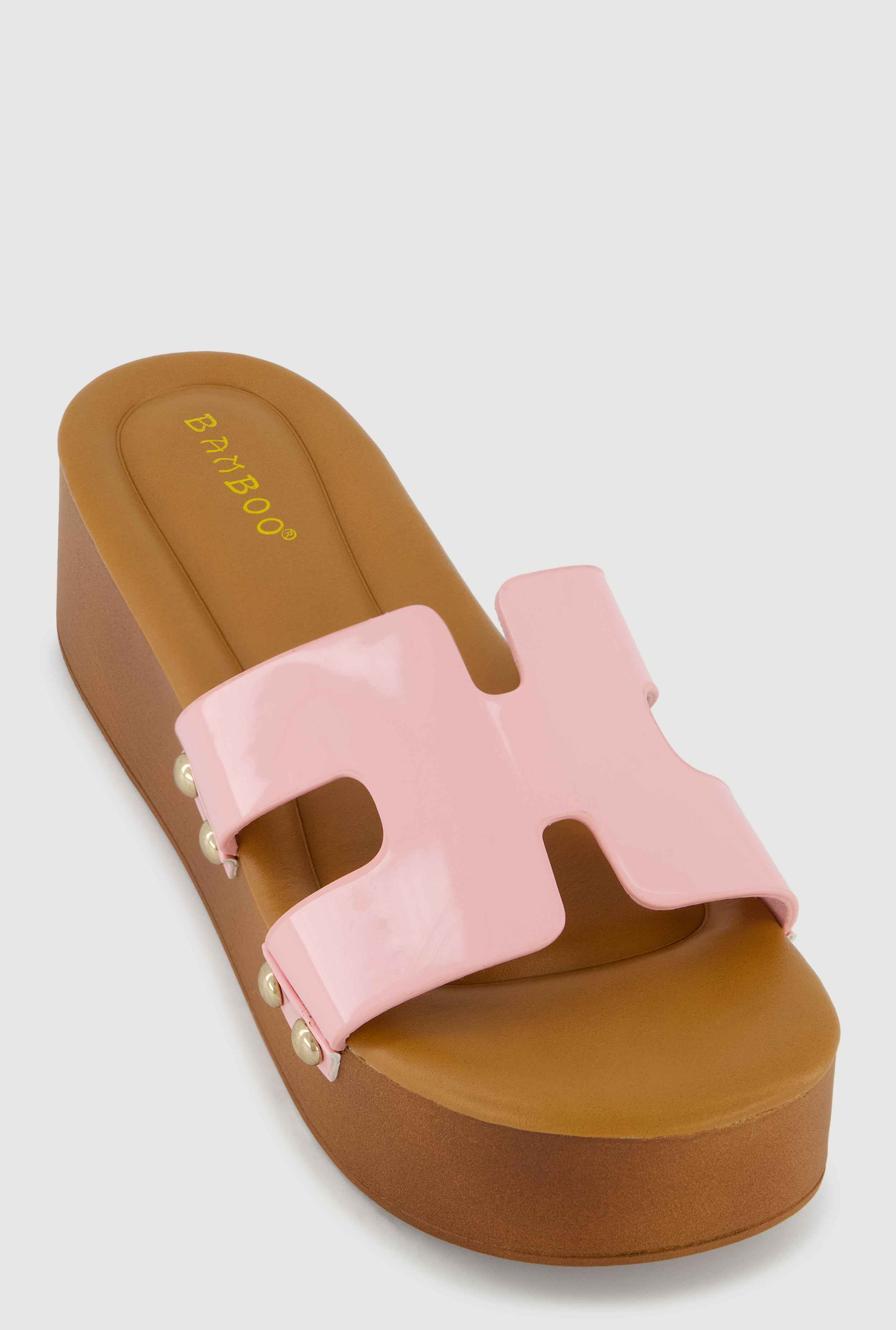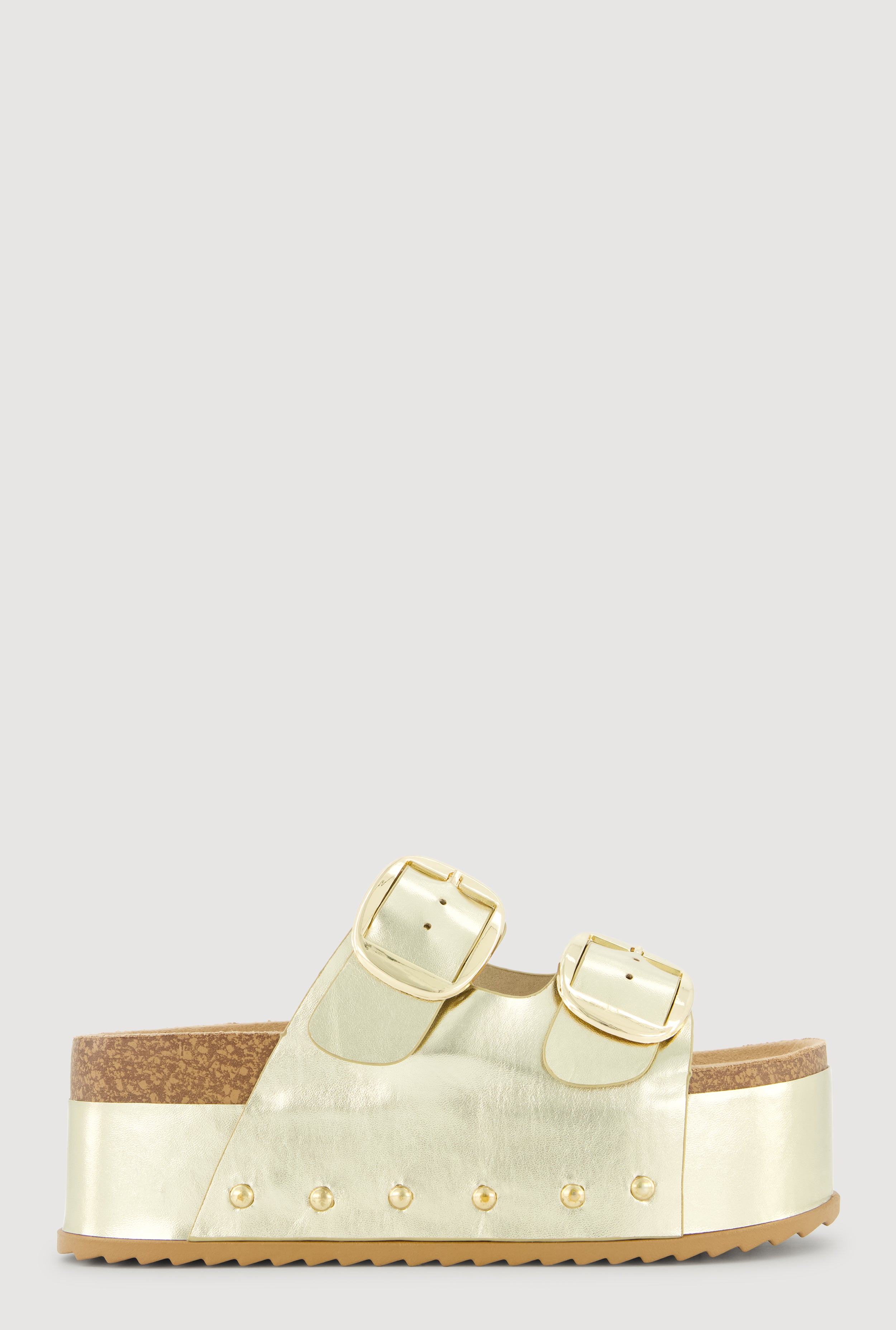 Metallic Studded Trim Open Toe Platform Sandals