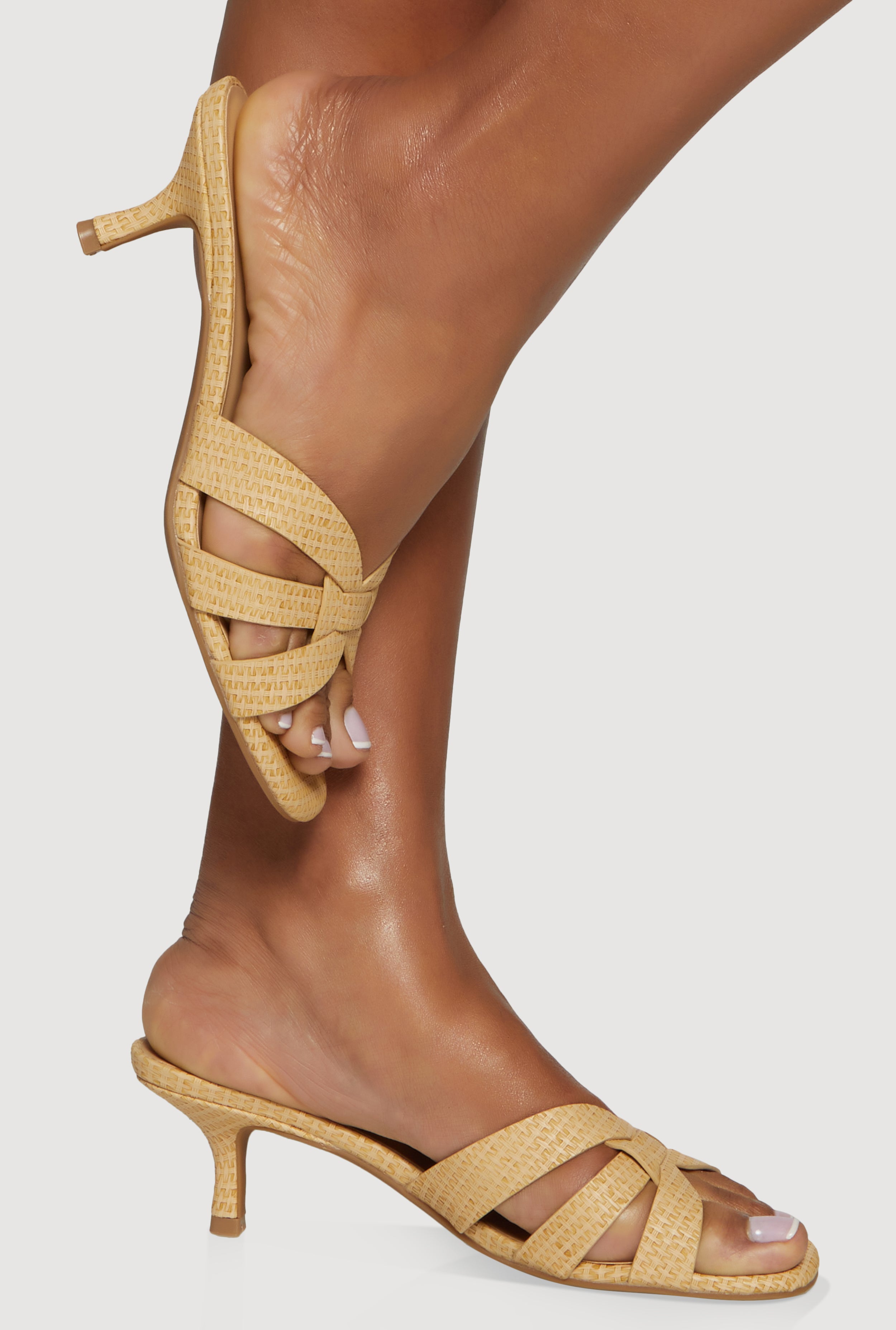Woven Band Open Toe Mid Heel Sandals