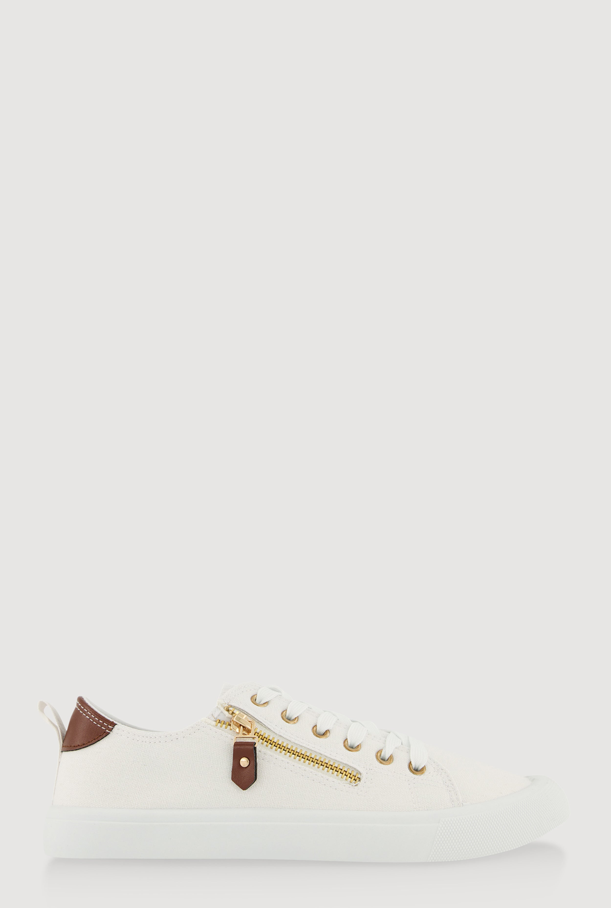Zipper Detail Lace Up Low Top Sneakers