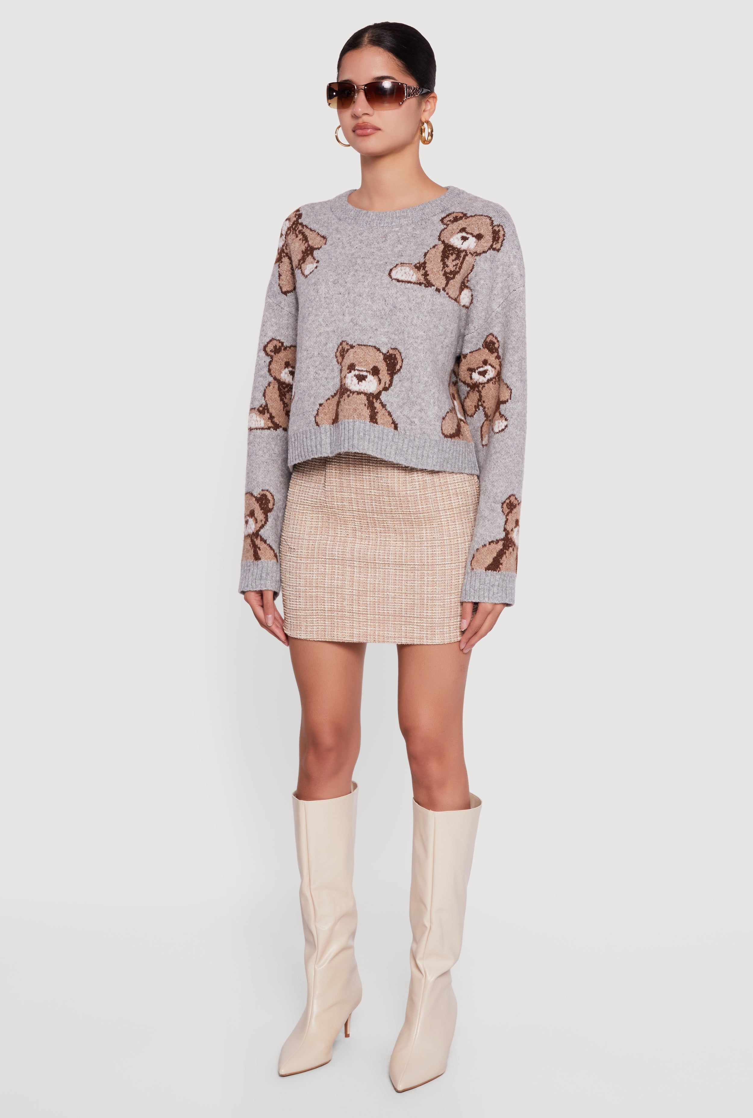 Get cozy and cute with this Brushed Knit Teddy Bear Print Long Sleeve Crew Neck Sweater. Featuring a classic crew neck and long sleeves, it’s perfect for your casual days when you want to stay warm without sacrificing style. The soft brushed knit fabric feels like a hug, while the playful teddy bear print adds a fun, youthful vibe that’s sure to turn heads. Whether you’re lounging at home or out with friends, this sweater combines comfort and charm effortlessly.