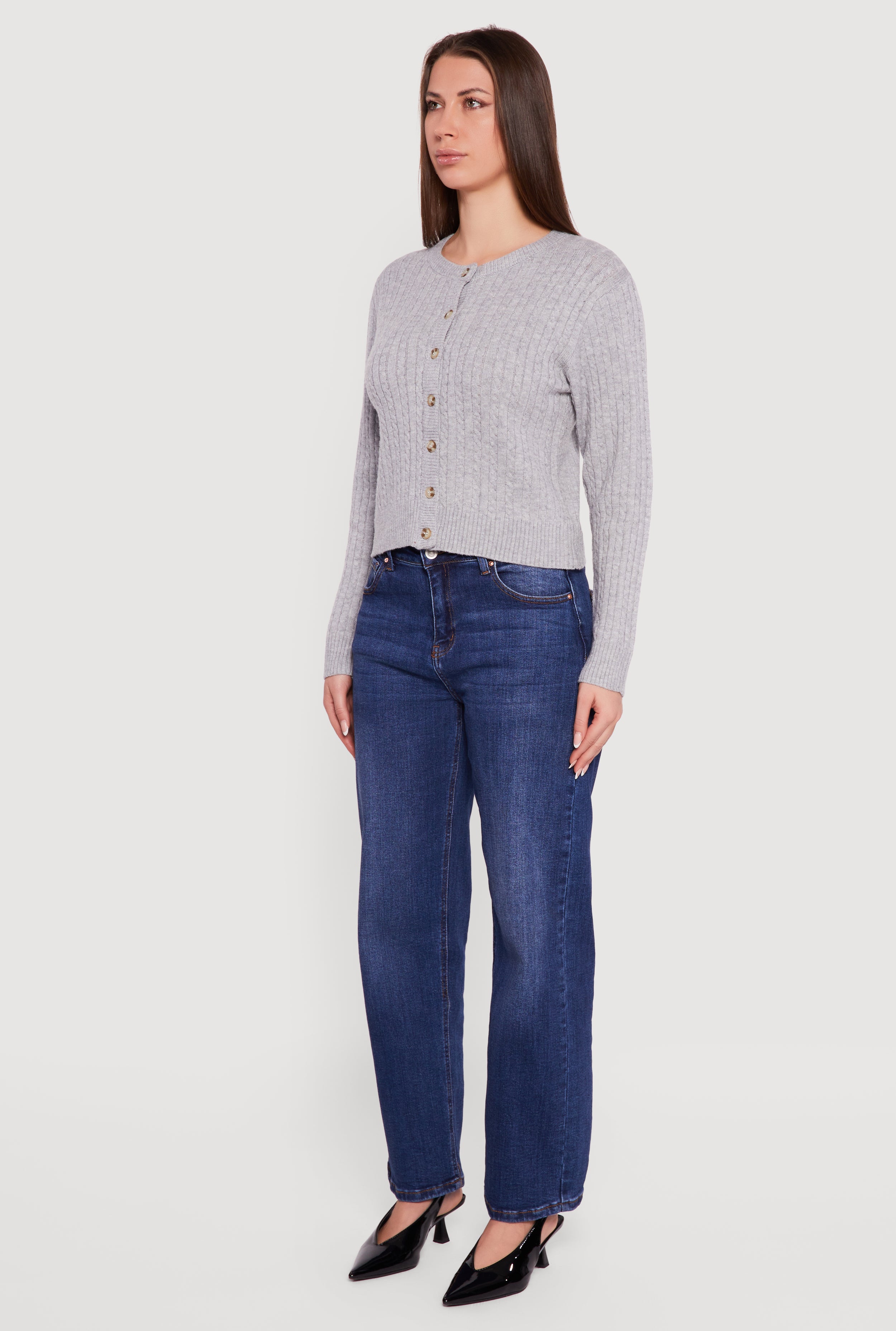Stay cozy and cute with this Cable Knit Button Front Cardigan. Featuring a timeless classic fit and a flattering crew neck, this long-sleeve knit is perfect for layering or wearing on its own. The button front adds a playful touch while keeping things easy and breezy. Whether you're dressing up or down, this casual cardigan is your new go-to for effortless style and comfort.