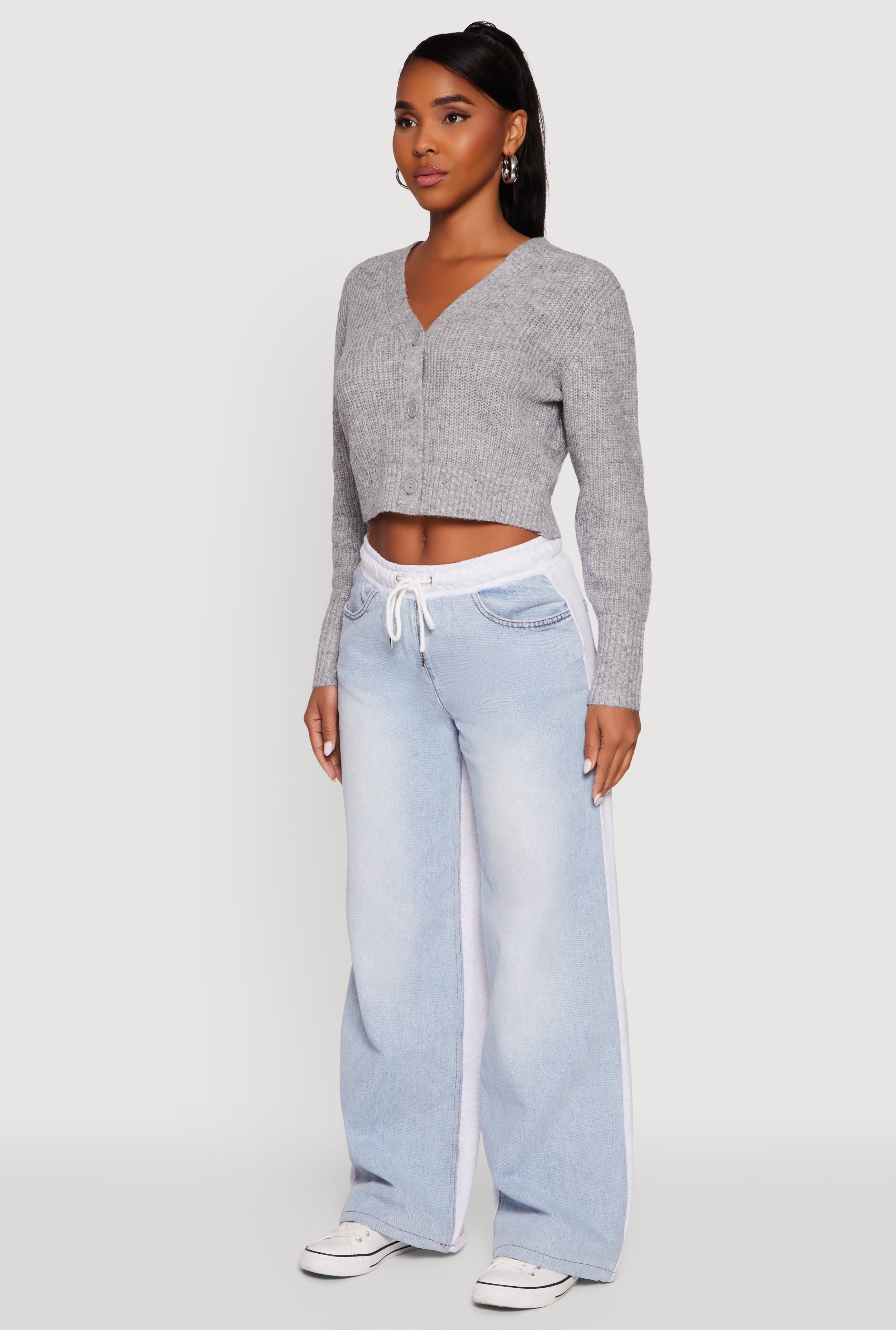 Step up your casual game with the Classic Fit Button Front Cropped Cardigan from Ambiance. This timeless V-neck cardigan is designed with a classic fit that flatters every shape and a cropped length that pairs perfectly with high-waisted jeans or skirts. Whether you're heading back to school or just want a cozy layer that looks effortlessly cool, this solid-colored staple brings both comfort and style to your everyday wardrobe.