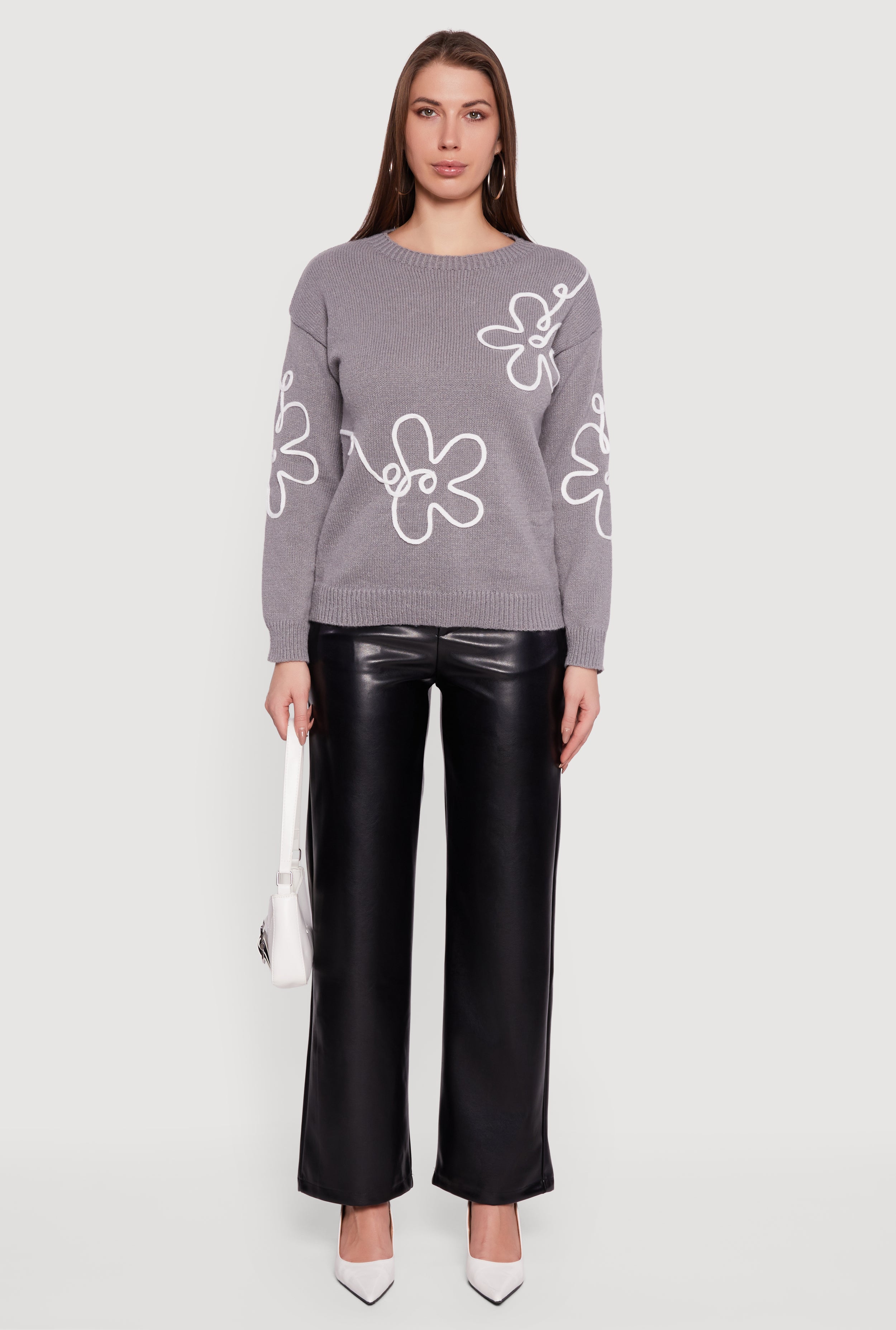 Step up your cozy game with this Drop Shoulder Floral Embroidered Sweater. Perfect for casual days when you want to feel effortlessly stylish and comfy. The classic fit and crew neck create a timeless silhouette, while the intricate floral embroidery adds a fresh, feminine touch that stands out. Whether you’re chilling at home or out with friends, this sweater is your go-to for easy, everyday vibes.