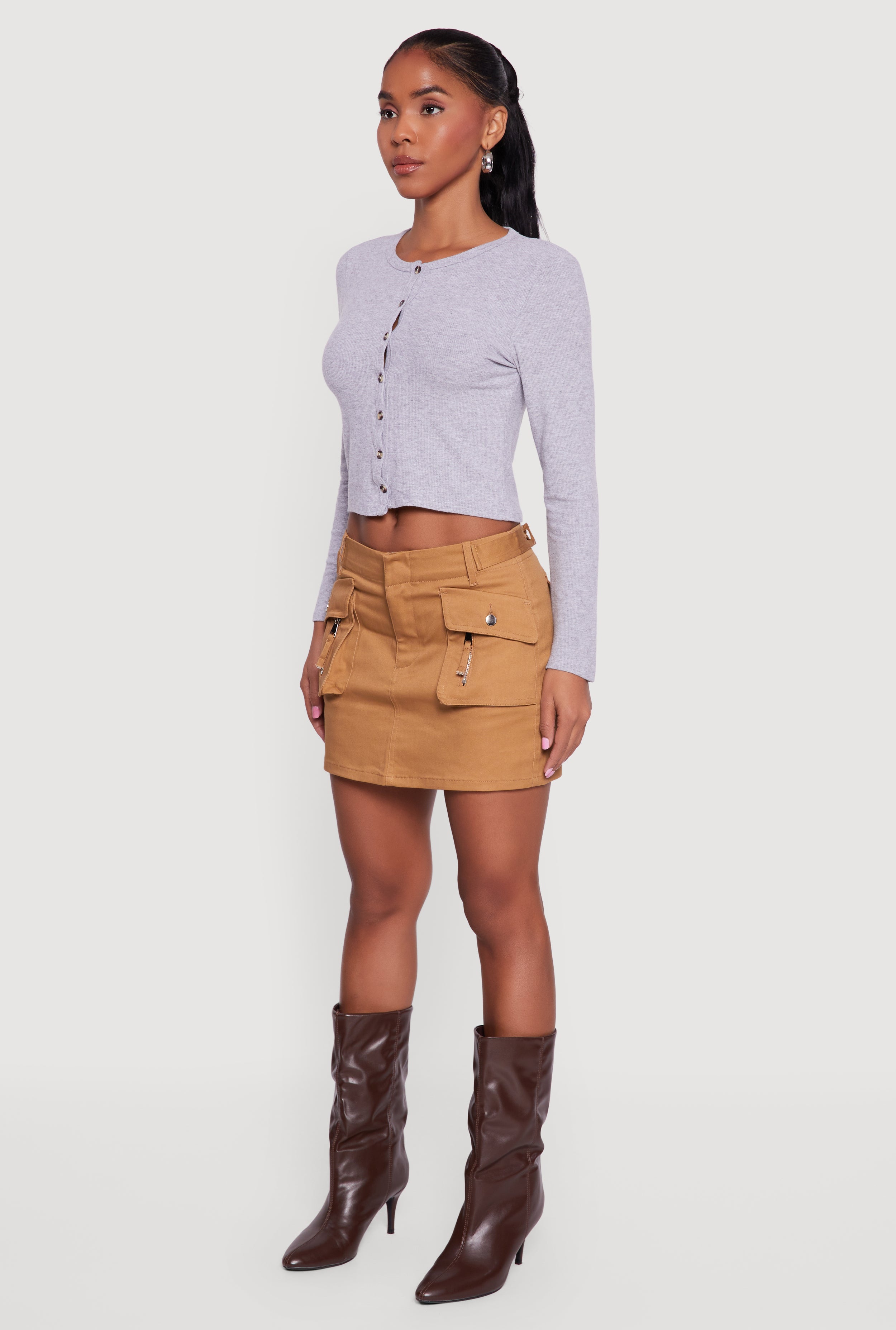 Step up your casual game with this Button Front Long Sleeve Crop Top from Ambiance. Designed with a classic fit and crafted from soft brushed and ribbed knit fabrics, it offers comfort and style in one effortlessly cool package. The solid color and crew neck make it a versatile piece that pairs perfectly with high-waisted jeans or skirts for that easygoing, trendy vibe you love.