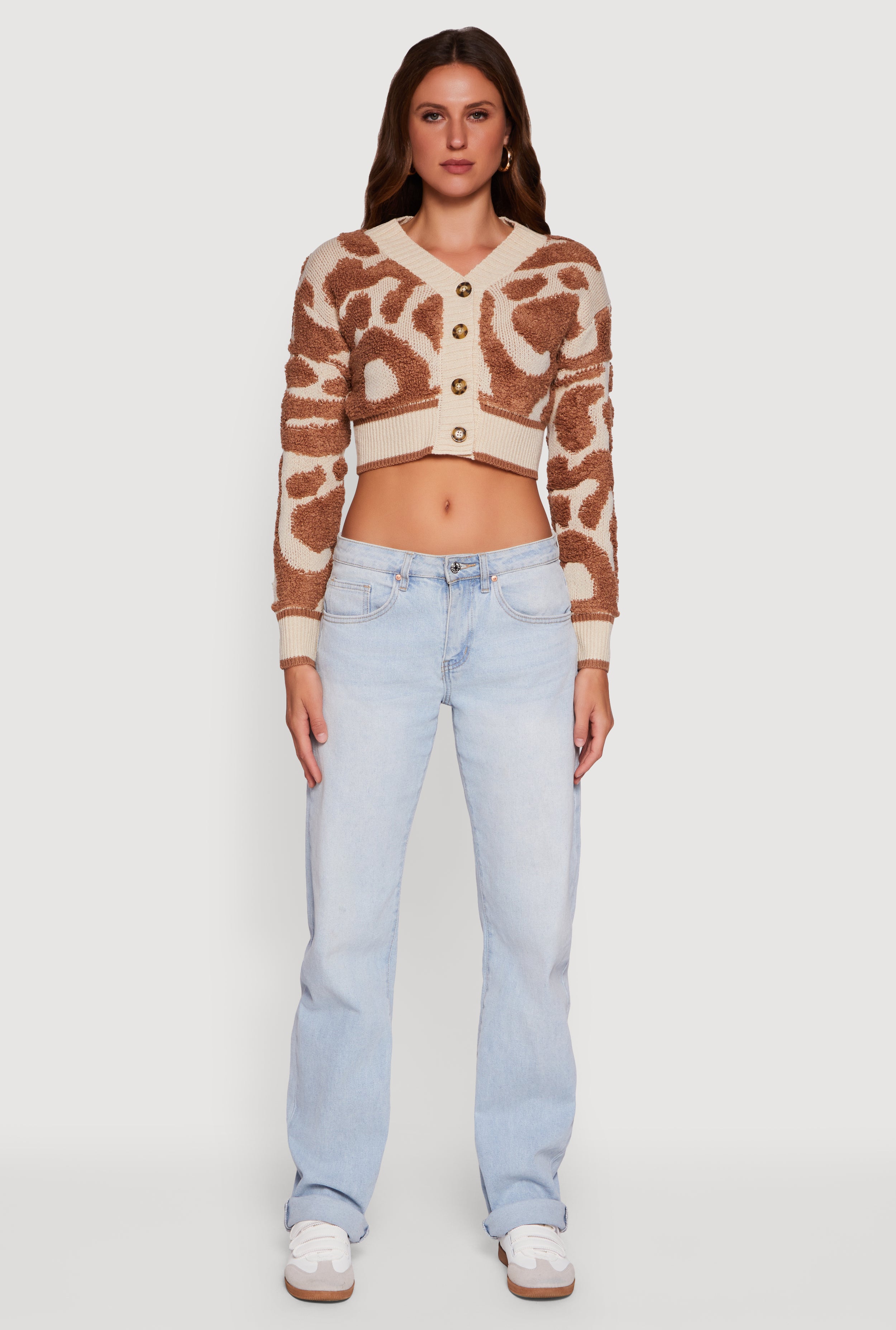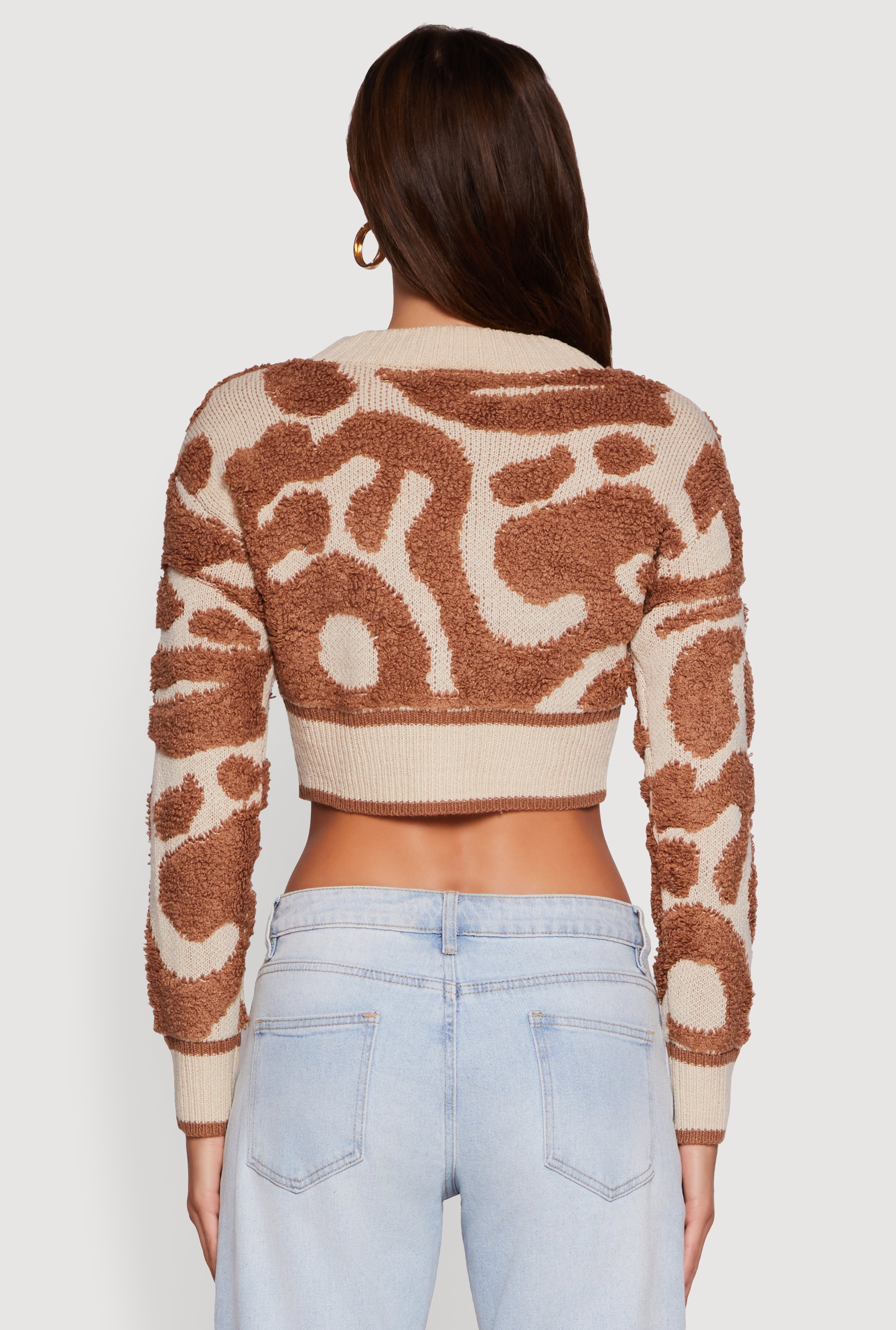 Swirl Print Boucle Cropped Button Front Cardigan
