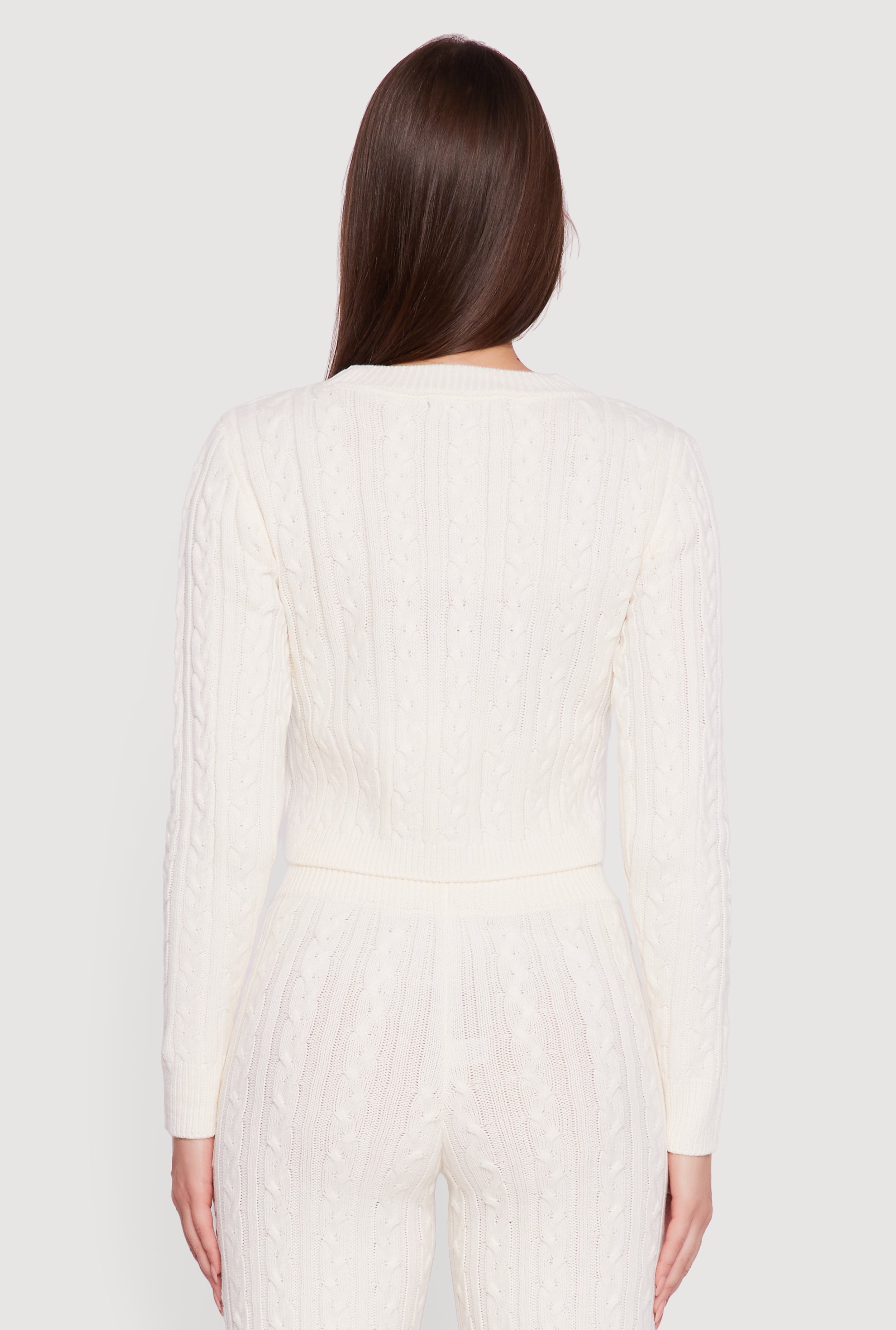 Stay cozy and cute in this Cropped Cable Knit Long Sleeve Sweater designed to elevate your casual wardrobe. Featuring a timeless classic fit and a flattering crew neck, this solid cable knit sweater brings a perfect blend of comfort and style. Its cropped length adds a trendy twist that pairs effortlessly with high-waisted jeans or skirts for an easygoing, chic look that’s ideal for everyday wear.