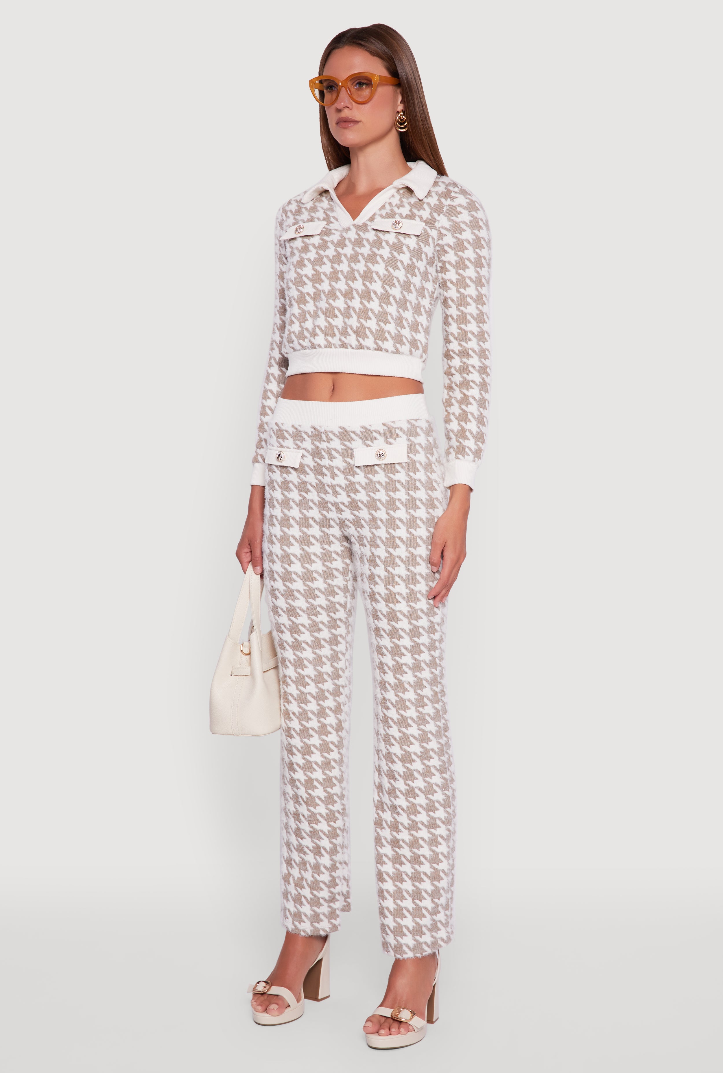 Step up your style game with this Houndstooth Cropped Sweater featuring a chic contrast trim collar. Perfect for those who want to blend classic vibes with a fresh twist, this sweater is your new go-to for casual days or office-ready looks. The timeless houndstooth pattern adds a touch of sophistication, while the cropped fit keeps things modern and fun. Bonus points for faux pockets that add style without the bulk. Whether you're heading back to school or just want to look effortlessly cool, this sweater has got you covered.