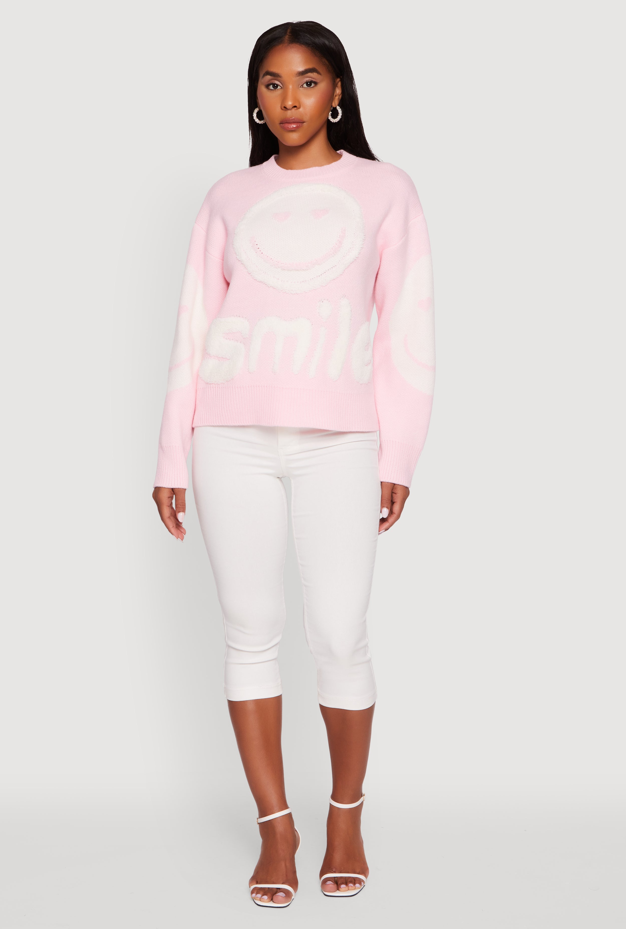 Brighten up your cozy days with the Tufted Knit Smiley Graphic Pullover Sweater. This relaxed fit sweater features a cheerful smiley graphic that instantly lifts your mood and your style. Made from soft chenille, it’s perfect for laid-back vibes whether you’re heading to class or chilling with friends. The crew neck and long sleeves keep it classic and comfy, making it your go-to for casual, effortless cool.