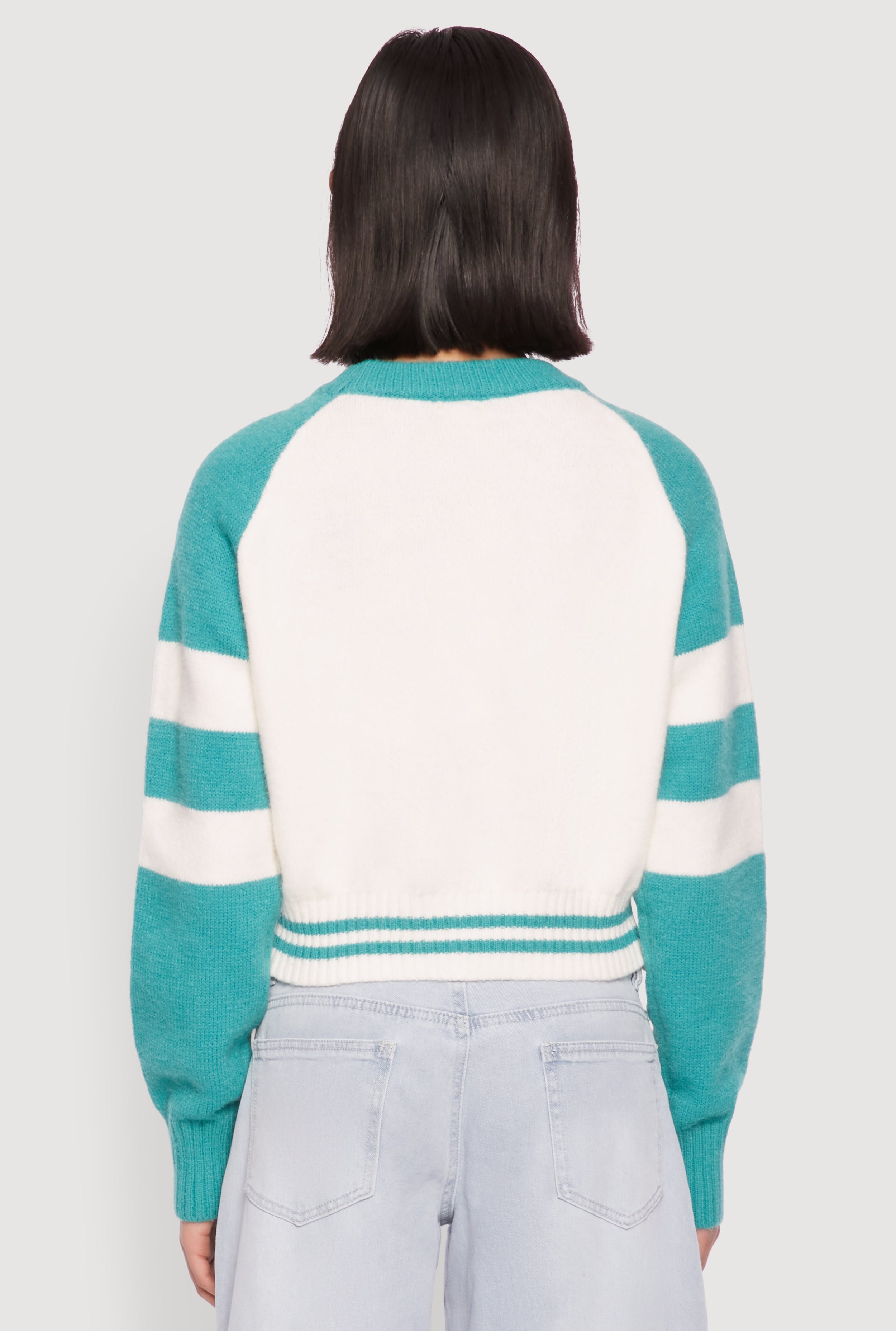- Bold varsity stripe detail adds a sporty, trendy touch