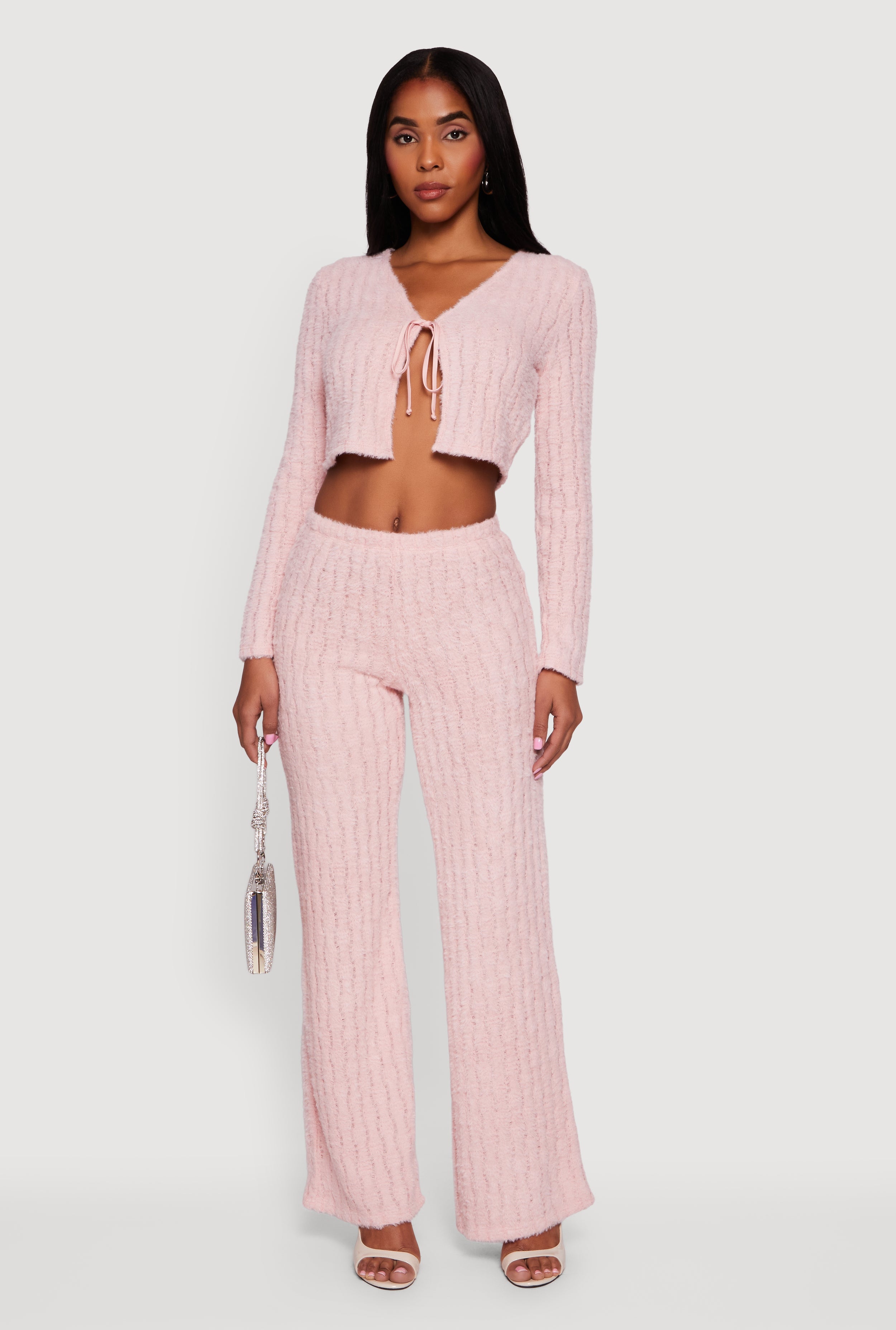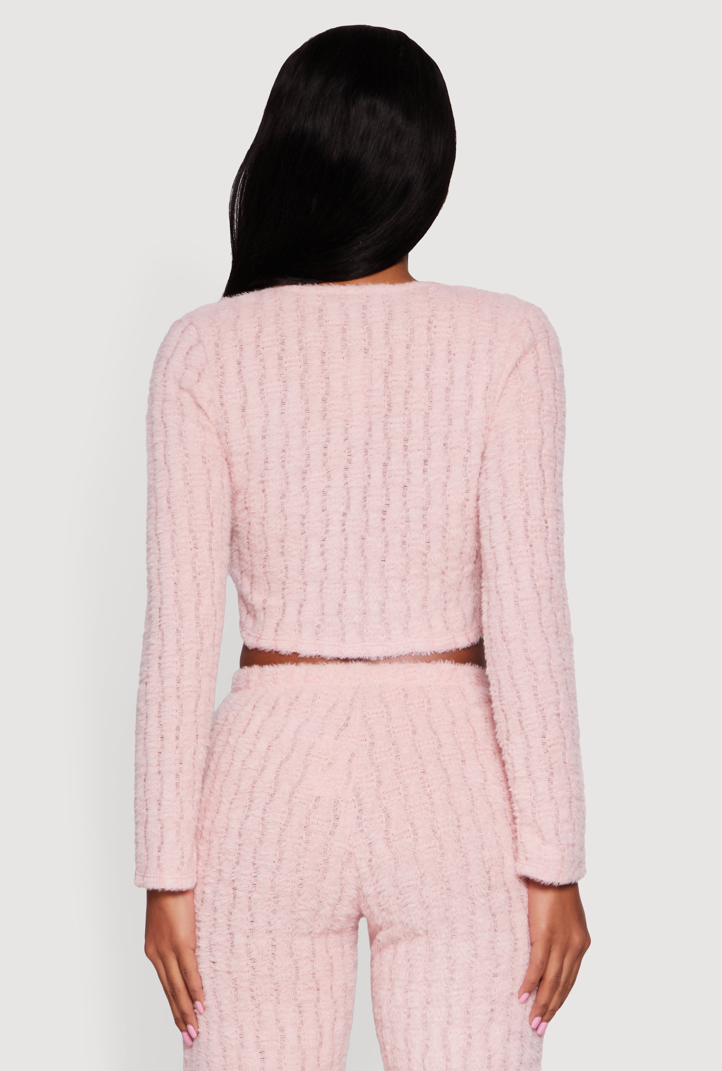 Step up your style game with this Eyelash Knit Tie Front Long Sleeve Crop Top. Crafted from soft eyelash knit fabric, it offers a cozy yet chic vibe that’s perfect for casual days or a night out with friends. The flattering V-neckline and tie-front detail add a playful touch, while the classic fit ensures comfort without sacrificing style. Pair it with high-waisted jeans or a skirt for an effortlessly cool look that’s totally on-trend.