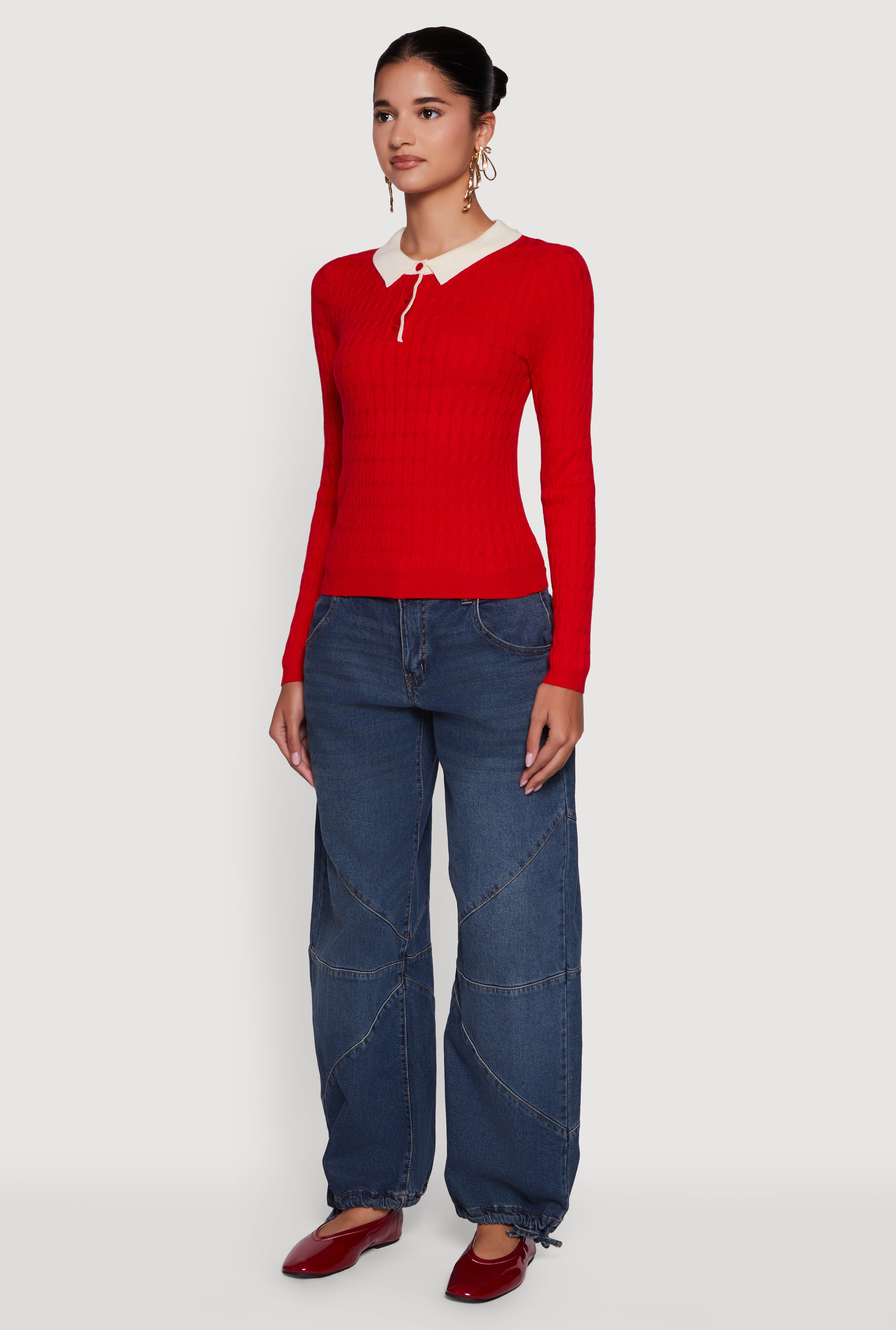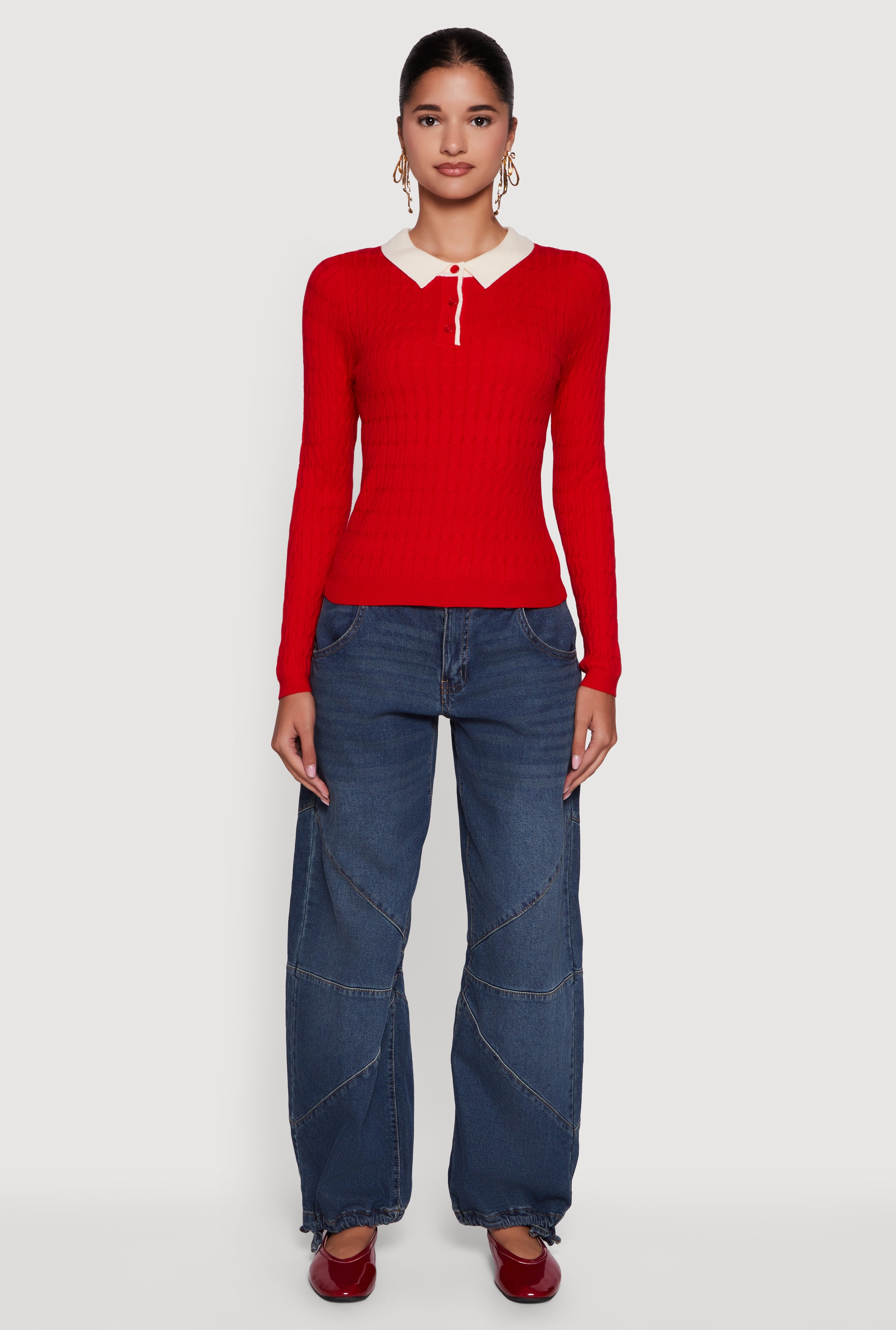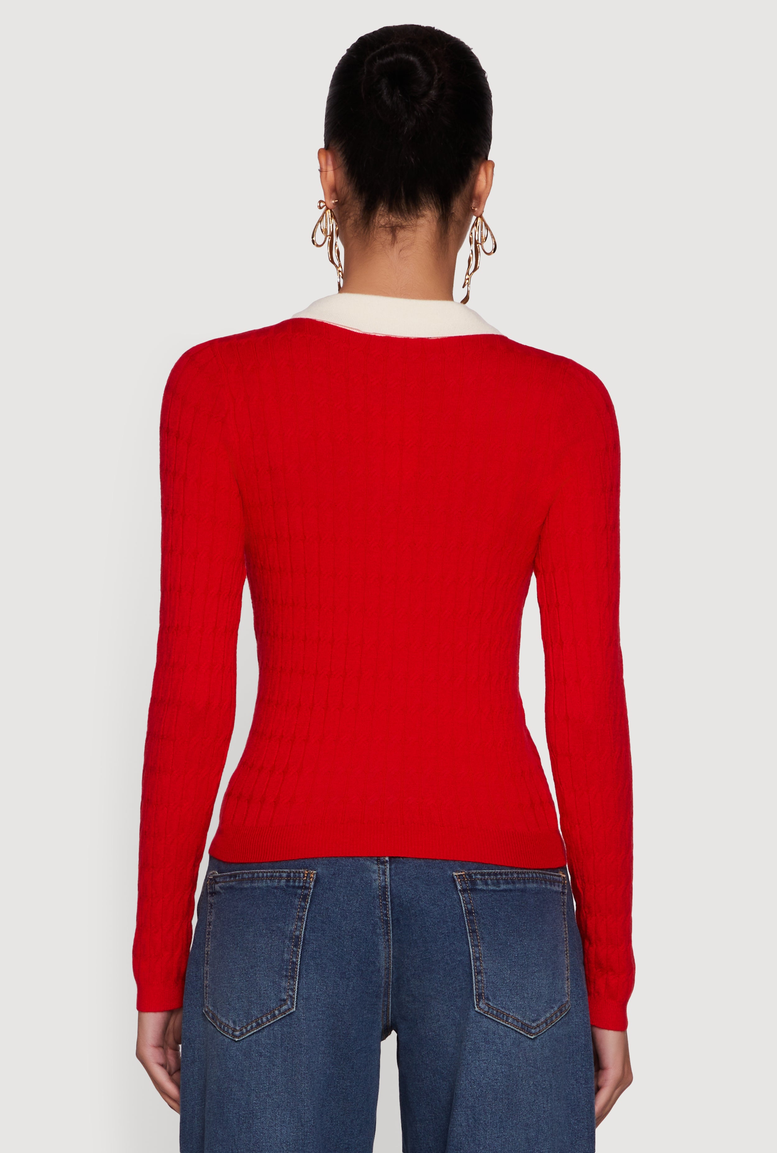 Step up your casual game with the Cable Knit Contrast Trim Polo Sweater. This classic fit sweater blends cozy cable knit texture with a sharp contrast trim polo collar for a look that’s effortlessly cool. Perfect for layering or rocking solo, it’s your new go-to for chill days and laid-back vibes. Stay comfy, look put together, and let your style do the talking.