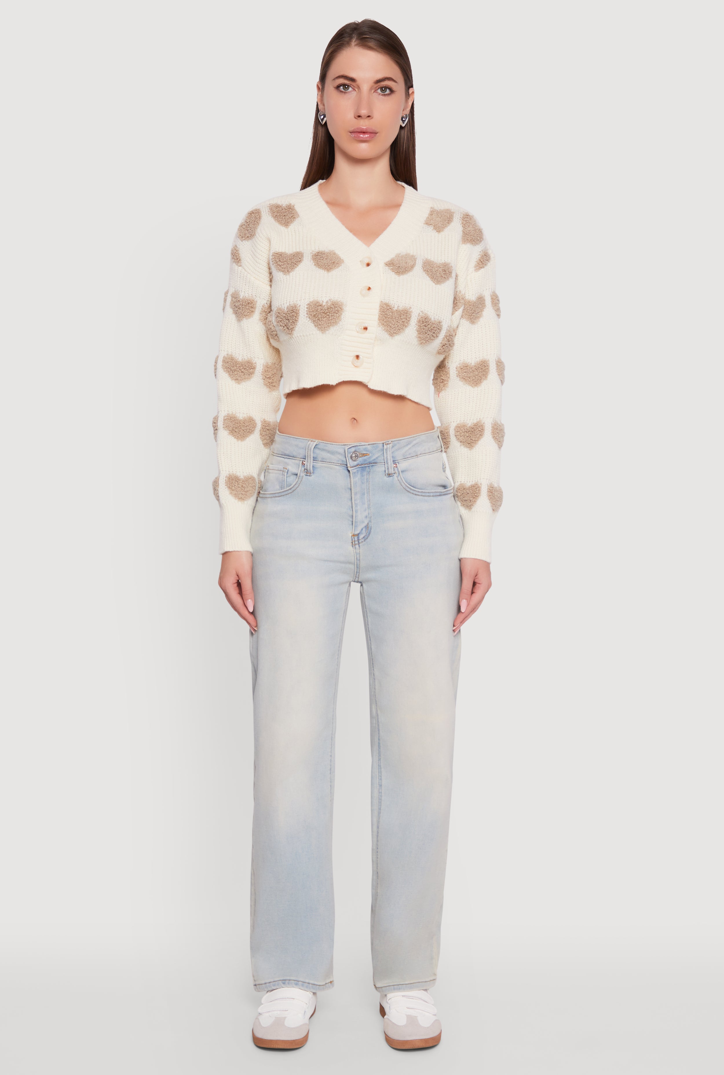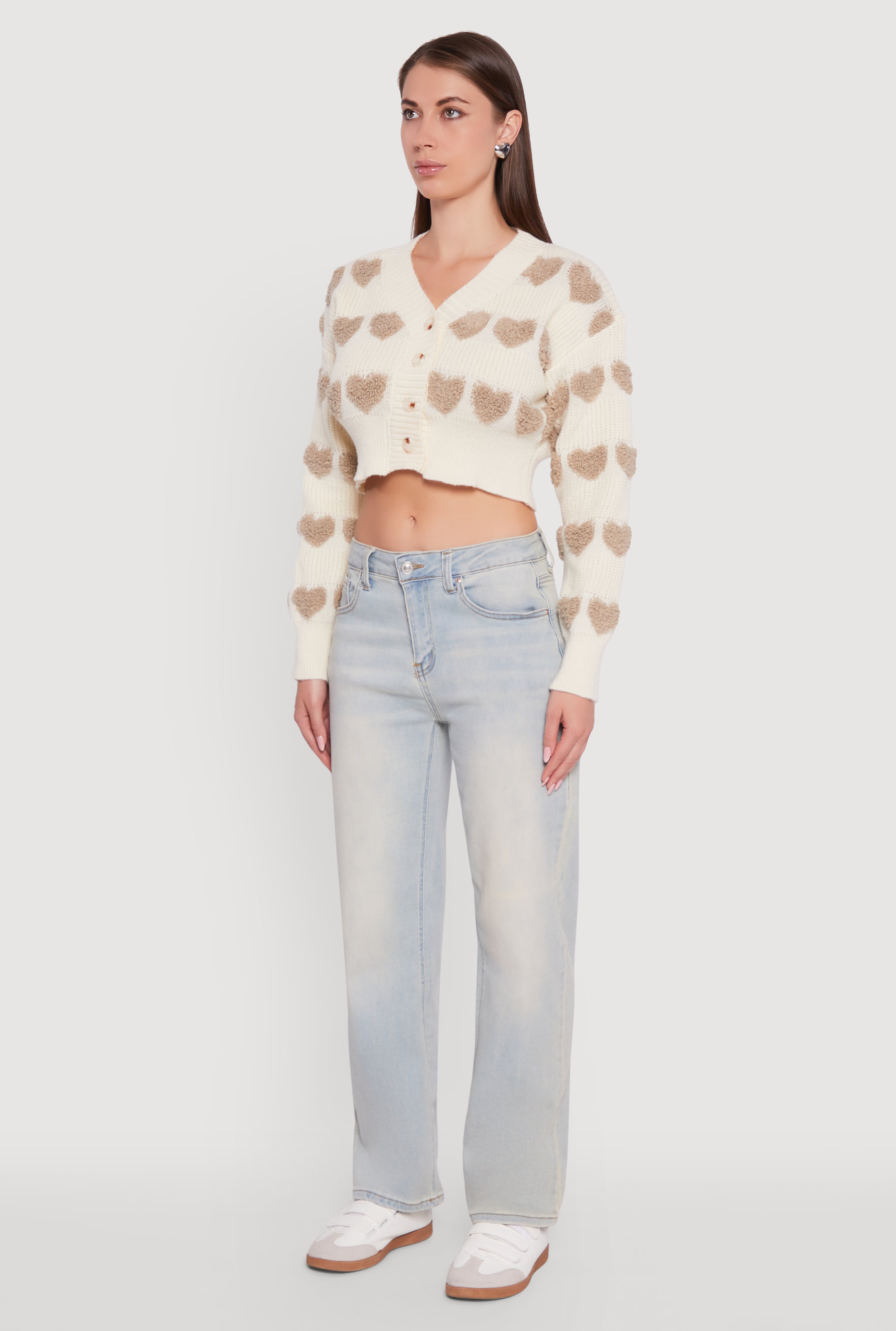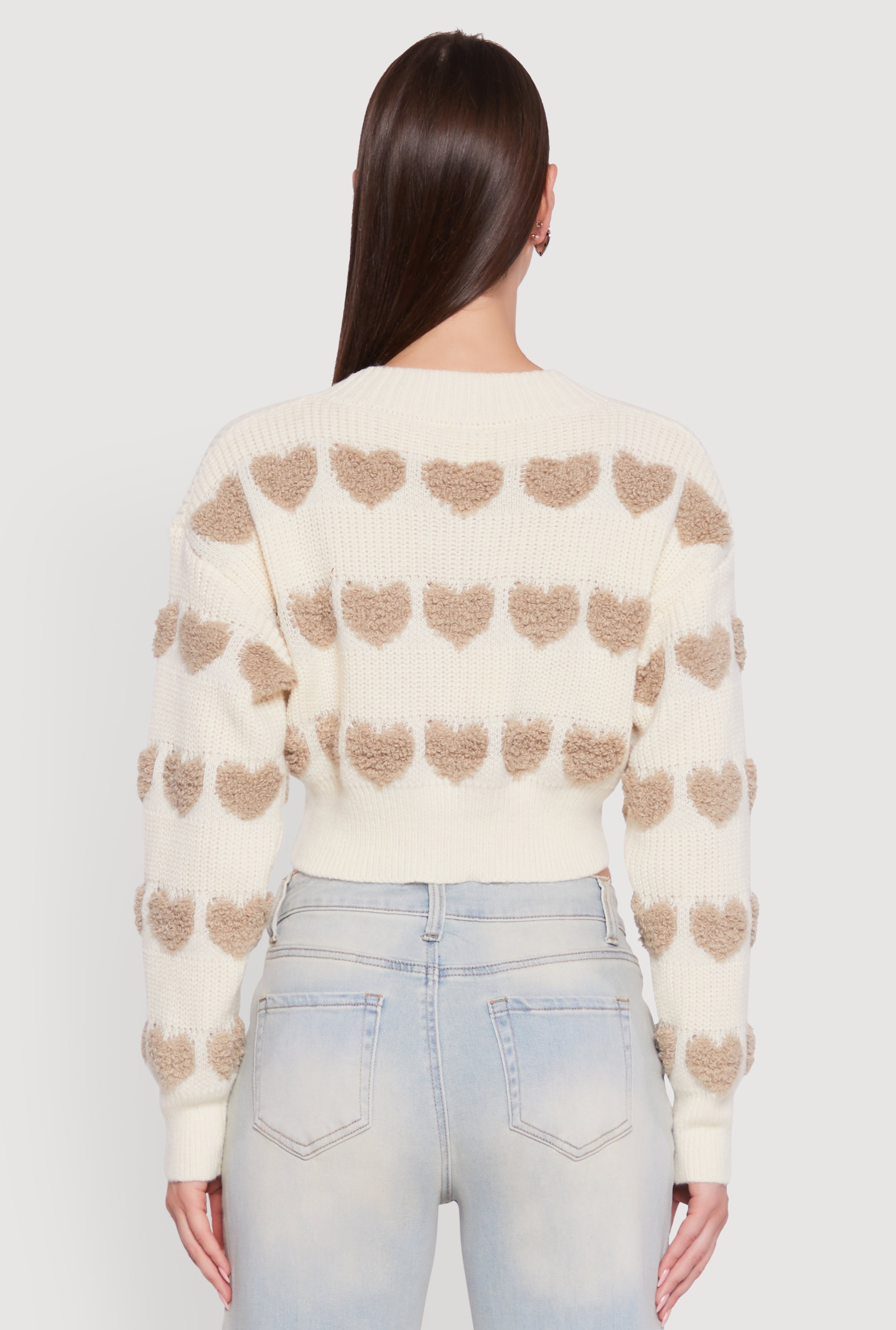Chenille Heart Patterned Brushed Knit Cropped Cardigan
