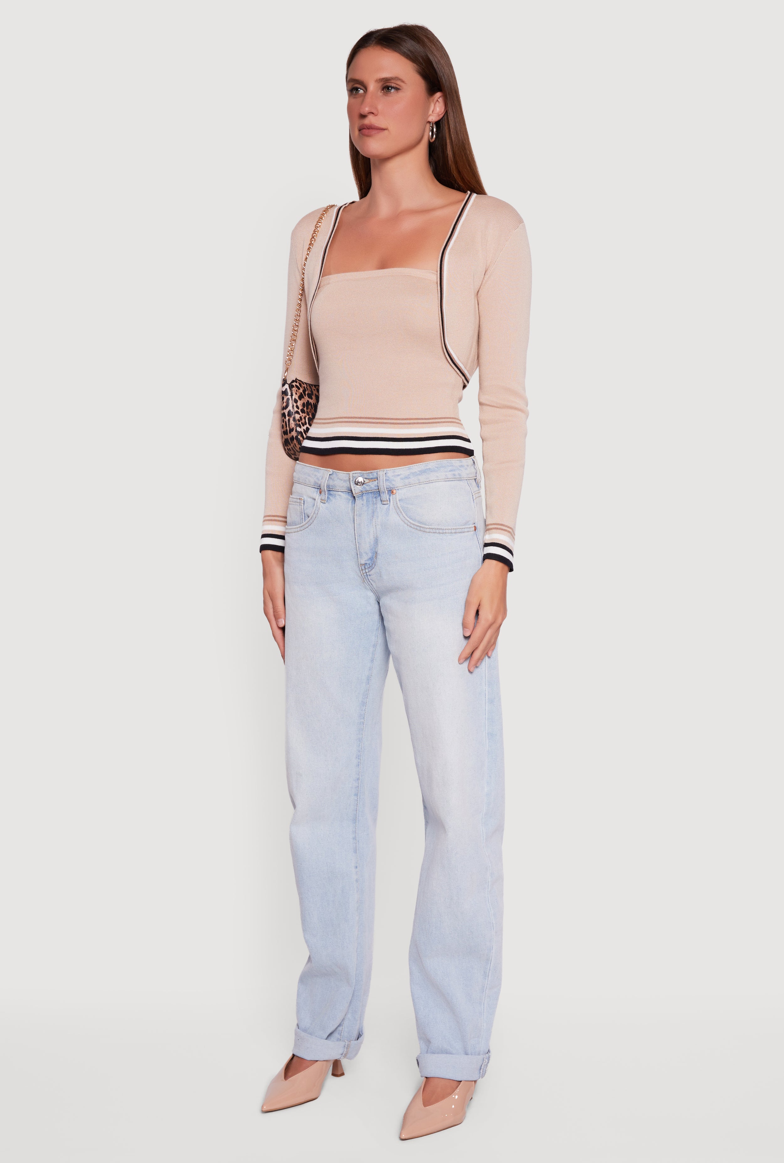 - Two-piece set includes bolero cardigan and strapless sweater tube top