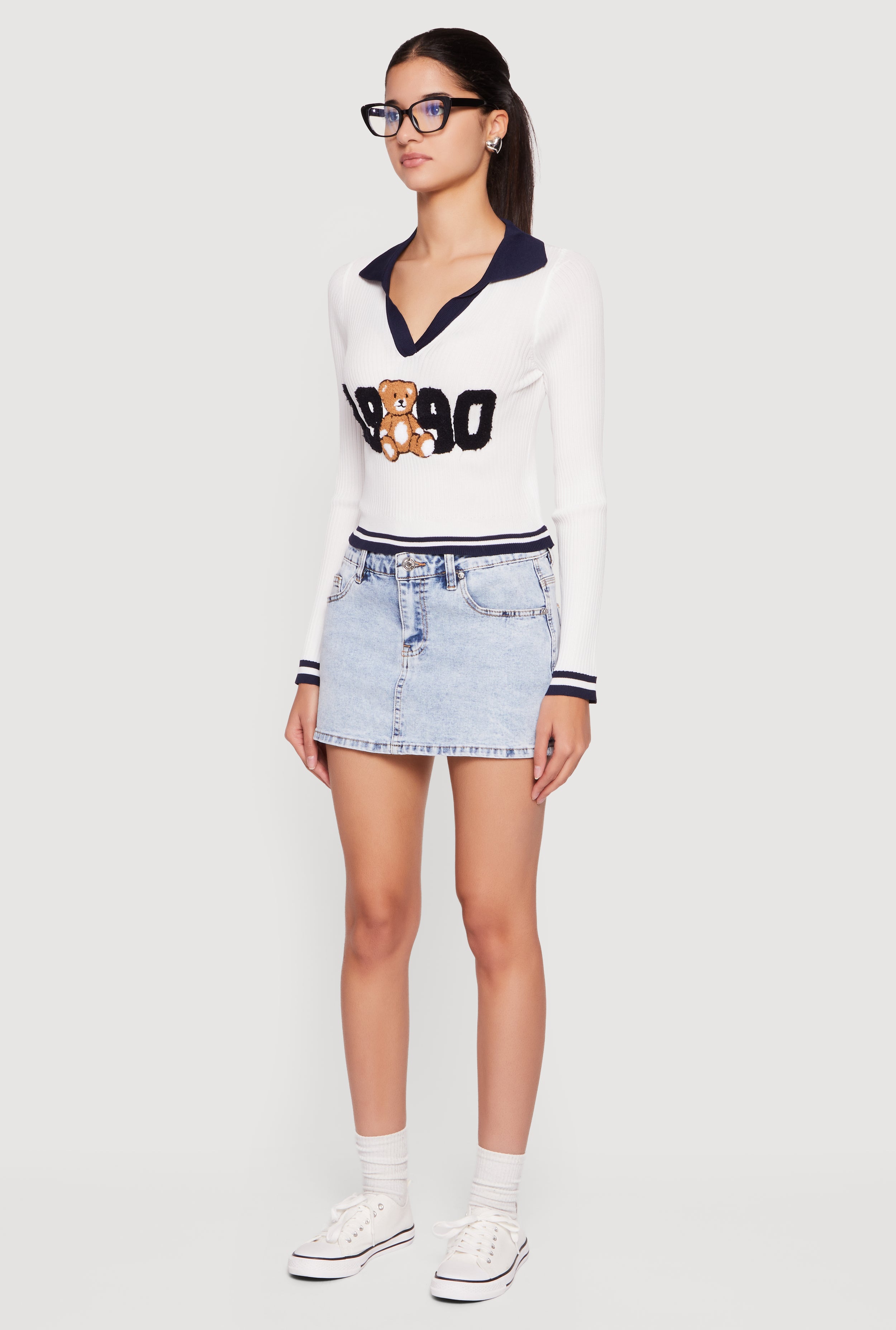 Step into cozy cool with the Chenille 1990 Bear Patch Graphic Varsity Stripe Sweater. This classic fit sweater blends vintage varsity vibes with playful embroidered details for a look that's both nostalgic and fresh. Made from soft chenille and ribbed knit, it’s perfect for casual days when you want to stay comfy but still stand out. The collar neckline and long sleeves add to its timeless appeal, while the bold 1990 bear graphic and varsity stripe detail bring all the fun. Easy to style and hard to resist, this sweater is your new go-to for effortless street style.