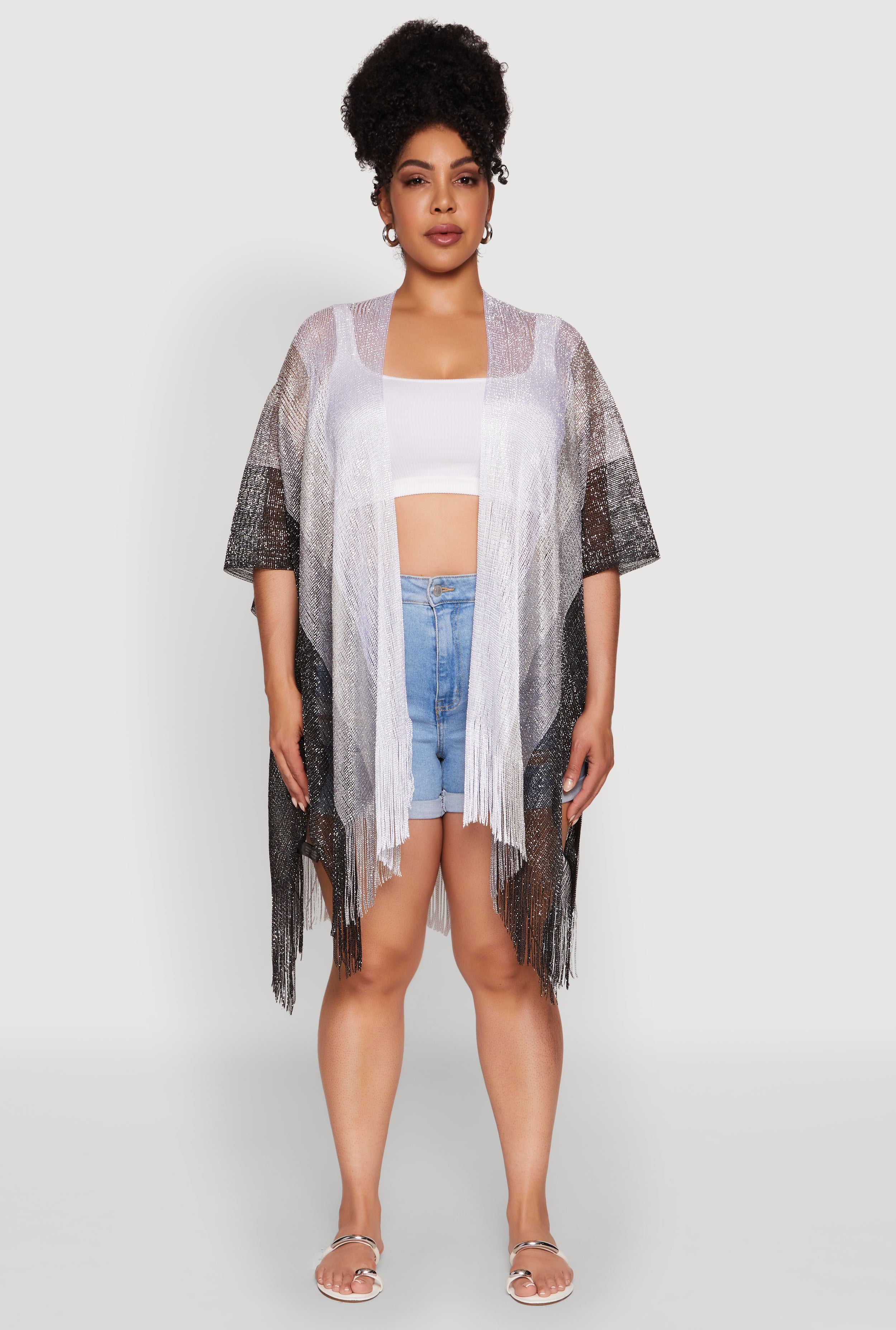 Trendy Fringe Hem Ombre Lurex Cover Up