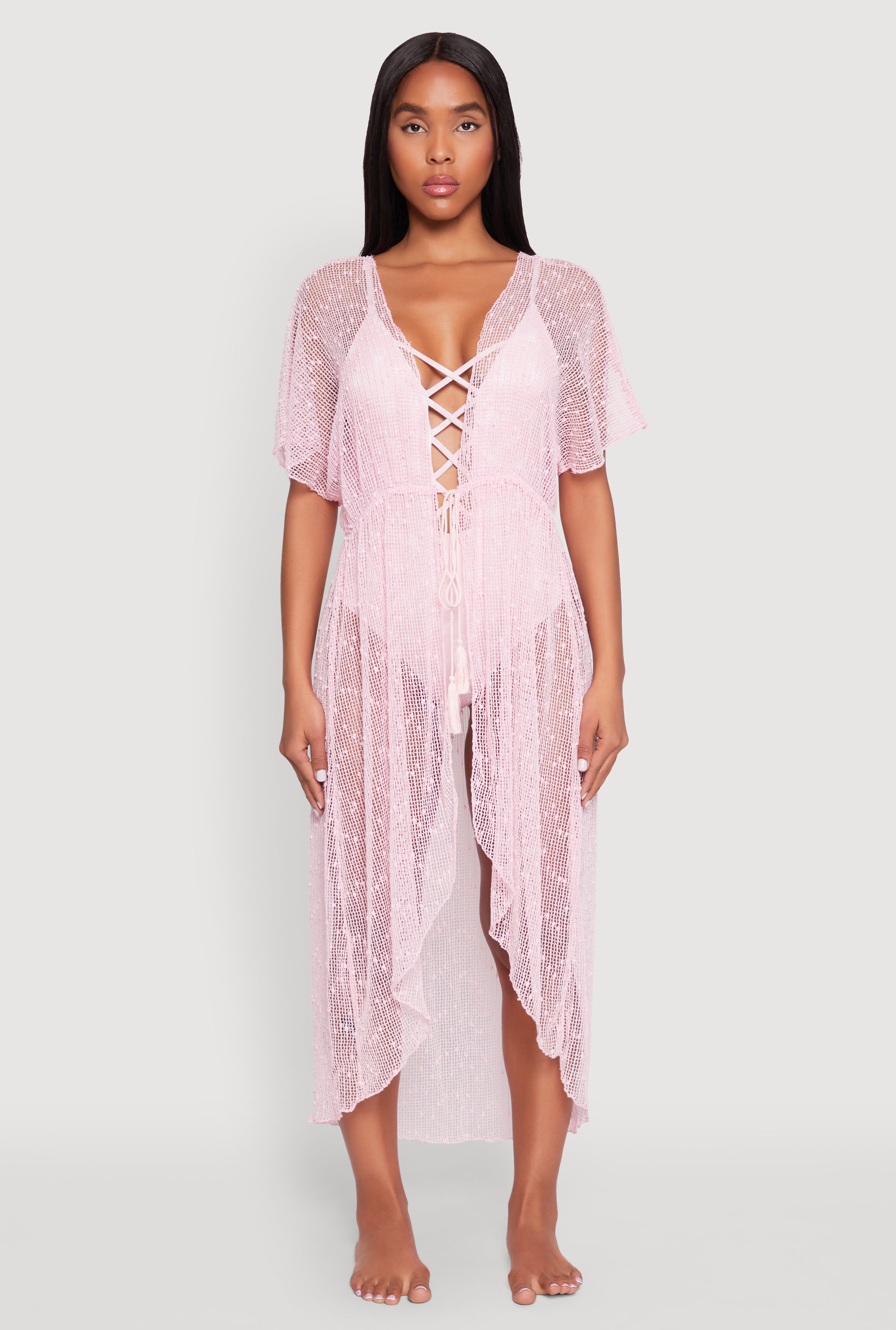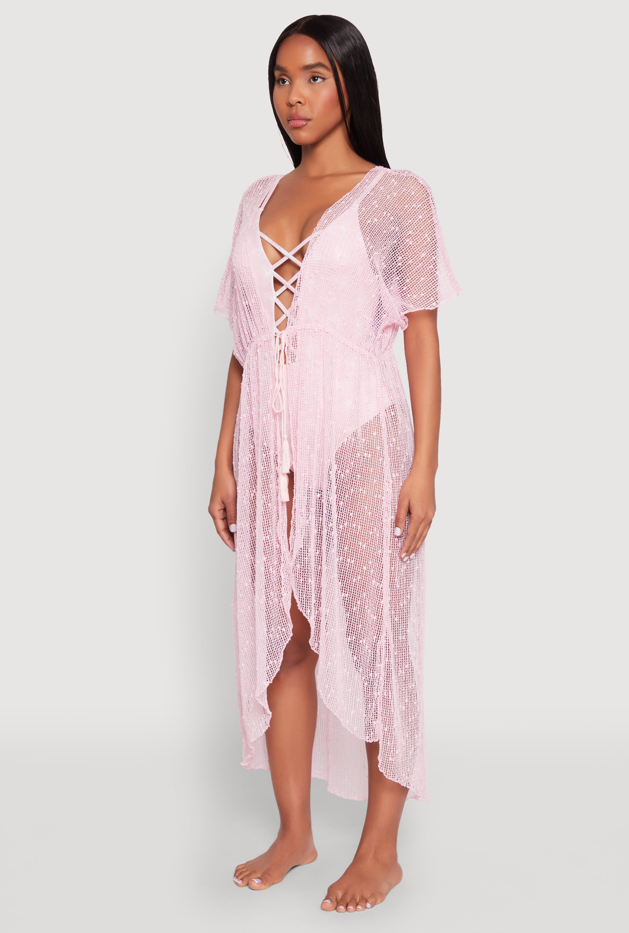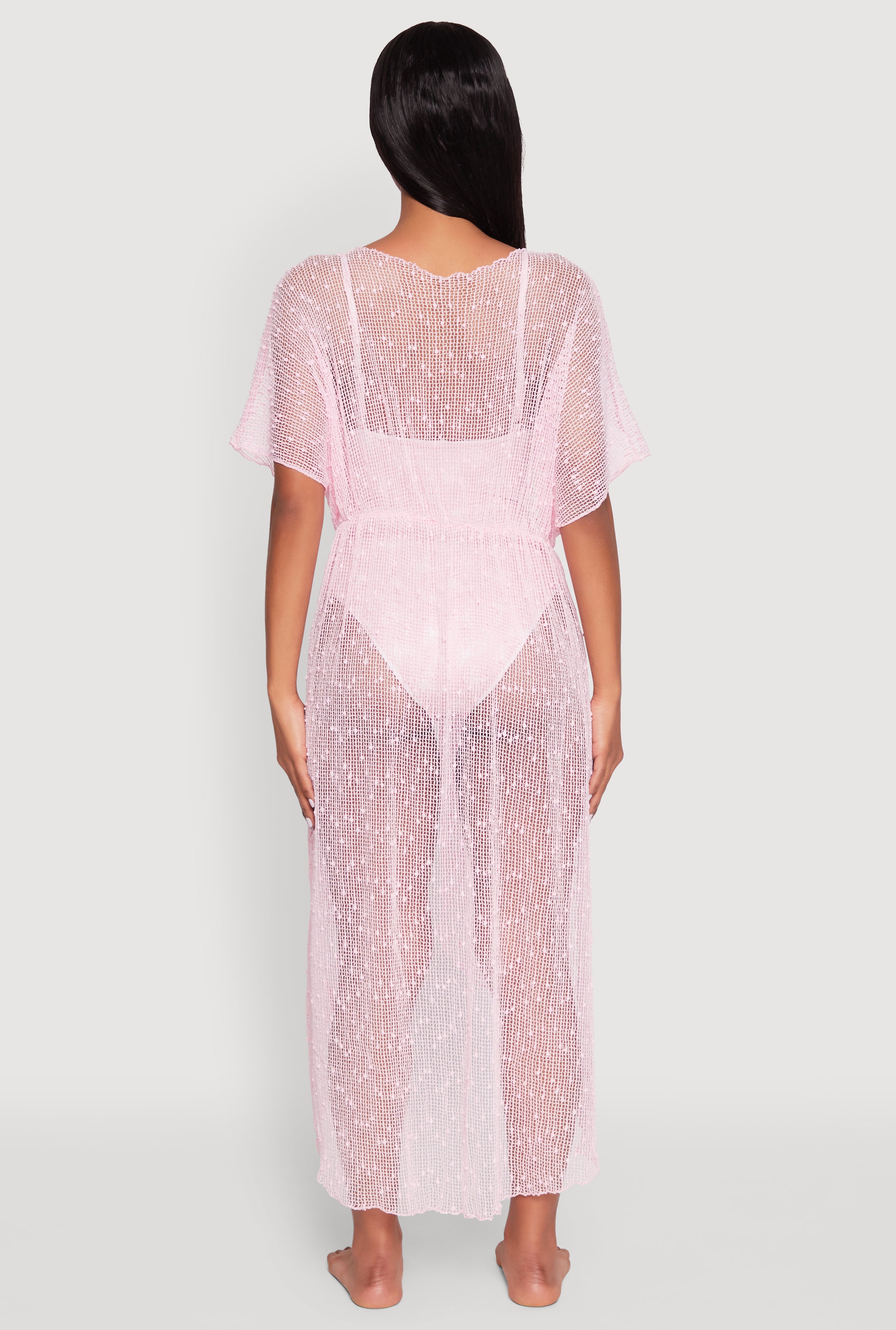 Discover effortless beach vibes with the Popcorn Knit Tie Front Cover Up Kimono. Perfect for lounging by the pool or strolling along the boardwalk, this stylish swim cover up combines comfort and chic in one lightweight package. The playful popcorn knit adds texture, while the tie-front detail offers a customizable fit that flatters every body. Short sleeves and a plunging neckline make it a breezy, must-have piece for your warm weather wardrobe. Whether you're soaking up the sun or heading to a seaside cafe, this kimono is your go-to for laid-back style with a touch of flair.
