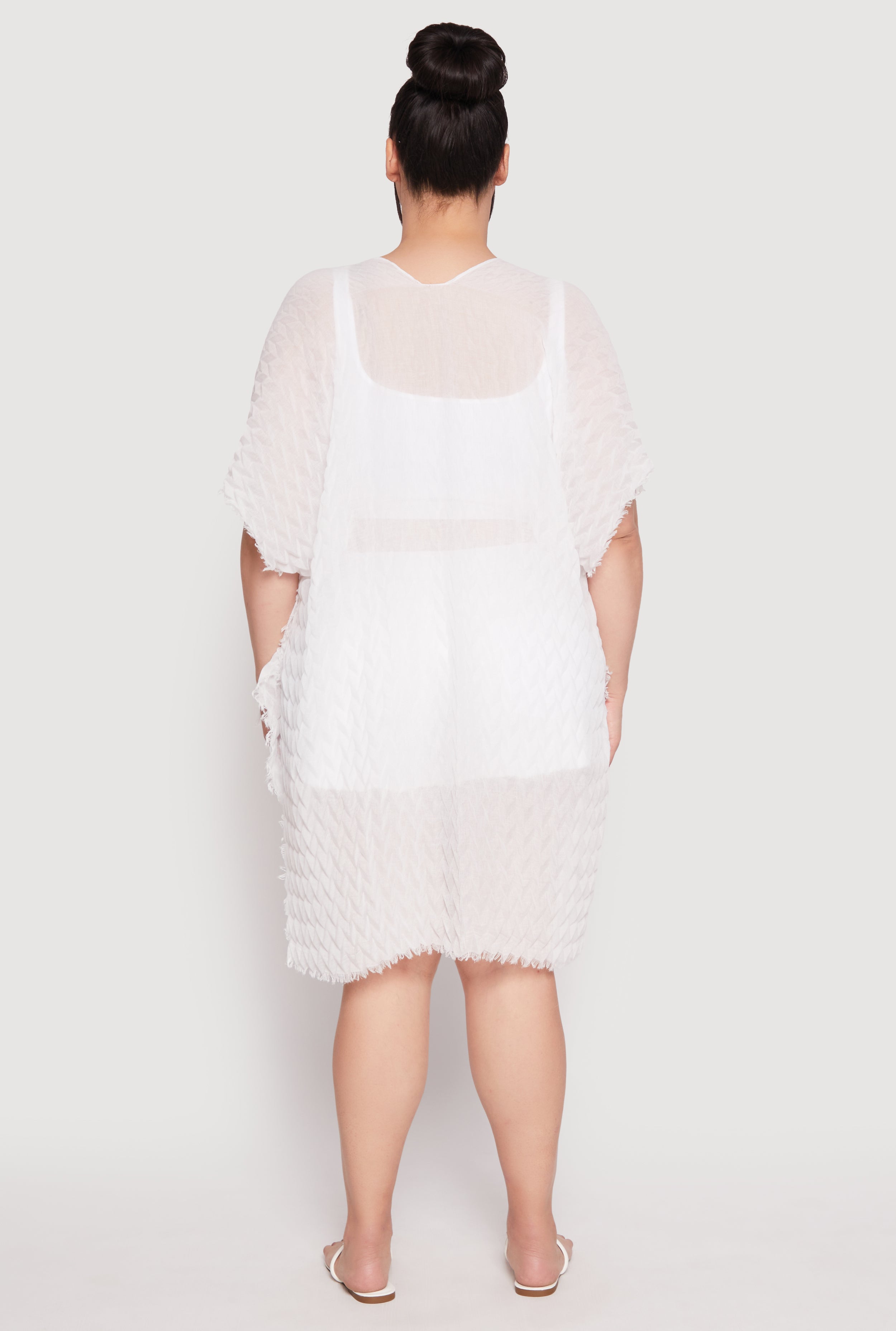 Get ready to turn heads at the pool or beach with our Chevron Cover Up Kimono. Designed to be your go-to piece for effortless style, this lightweight gauze knit kimono offers a relaxed fit that drapes beautifully over your swimsuit. The raw hem adds a touch of edgy charm, while the short dolman sleeves keep you feeling cool and comfy. Perfect for lounging or strolling along the shoreline, this versatile cover up is a must-have for every fashion-forward woman. Plus, it fits XS to 4X, so everyone can enjoy its chic vibe.