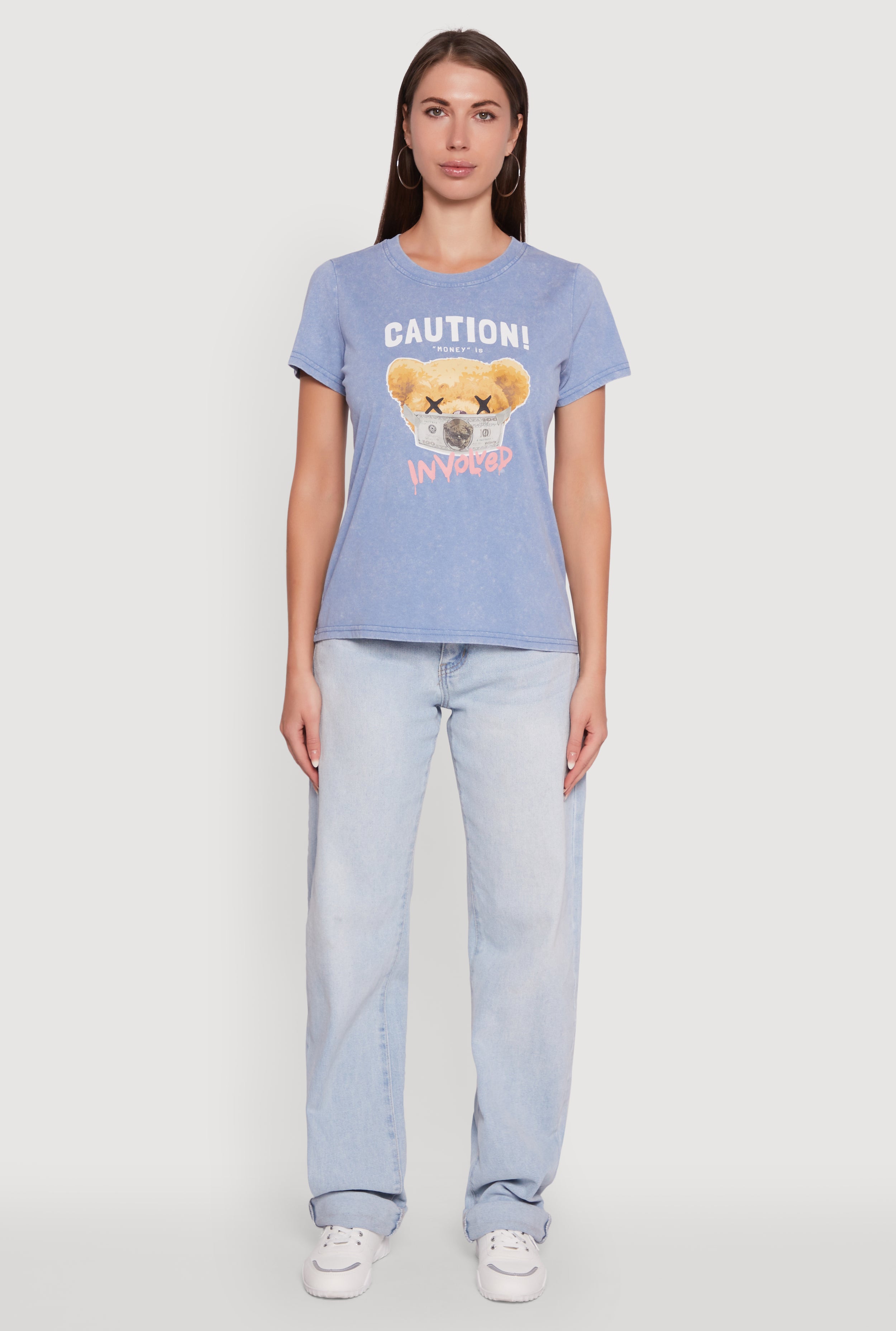 Step up your streetwear game with the Acid Wash Teddy Bear Caution Graphic Crew Neck Tee. This classic fit tee brings together retro vibes and modern edge with its cool acid wash finish and a bold caution graphic that warns everyone that "Money" is involved. Perfect for casual days when you want to look effortlessly stylish and keep things comfy. Pair it with your fave jeans or joggers and get ready to turn heads without trying too hard.
