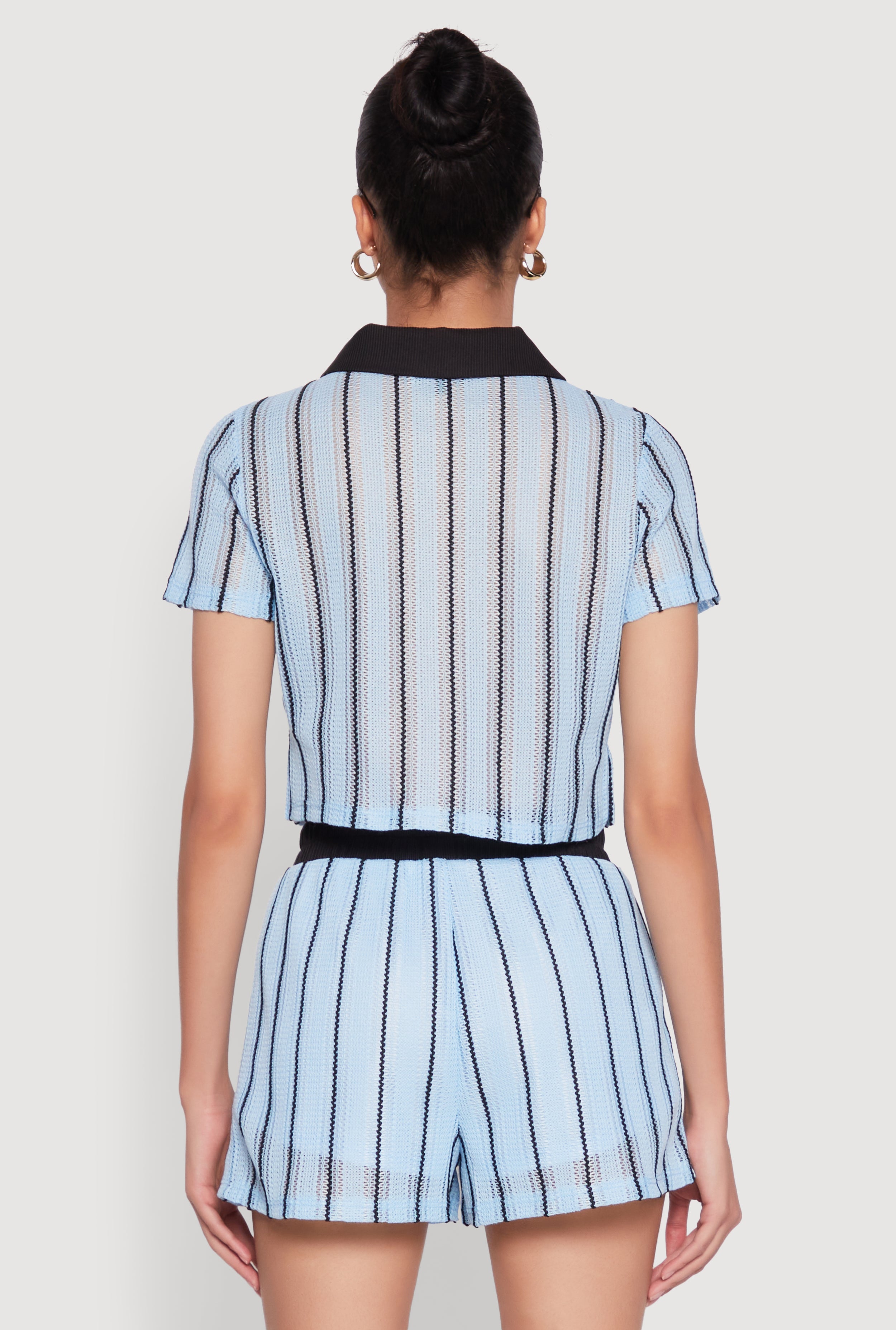 Get ready to turn heads with the Striped Crochet Crop Top that combines effortless style with all-day comfort. Perfect for casual outings or dressing up for a fun night out, this top features a classic fit with a timeless silhouette that flatters every body type. The contrast trim adds a pop of detail, while the cropped hem and short sleeves keep your look fresh and on-trend. Made from a cozy crochet and ribbed knit blend, it’s the perfect piece to elevate your wardrobe without breaking the bank. Whether you're layering it over your favorite jeans or pairing it with a skirt, this top is your new go-to for a chic, laid-back vibe.